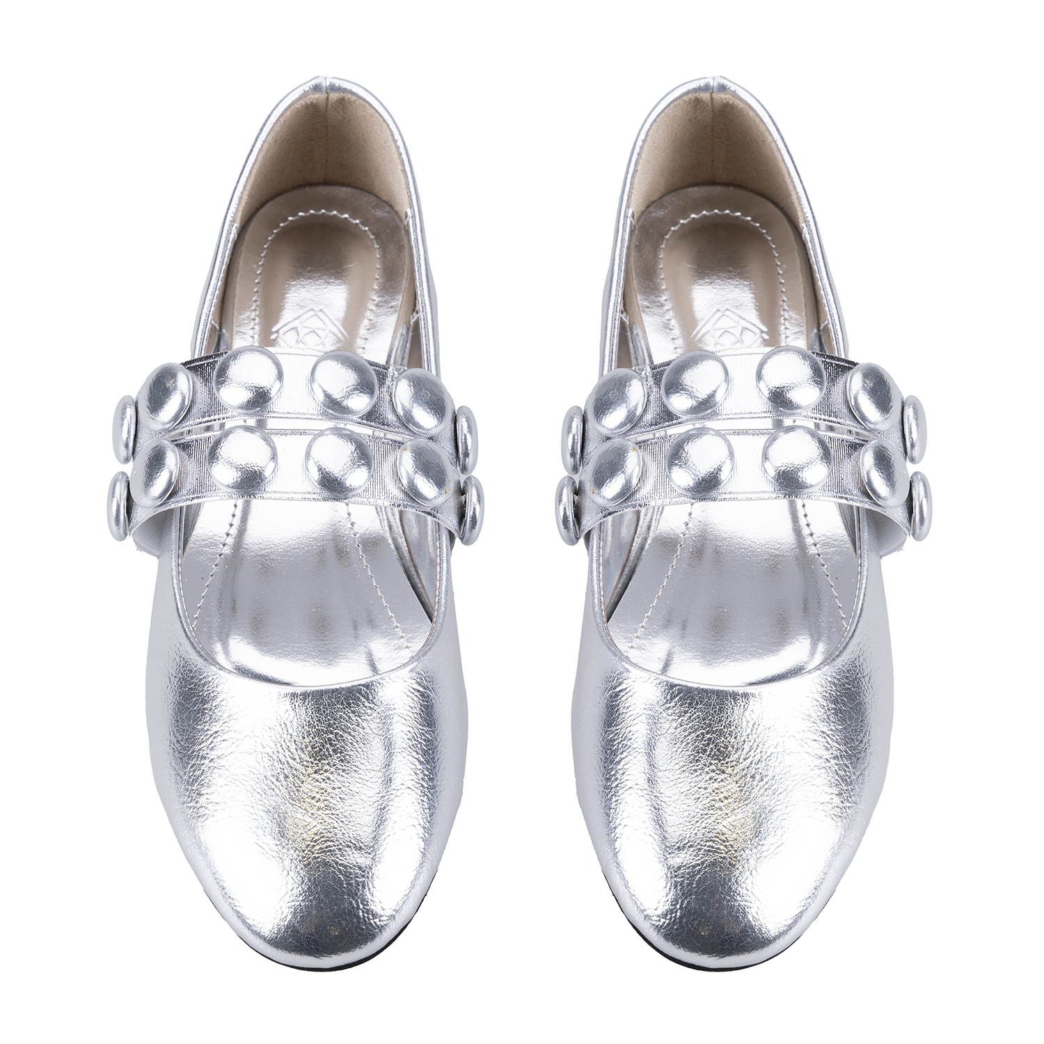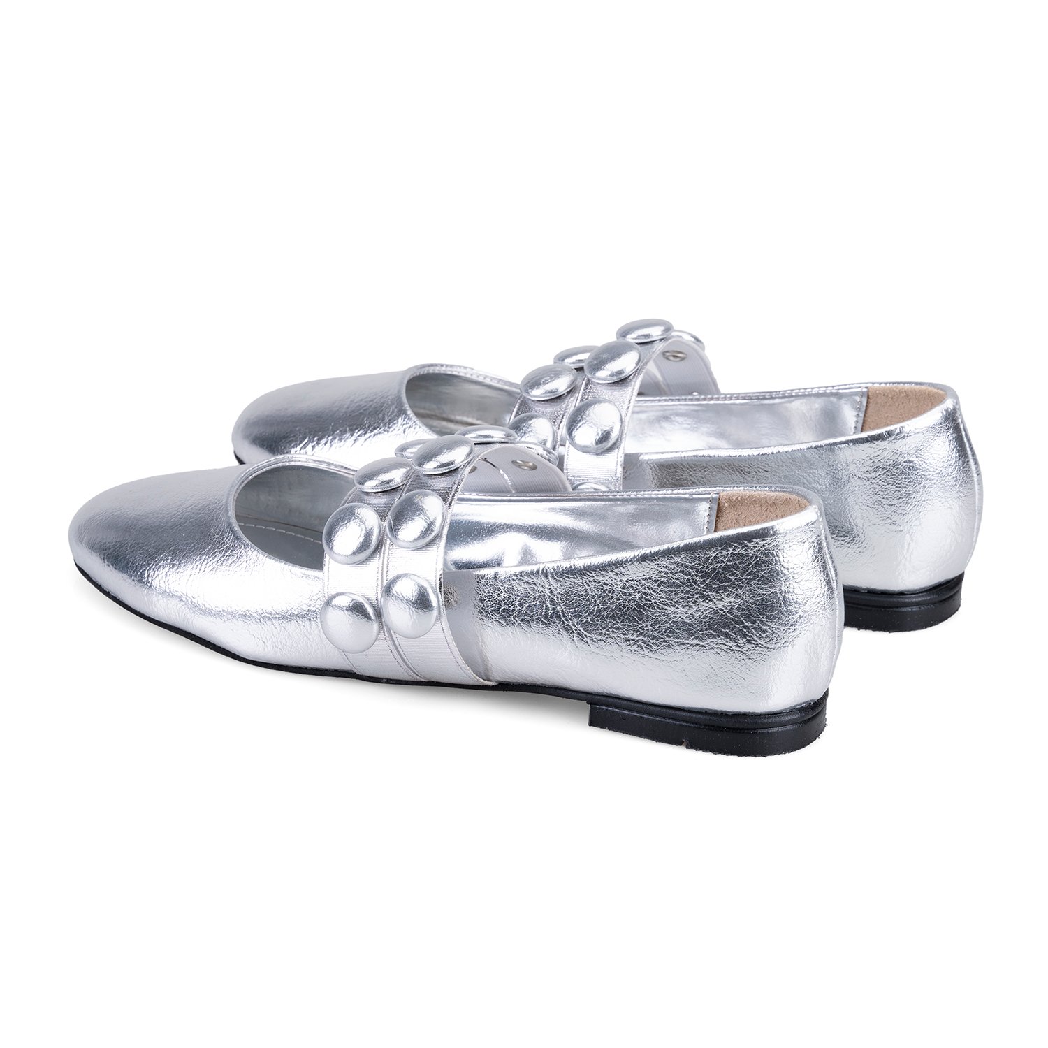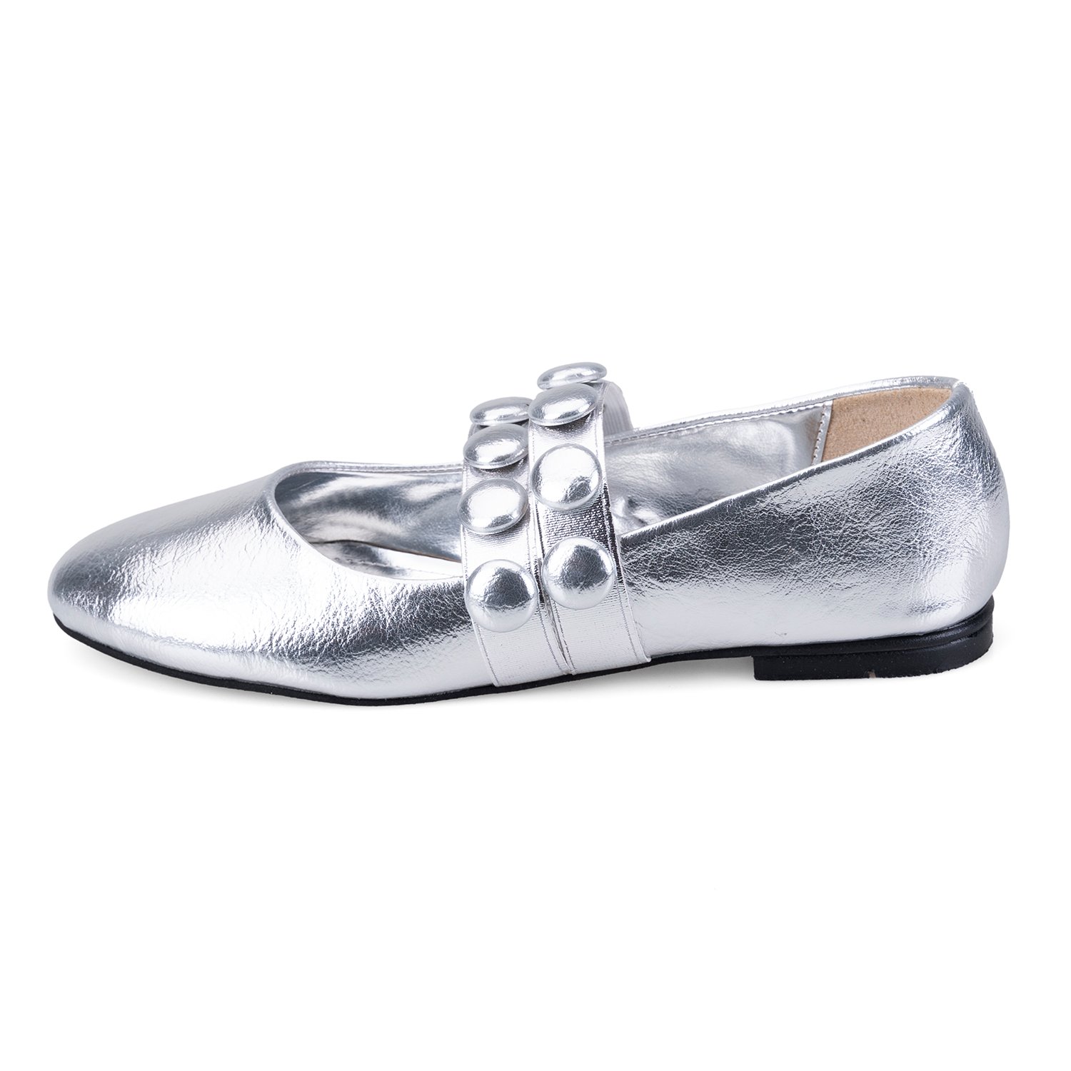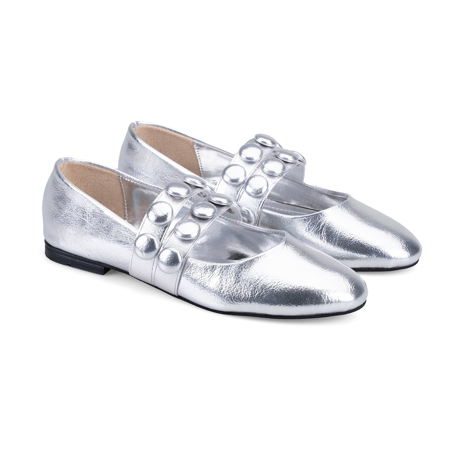 Pu iç tabanlı, pu astarlı, lastik detaylı, kaplama düğme aksesuarlı, neolit tabanlı, kadın babet.