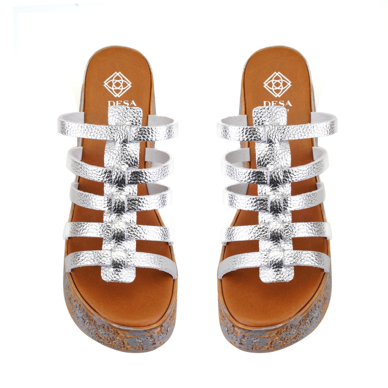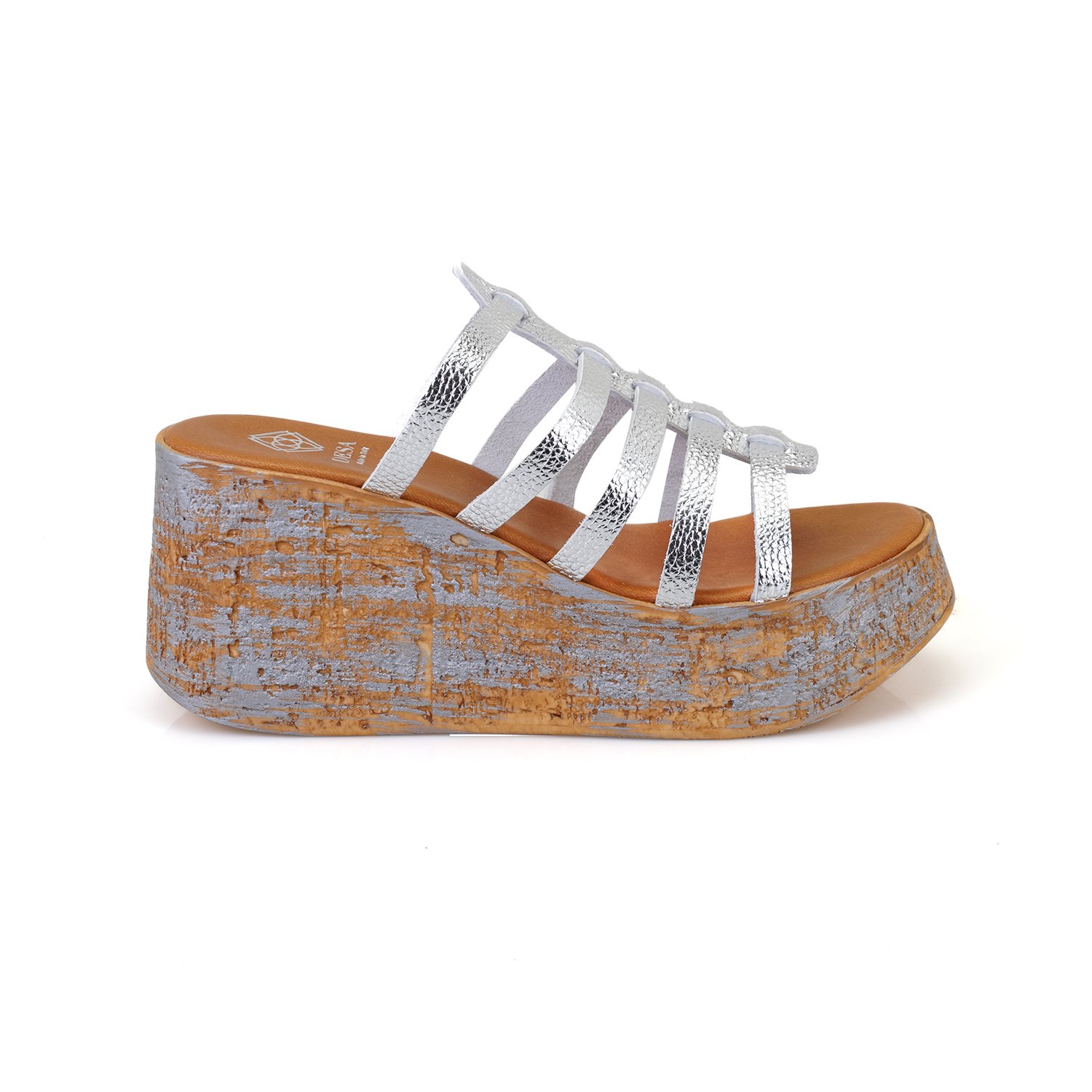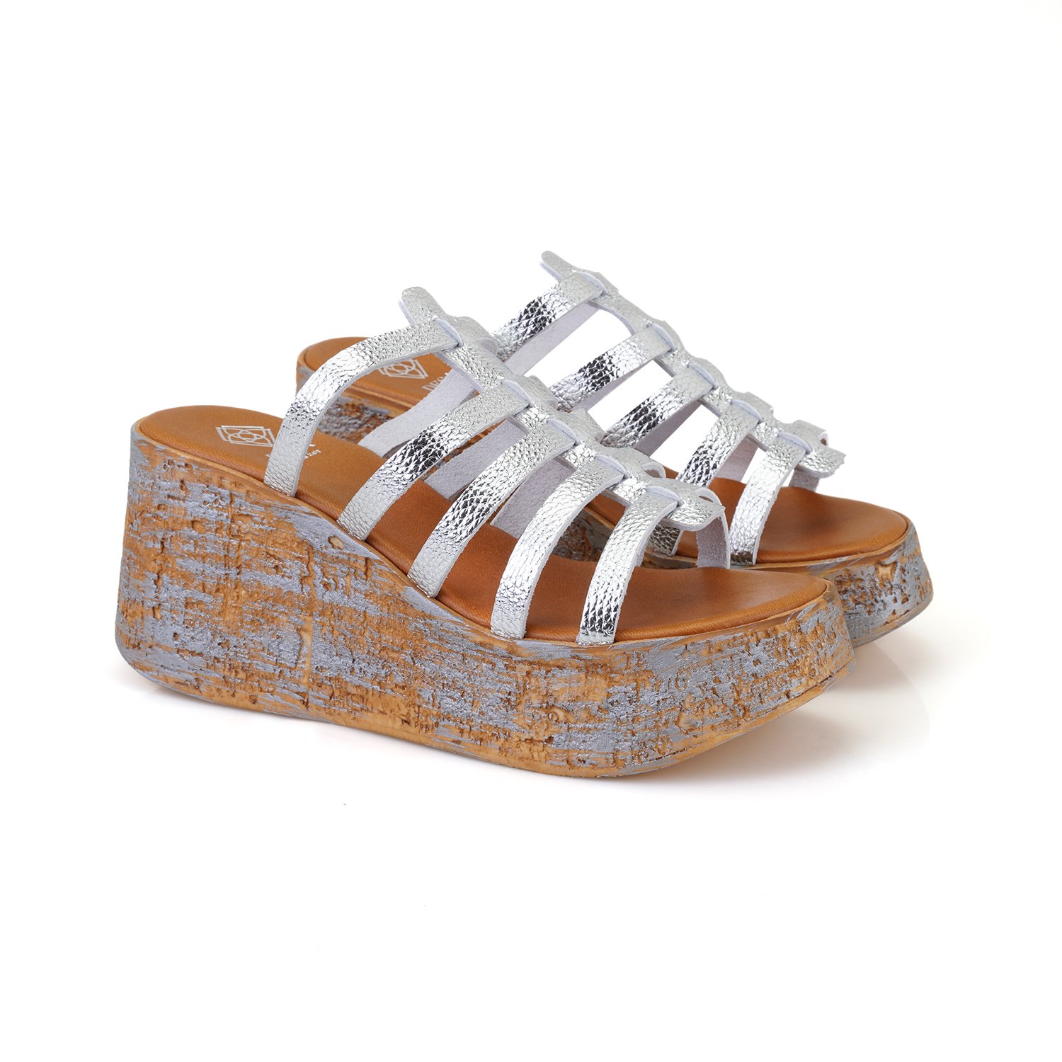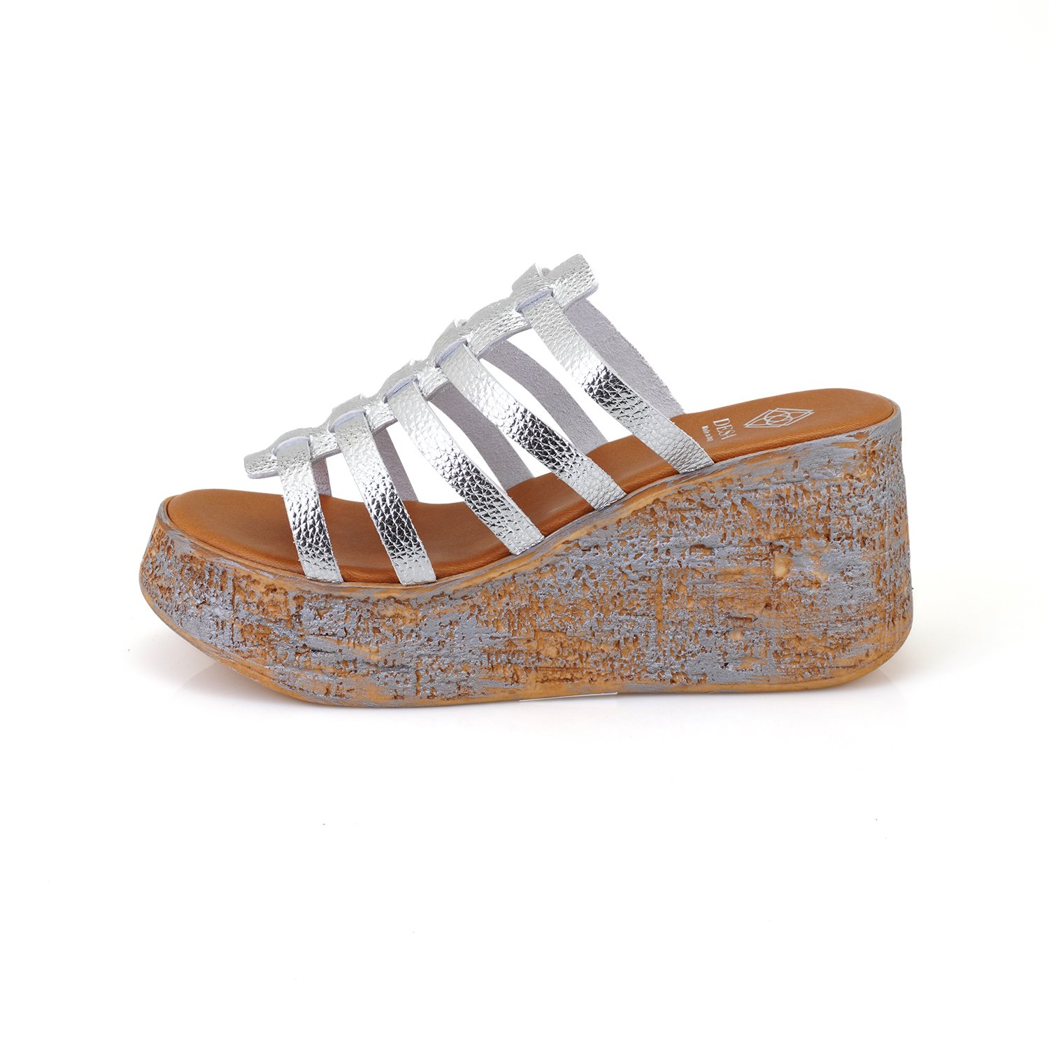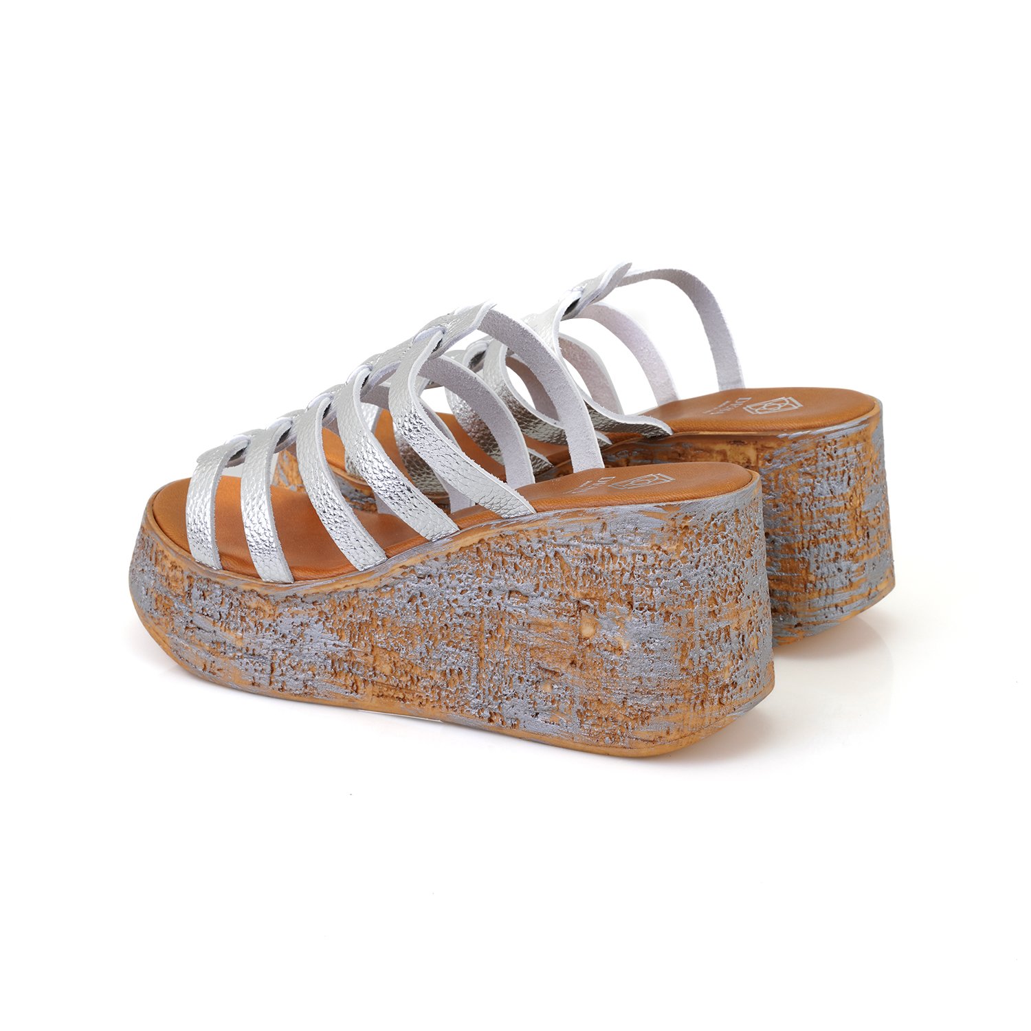 Kadın Gümüş Dolgu Topuklu Deri Terlik