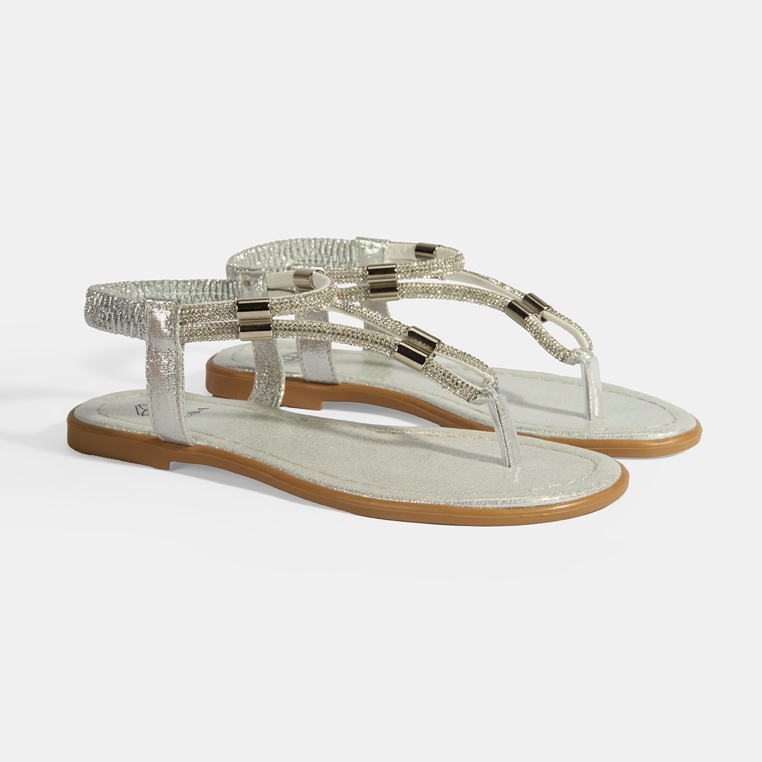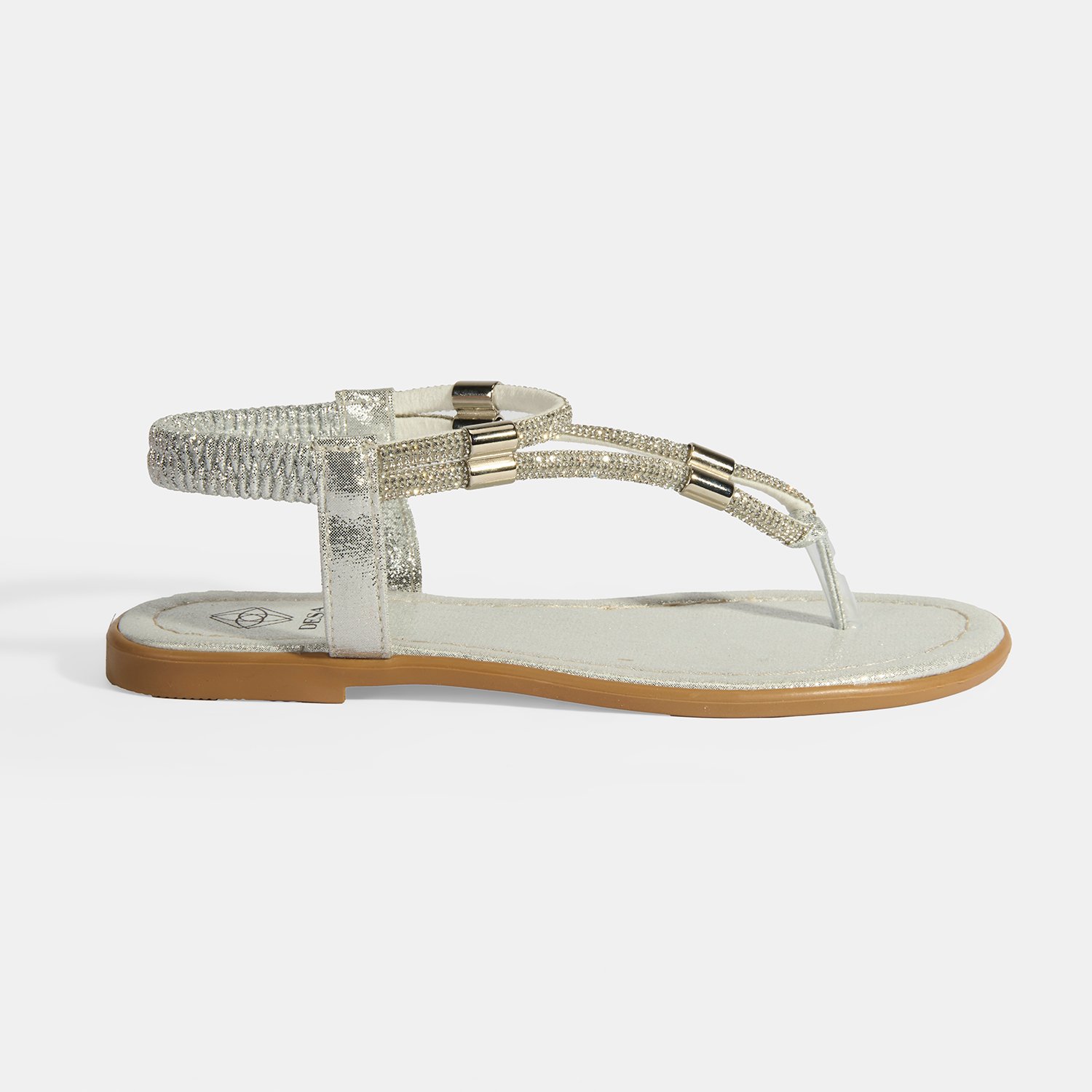 Kadın Gümüş Taşlı Lastik Bantlı Parmak Arası Sandalet