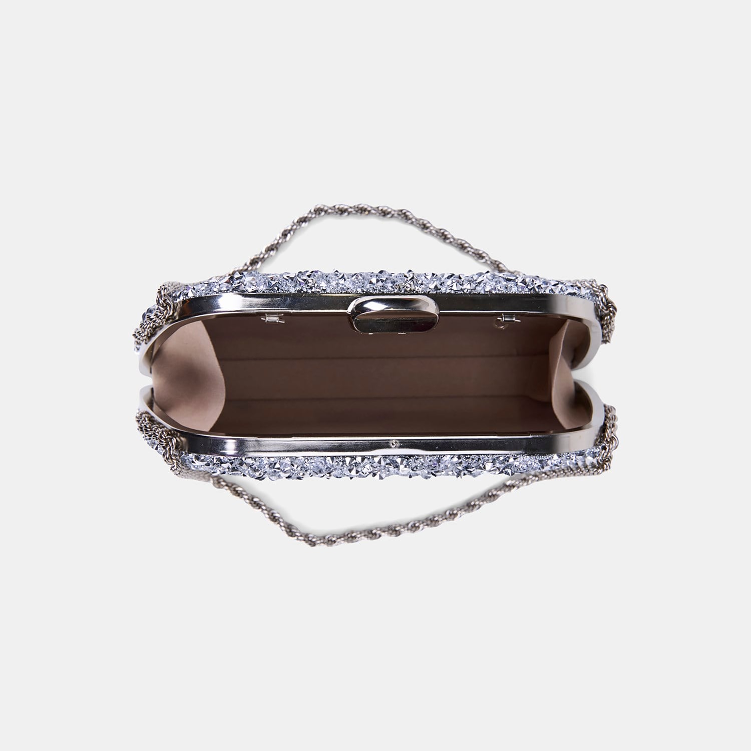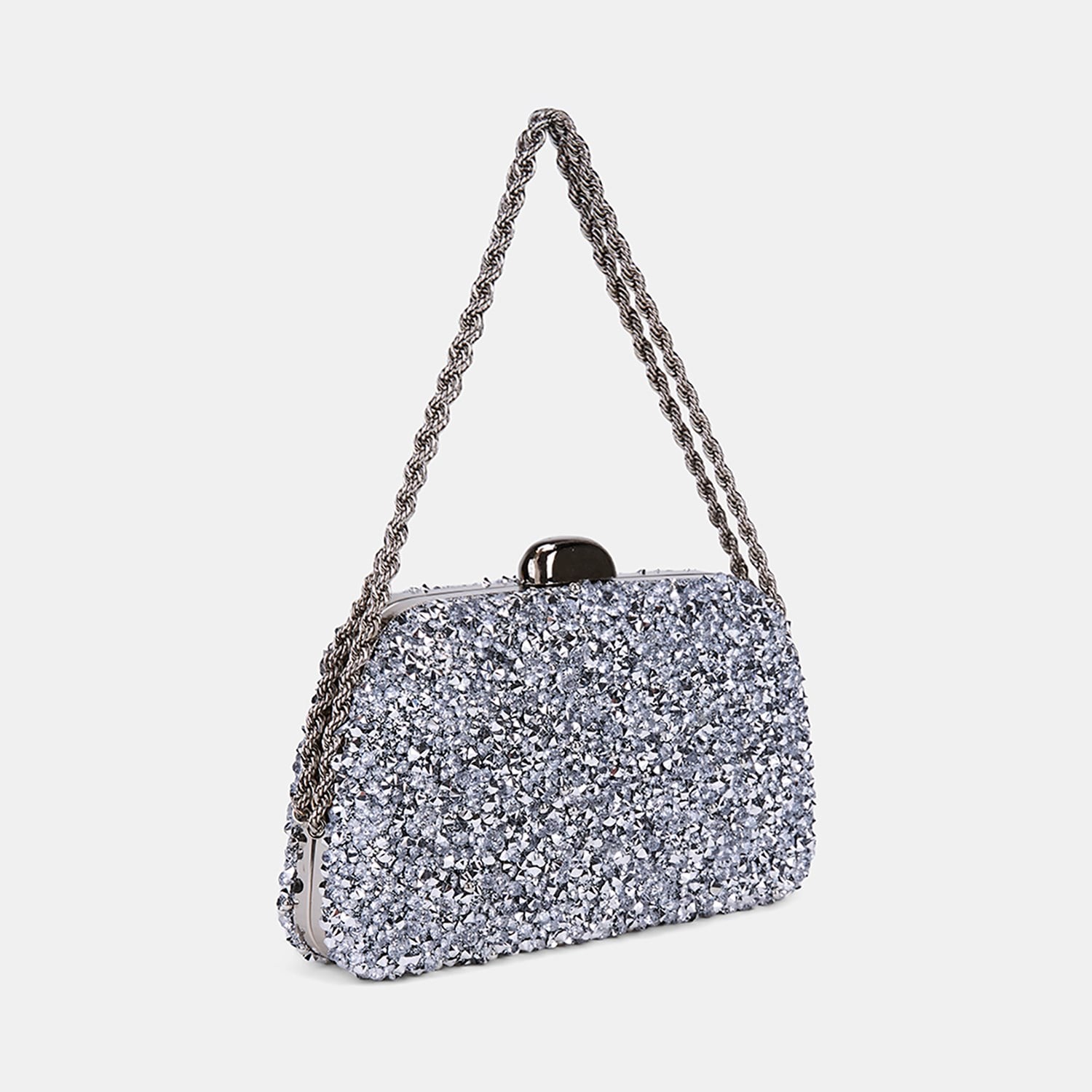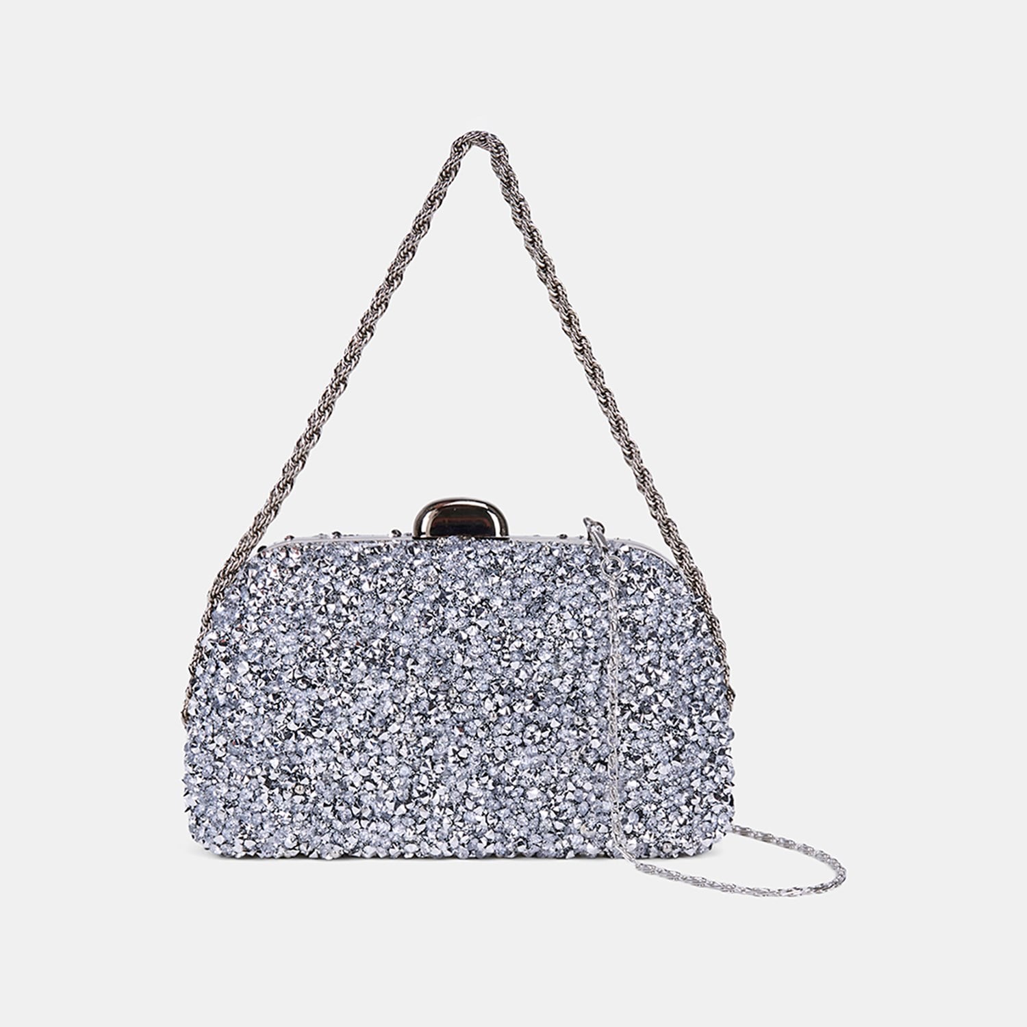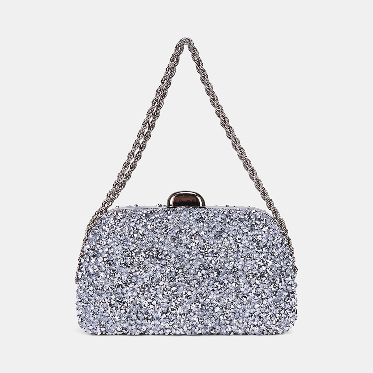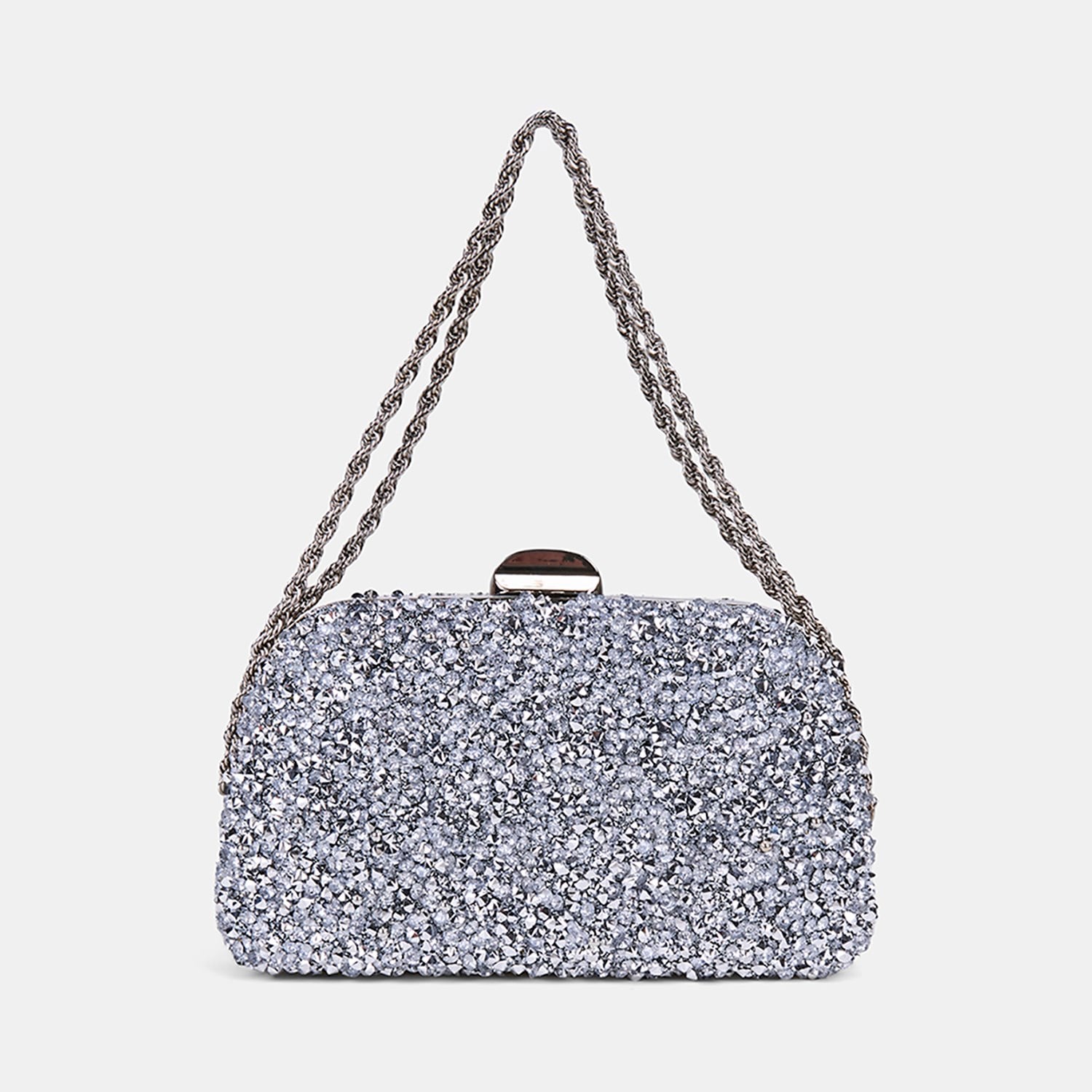 Kadın Gümüş Taşlı Zincir Omuz Askılı Gece El Çantası