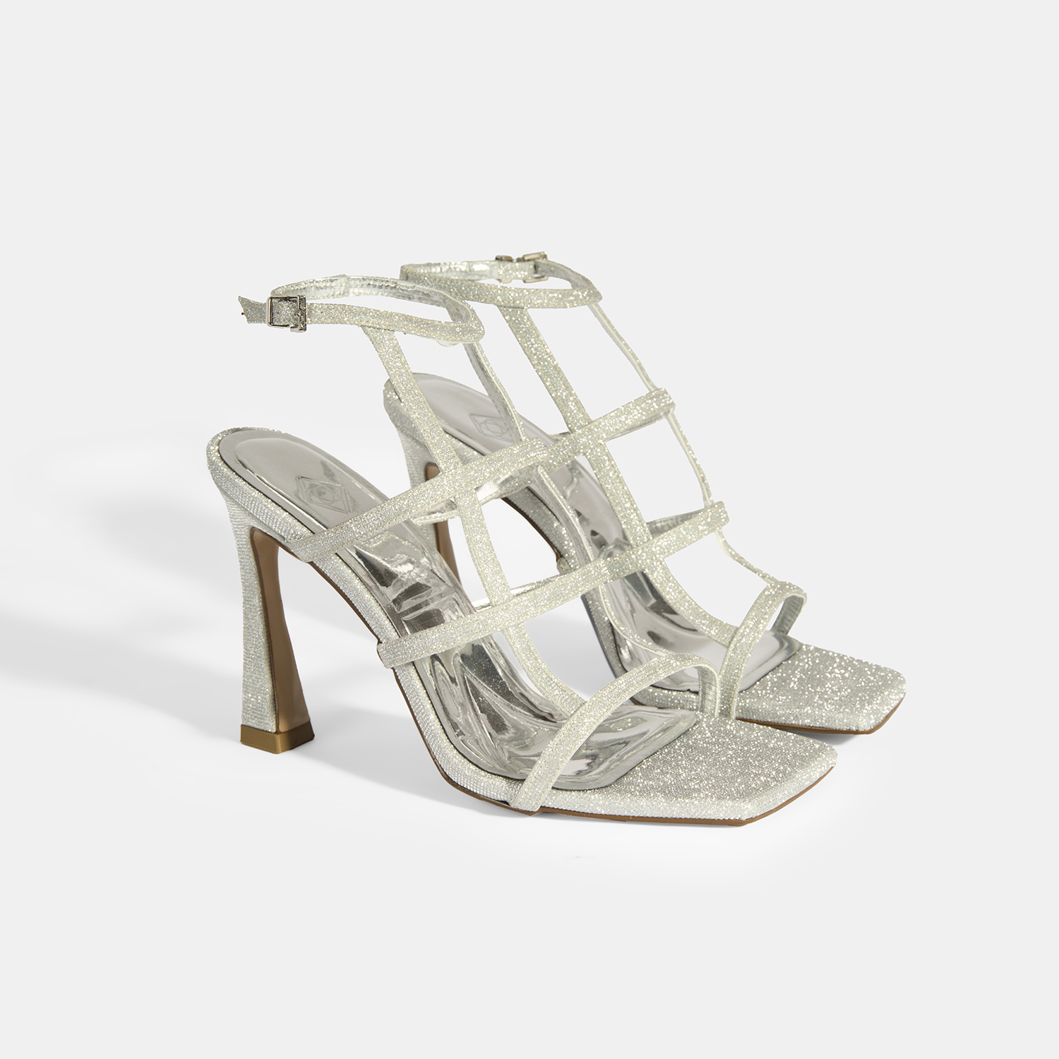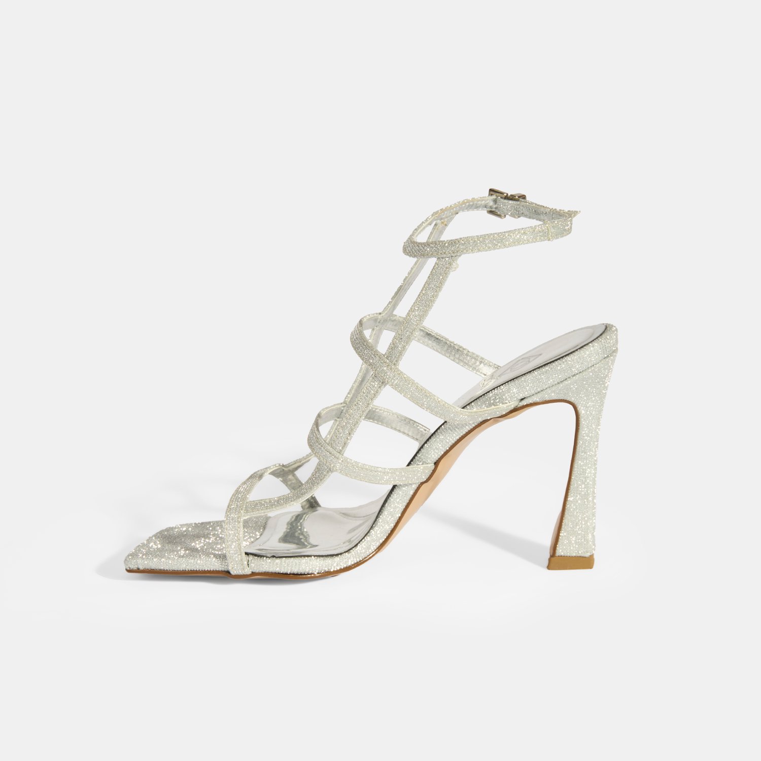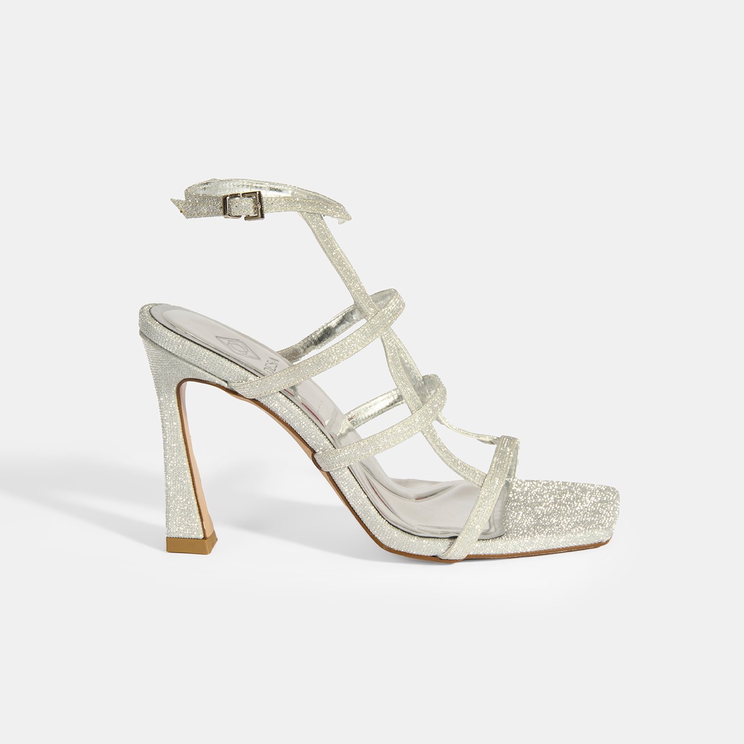Kadın Gümüş Toka Detaylı Topuklu Abiye Sandalet
