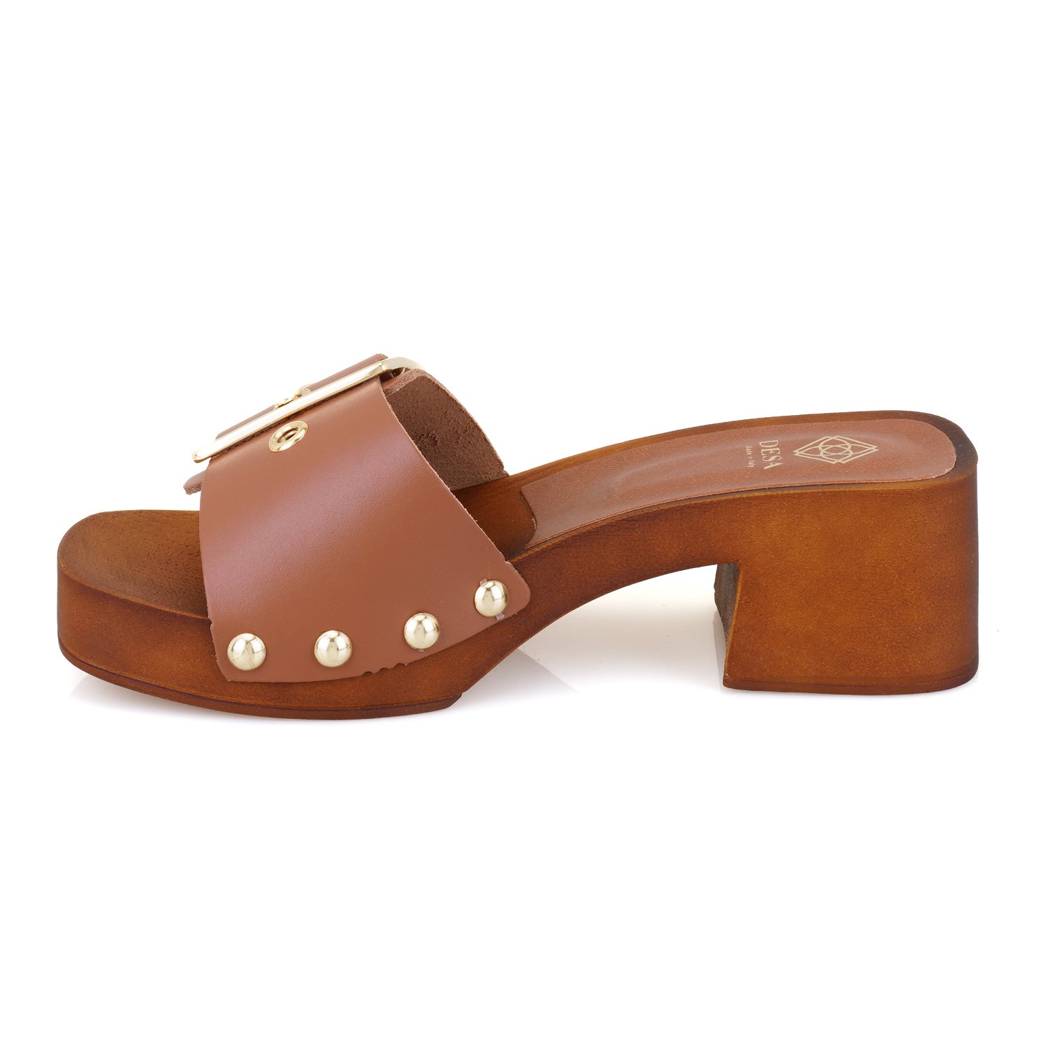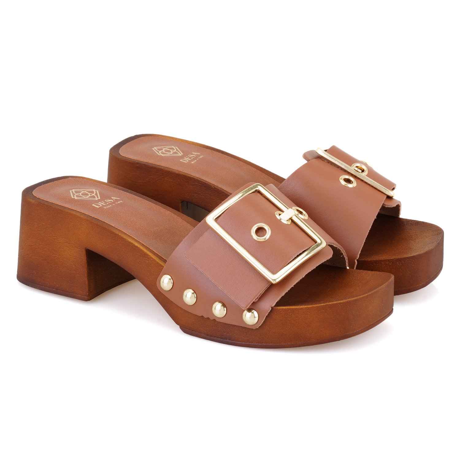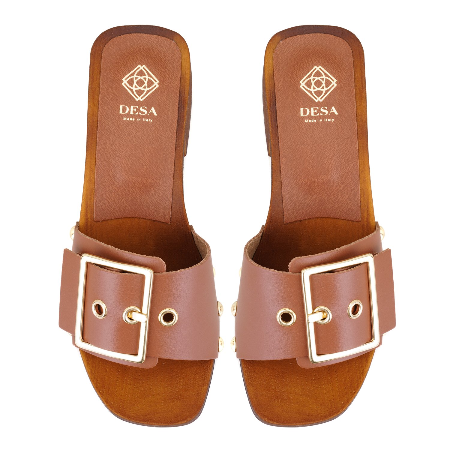 %100 vegetal deri, astarsız, deri iç tabanlı, ayarlanabilir metal toka detaylı, kadın terlik.