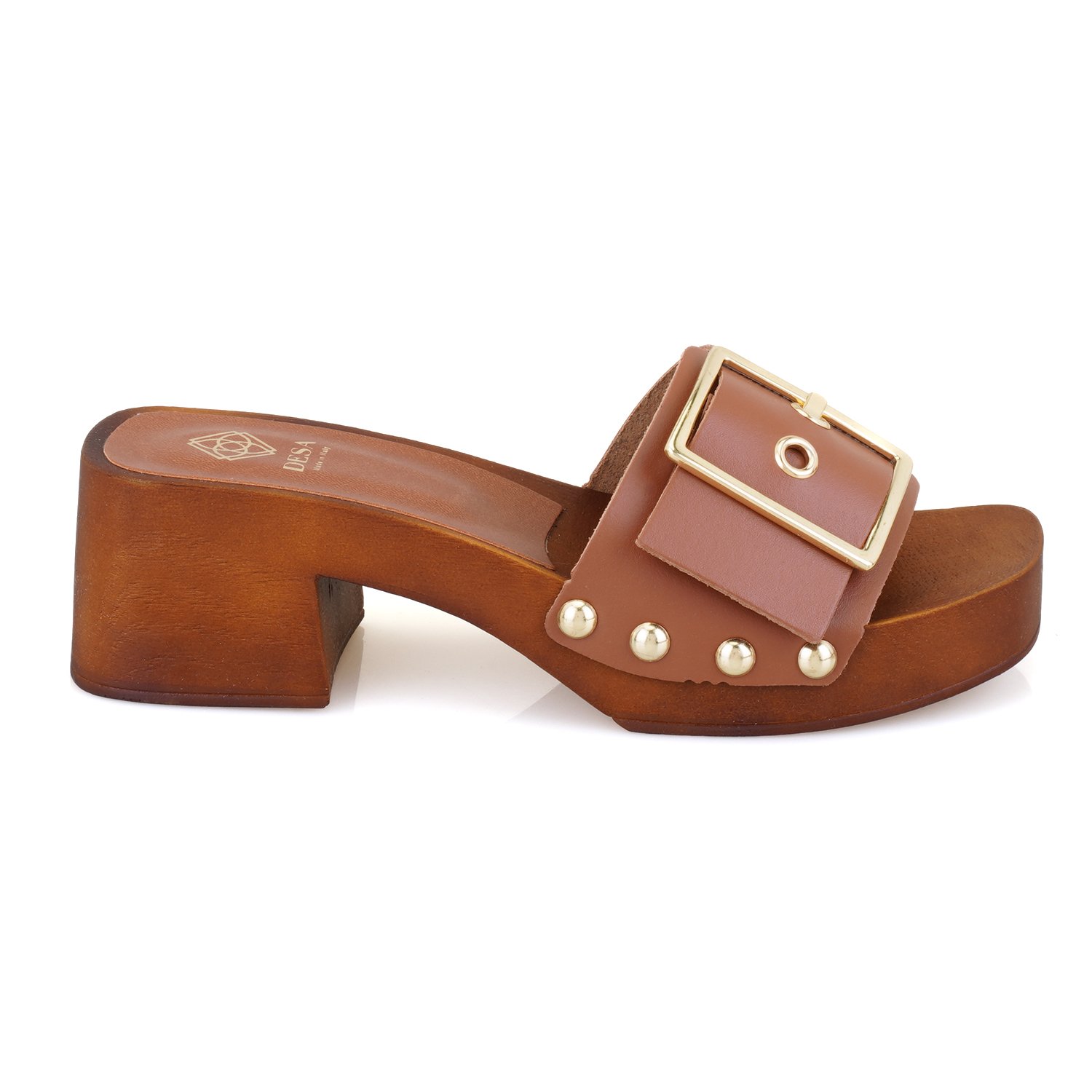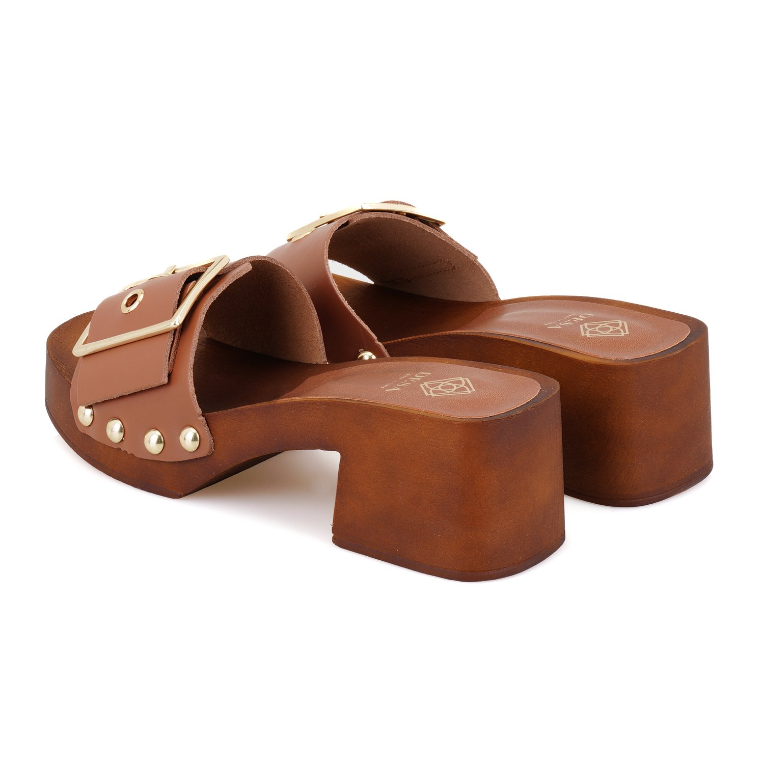 Kadın Kahve Ayarlanabilir Tokalı Deri Terlik