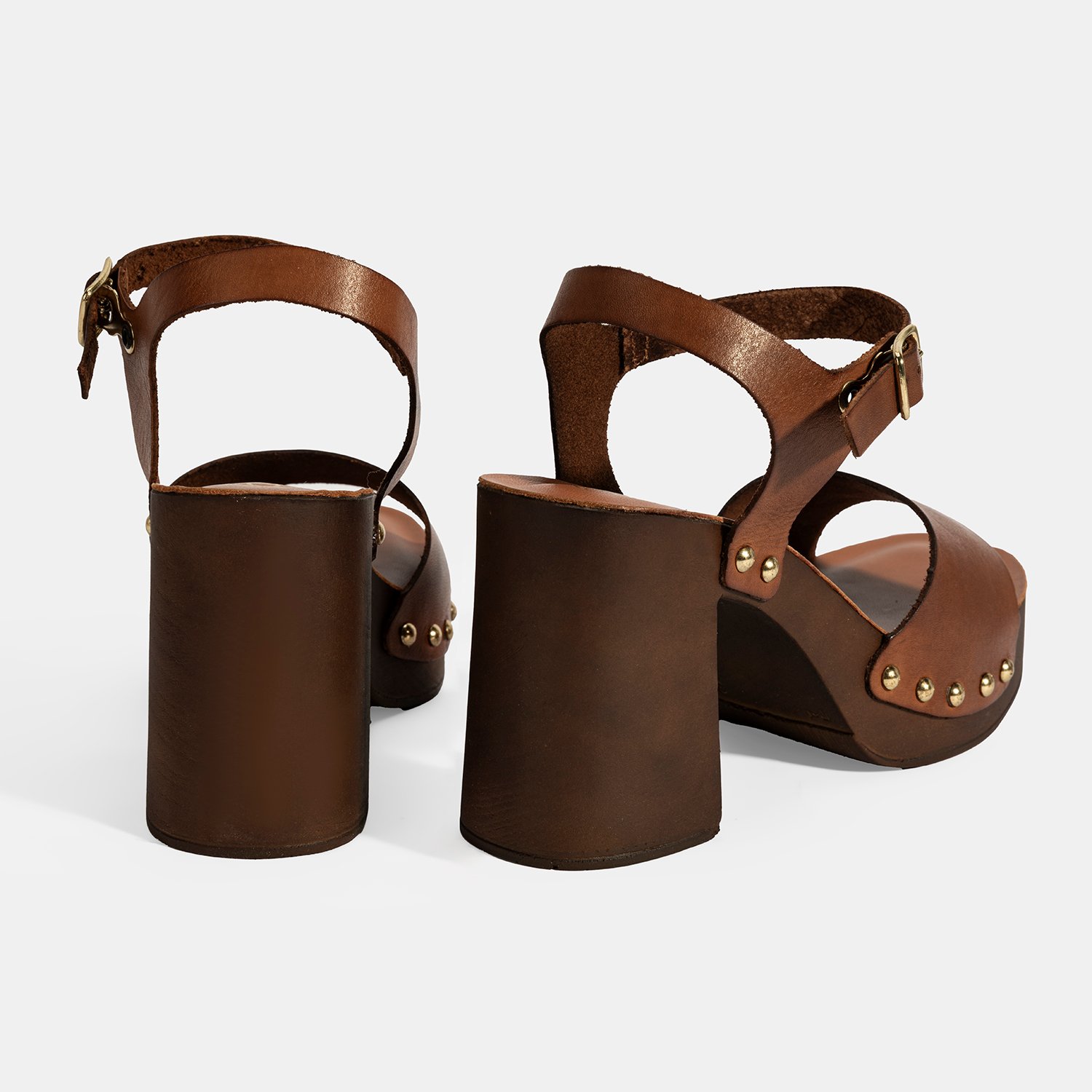 Kadın Kahve Ayarlanabilir Tokalı Deri Topuklu Sandalet