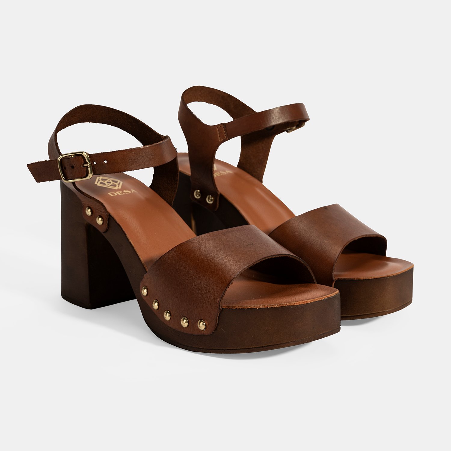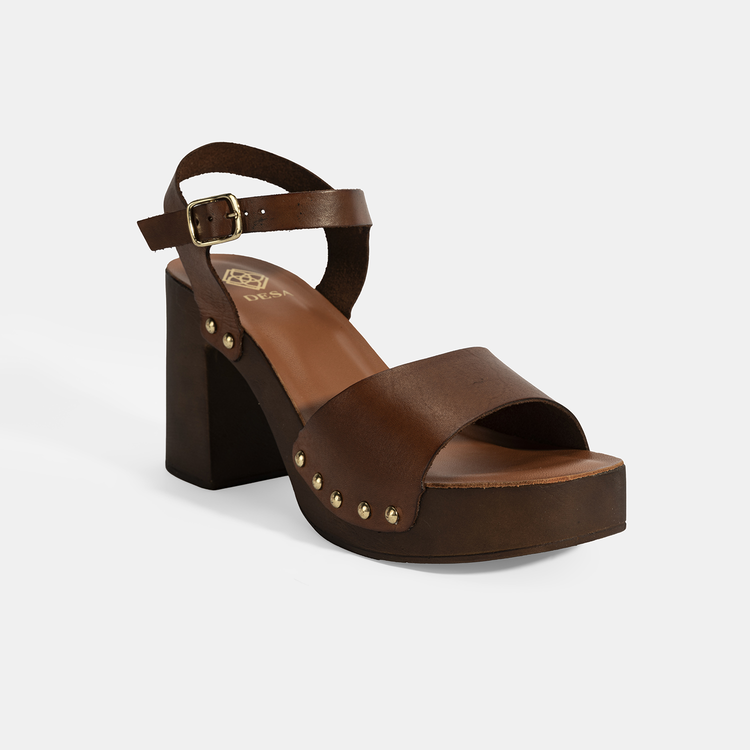%100 deri, deri iç tabanlı, astarsız, ayarlanabilir metal tokalı, pu tabanlı, kadın topuklu sandalet.