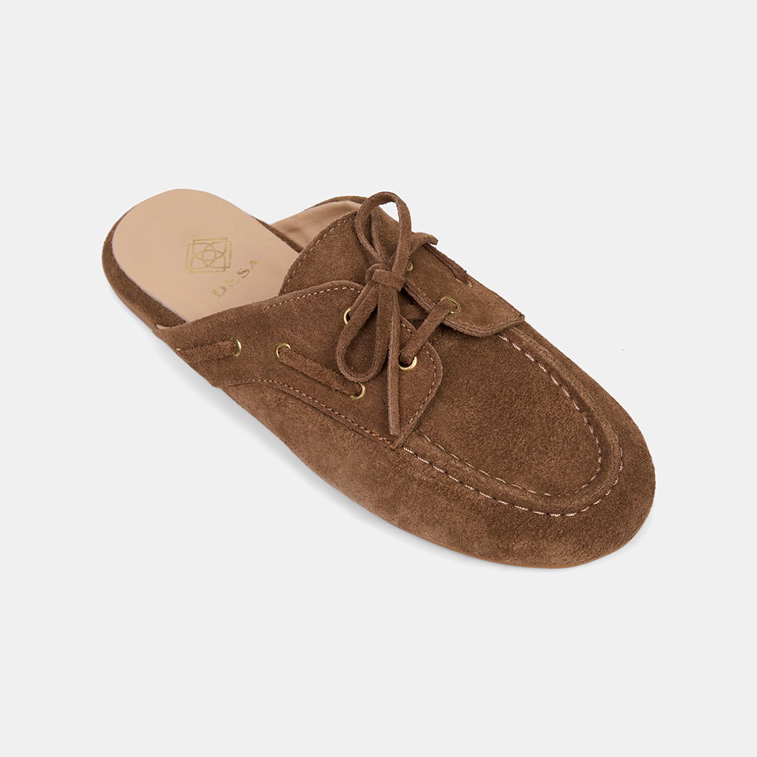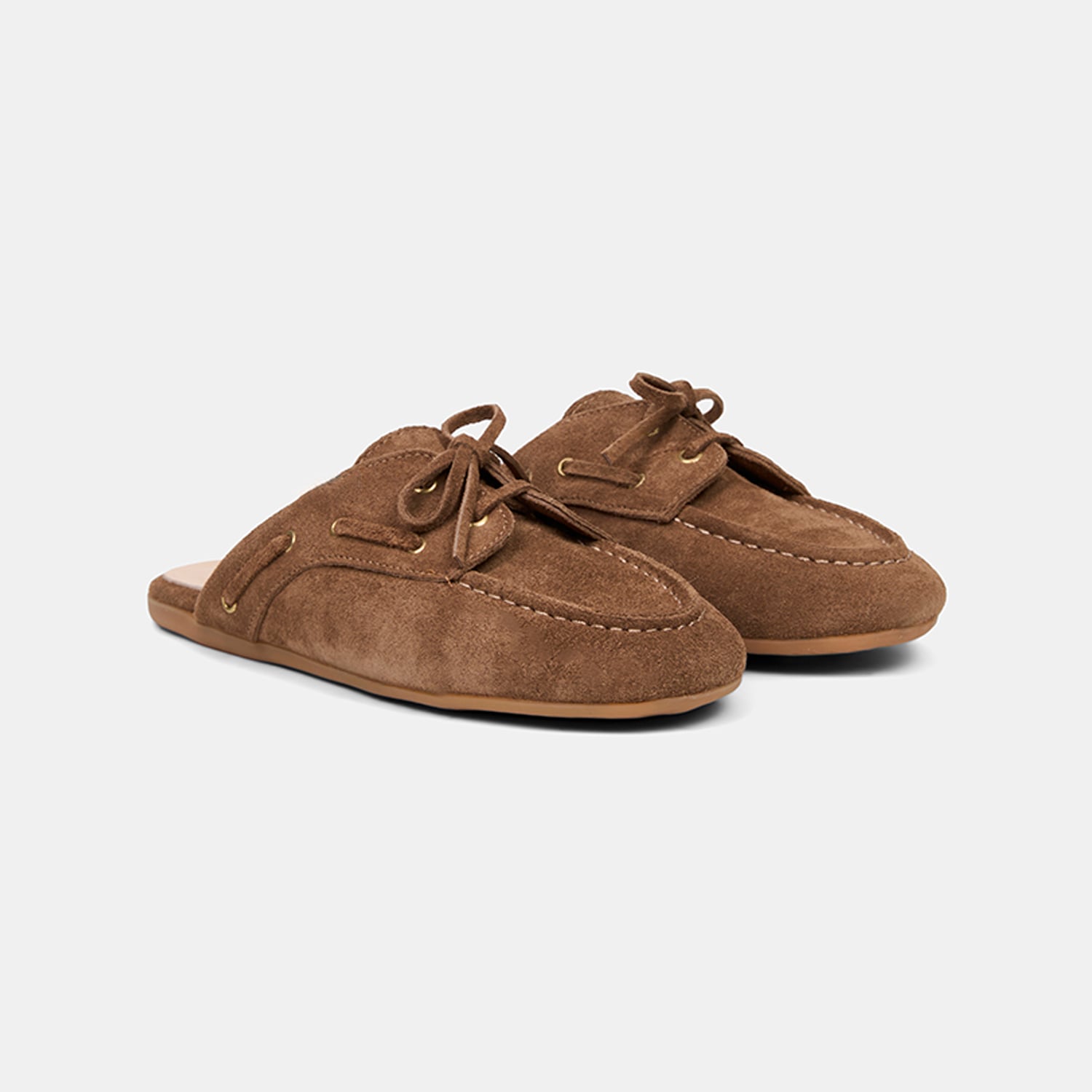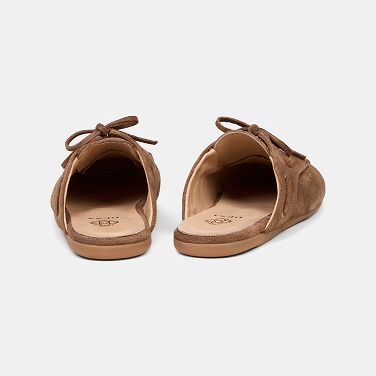 Zarif ve sade bir siluet sunan kadın süet deri kapalı terlik, günlük kombinlere uyum sağlar.