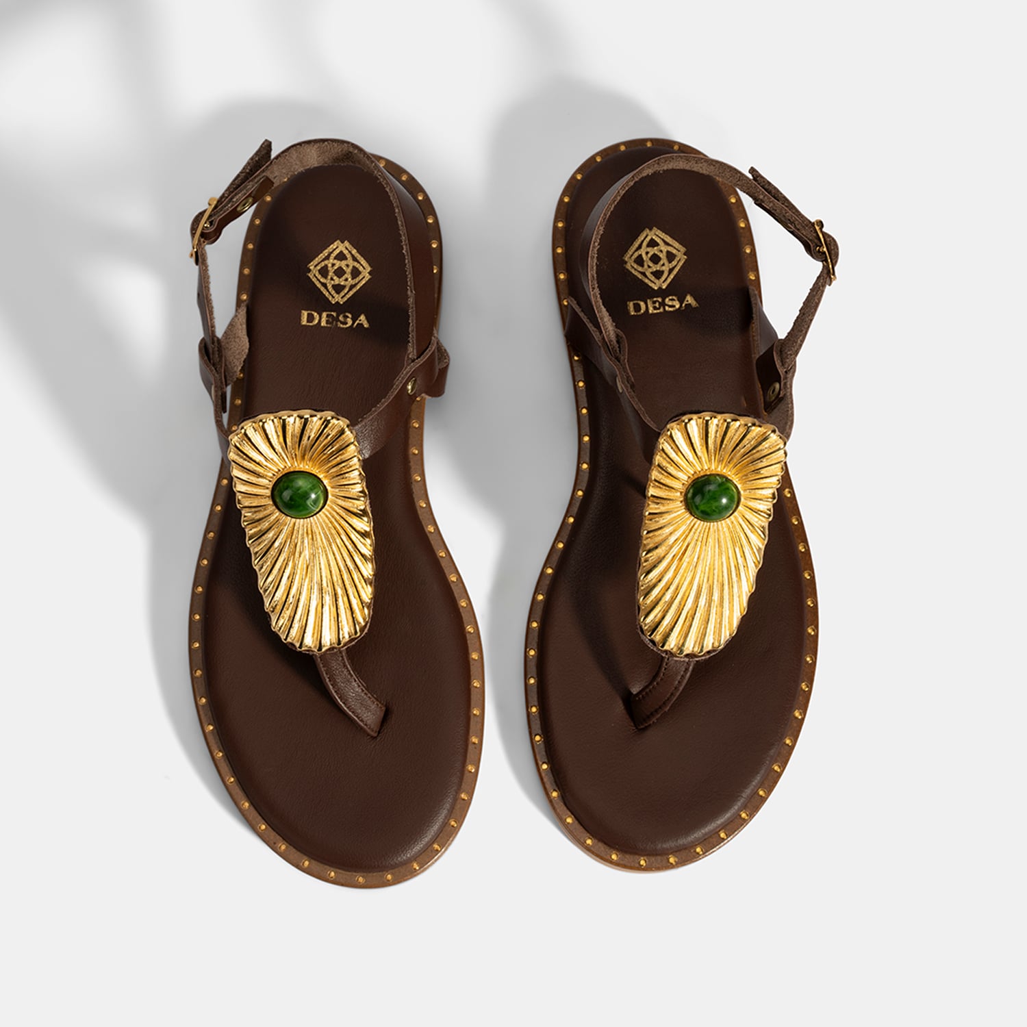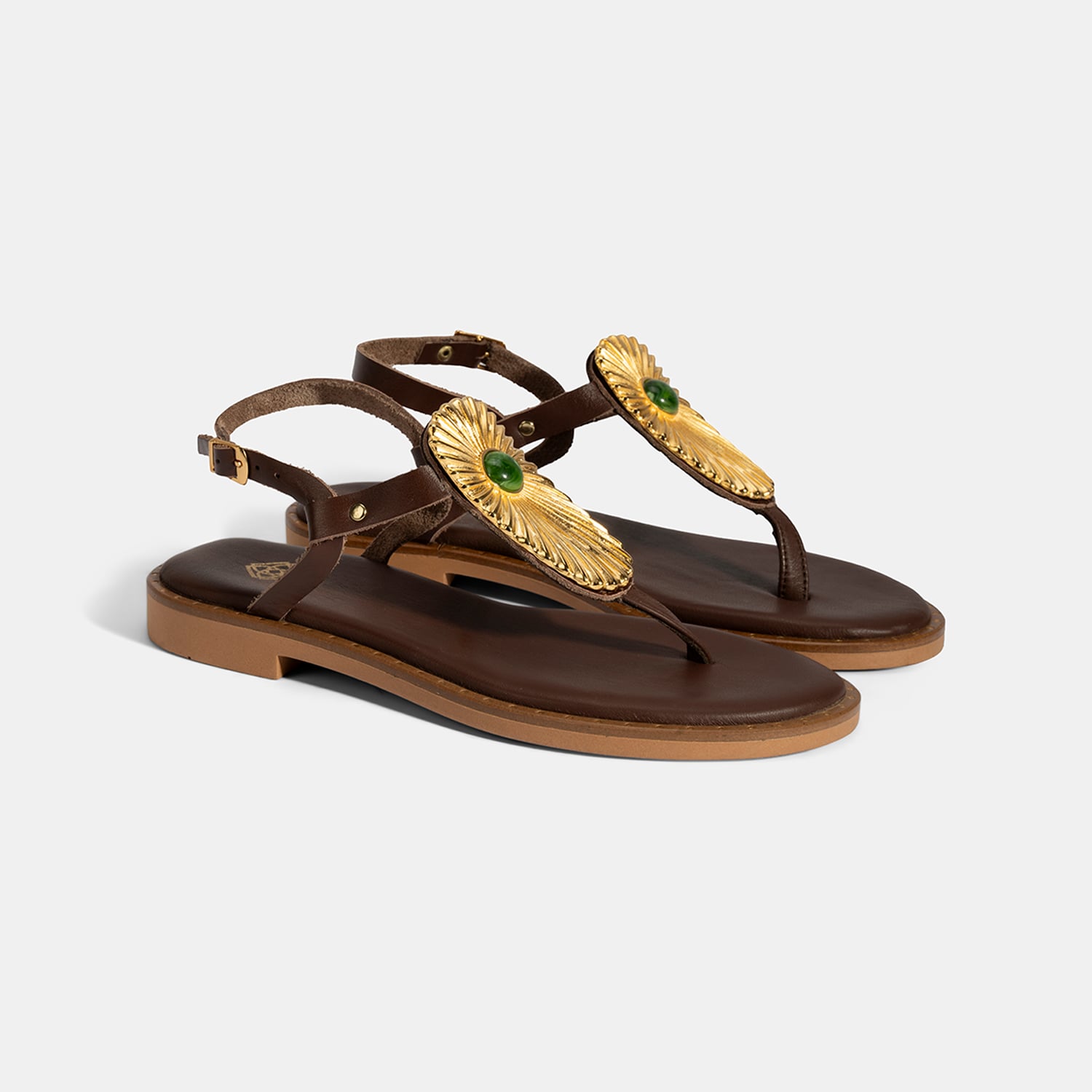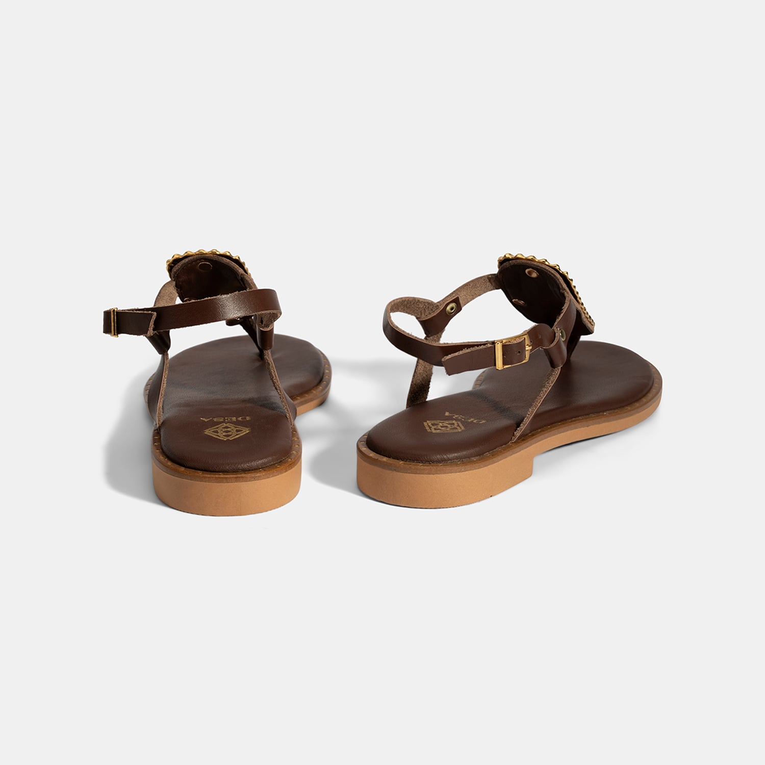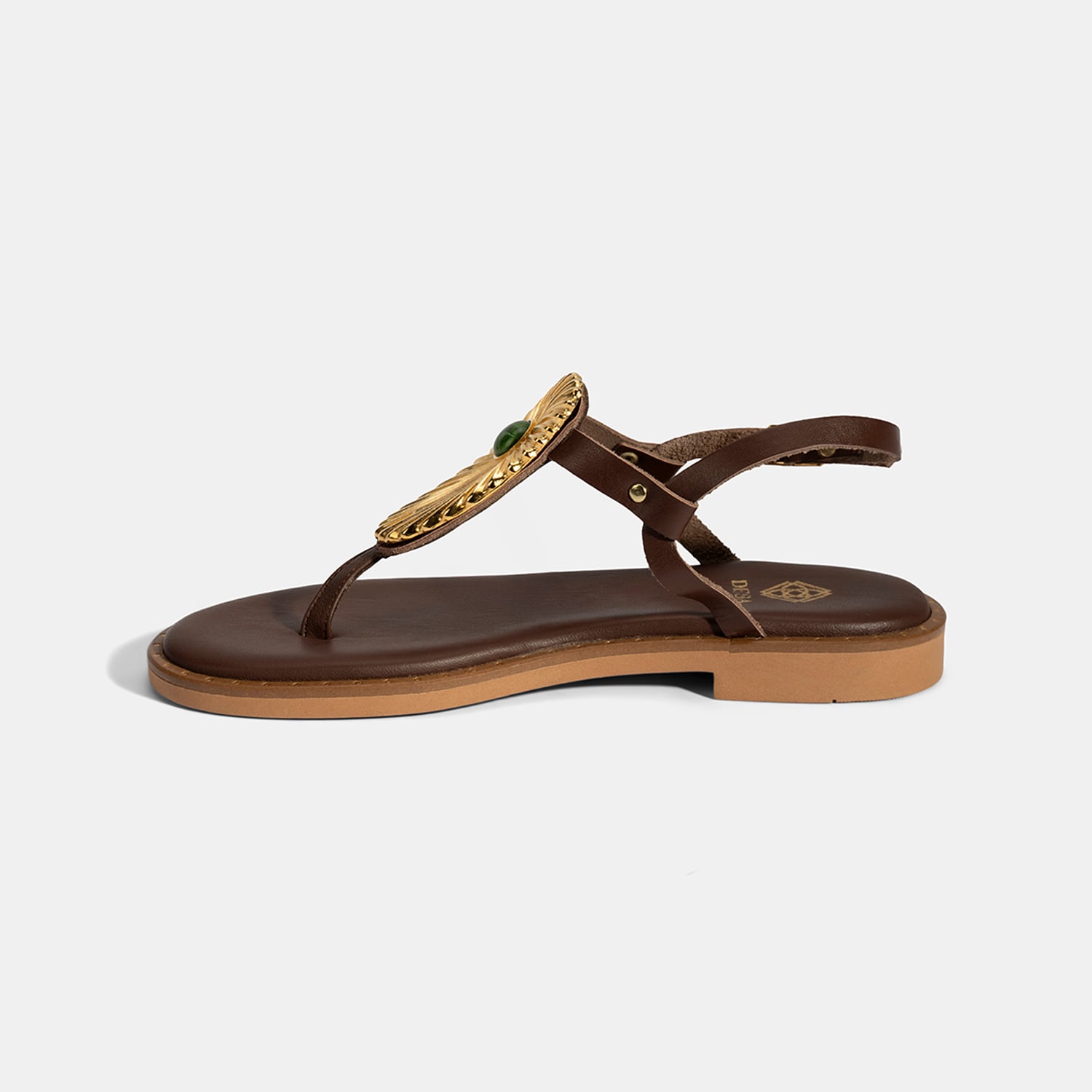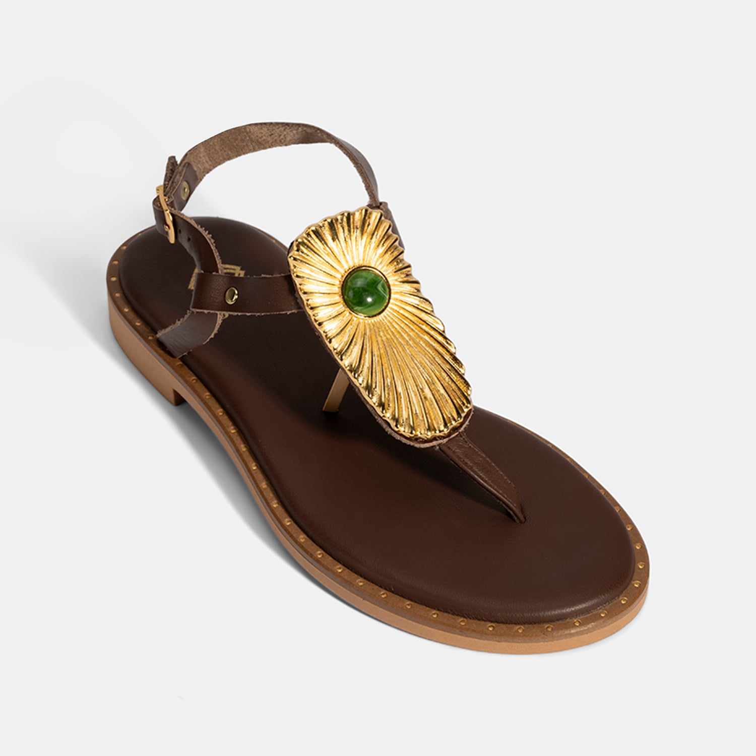 Kadın Kahve Büyük Gold Tokalı Parmak Arası Deri Sandalet