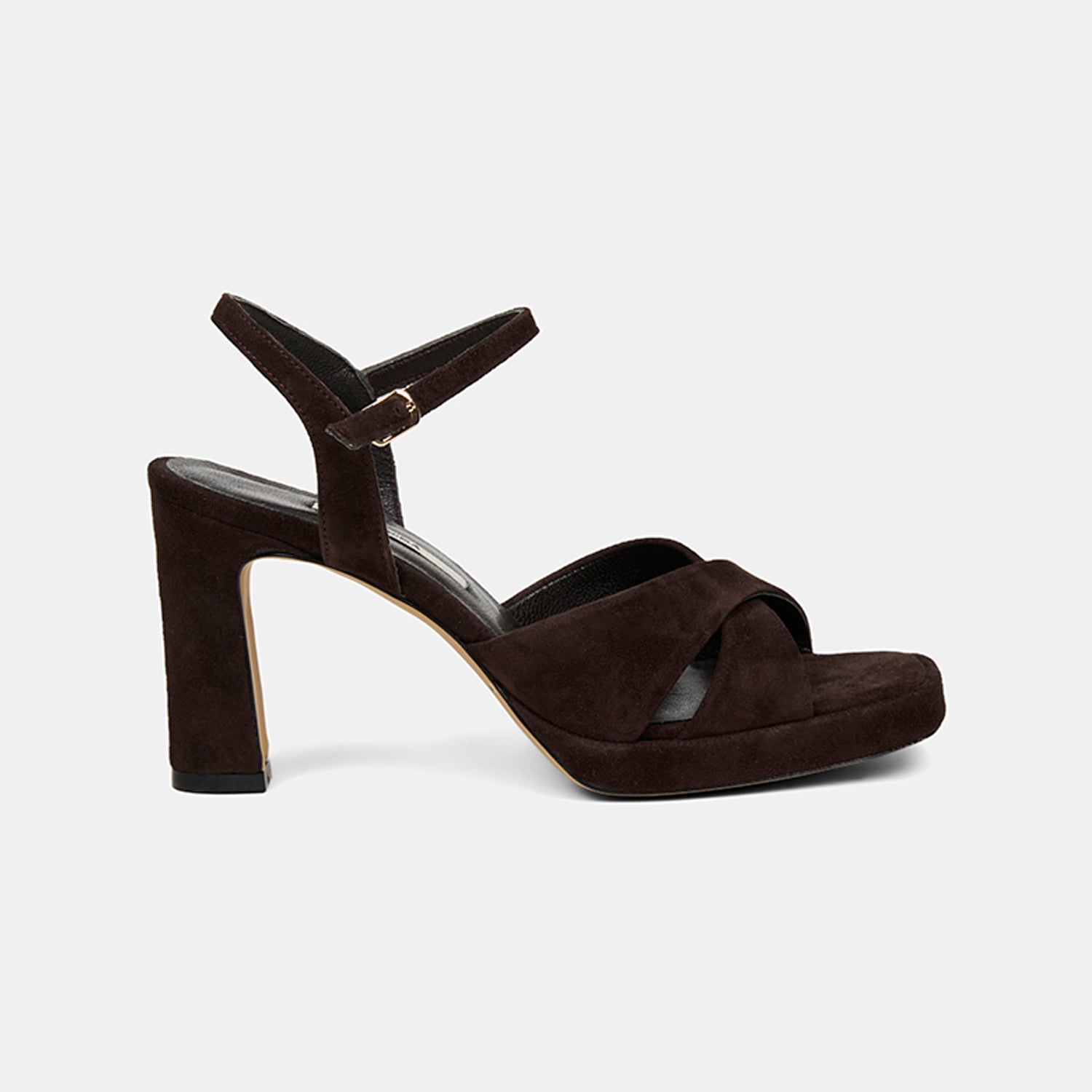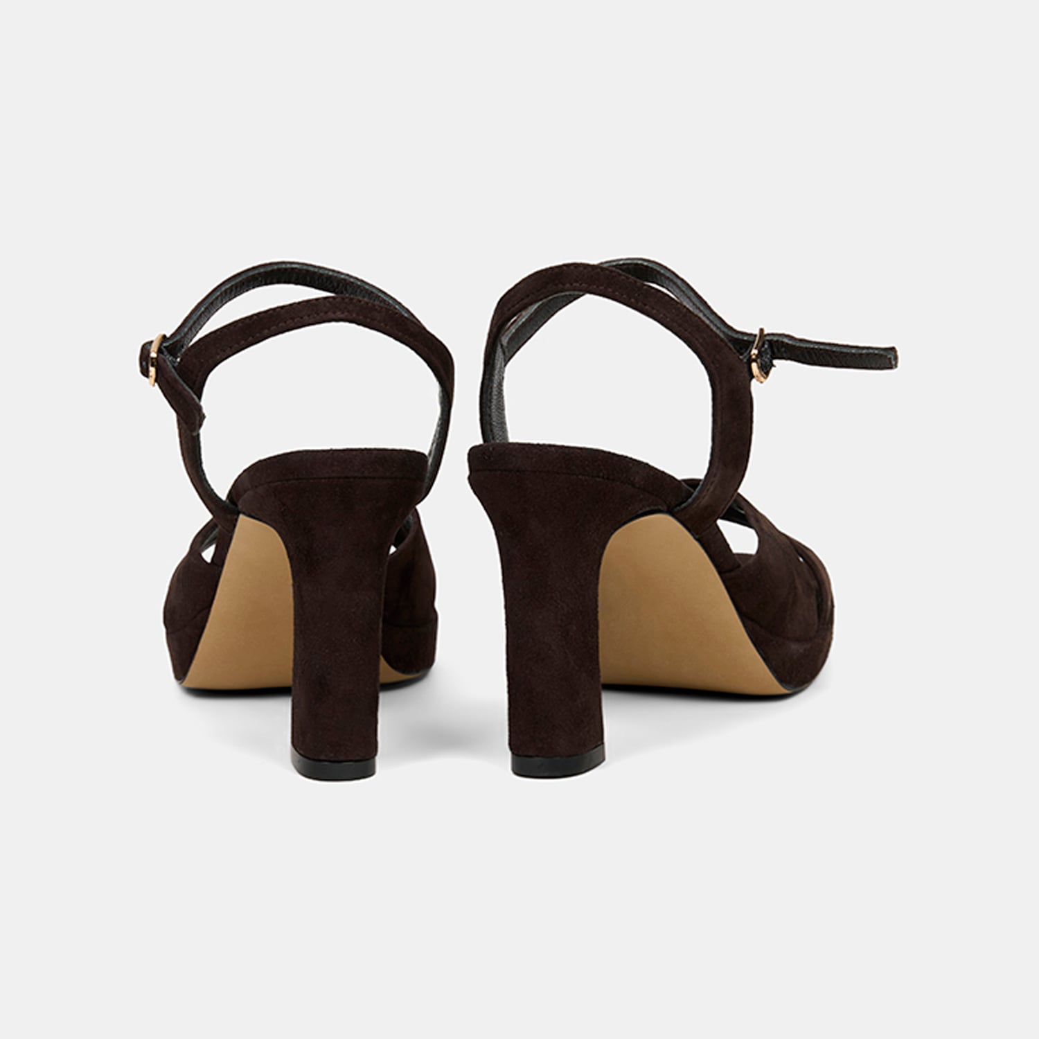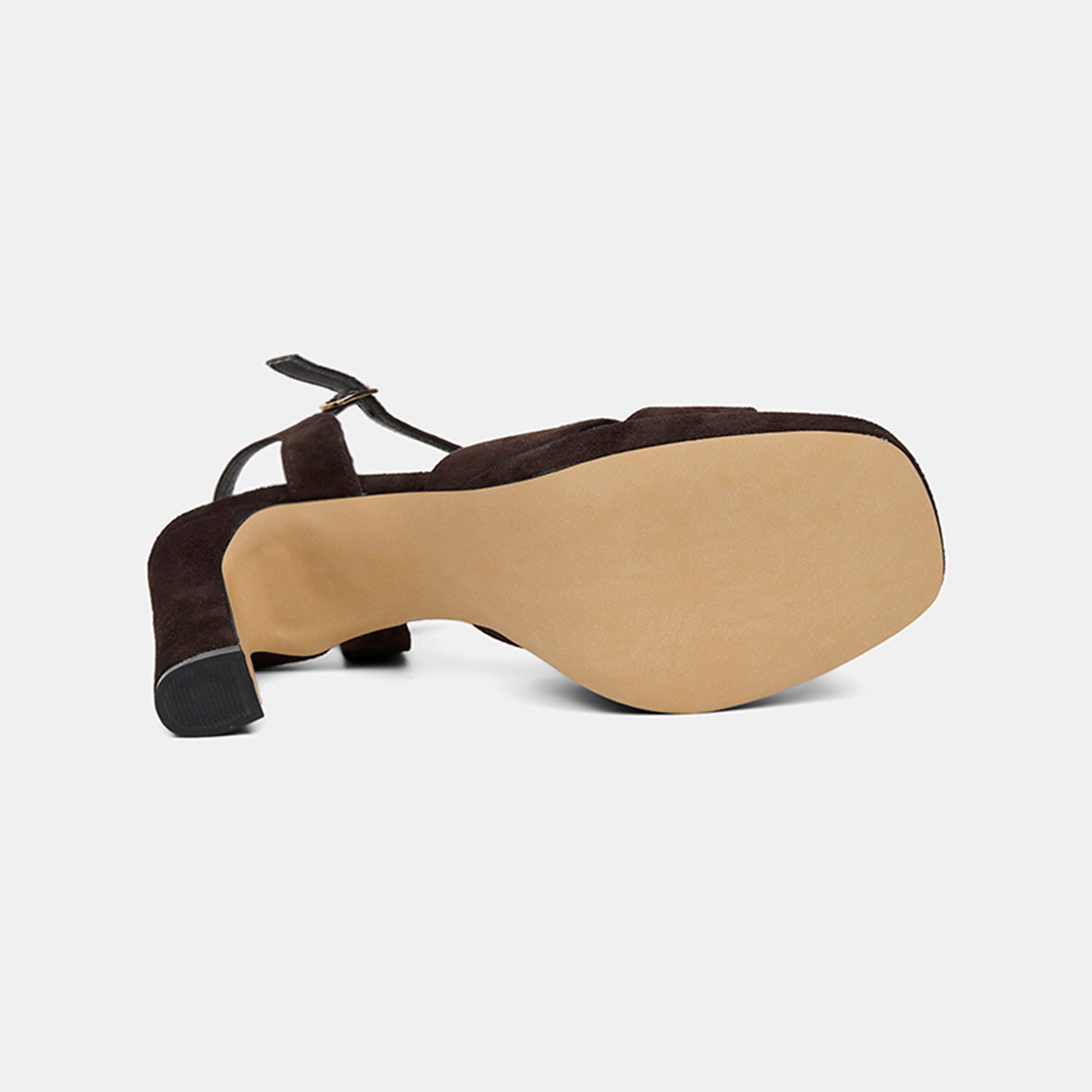 Kadın Kahve Çapraz Bantlı Kalın Topuklu Süet Abiye Sandalet