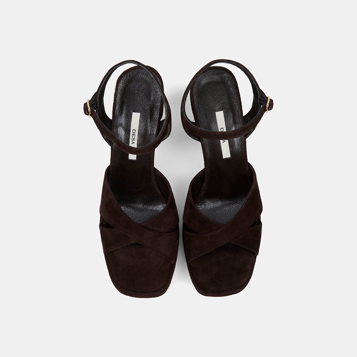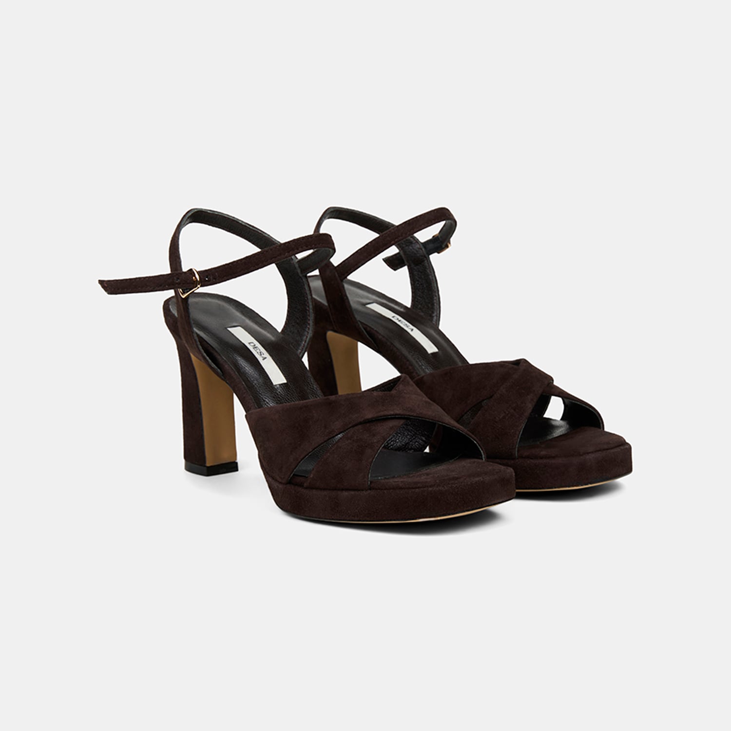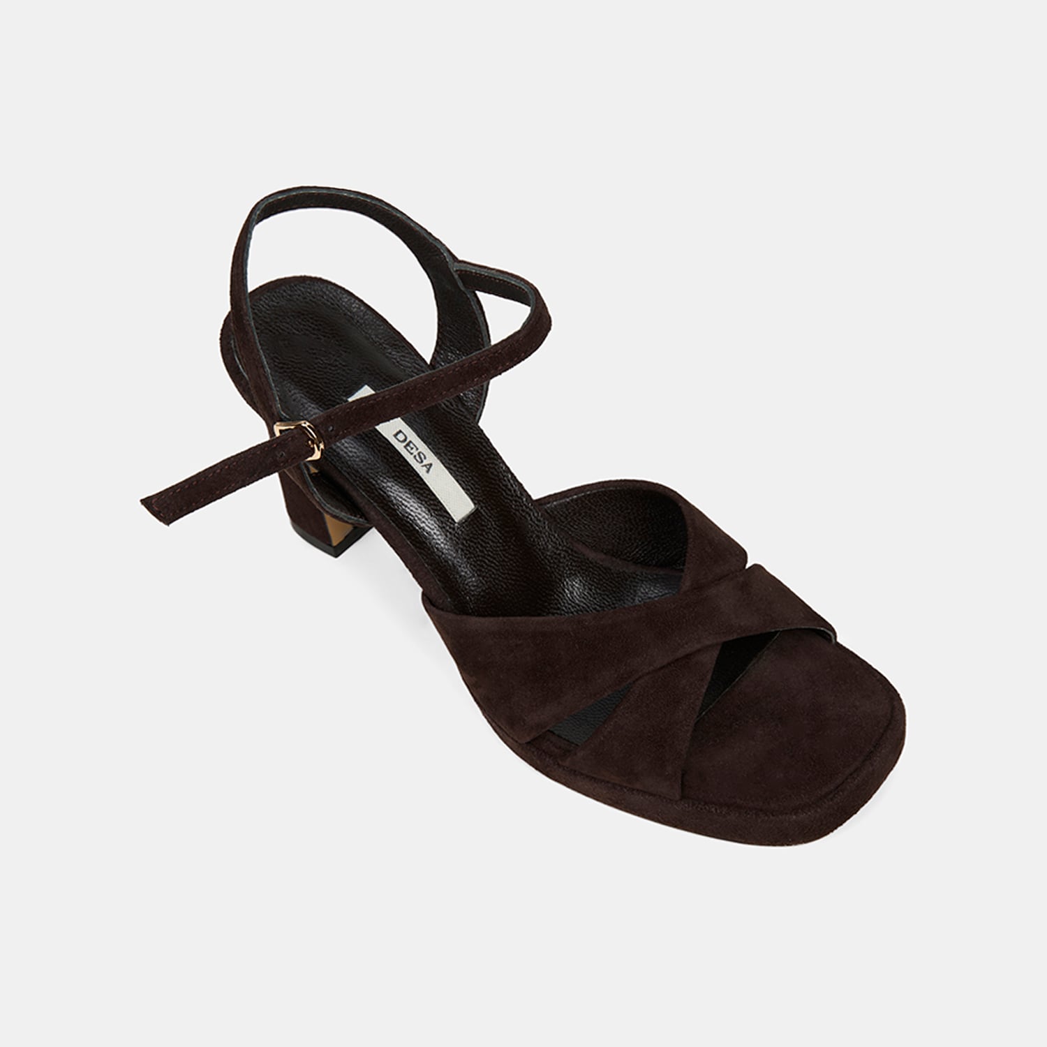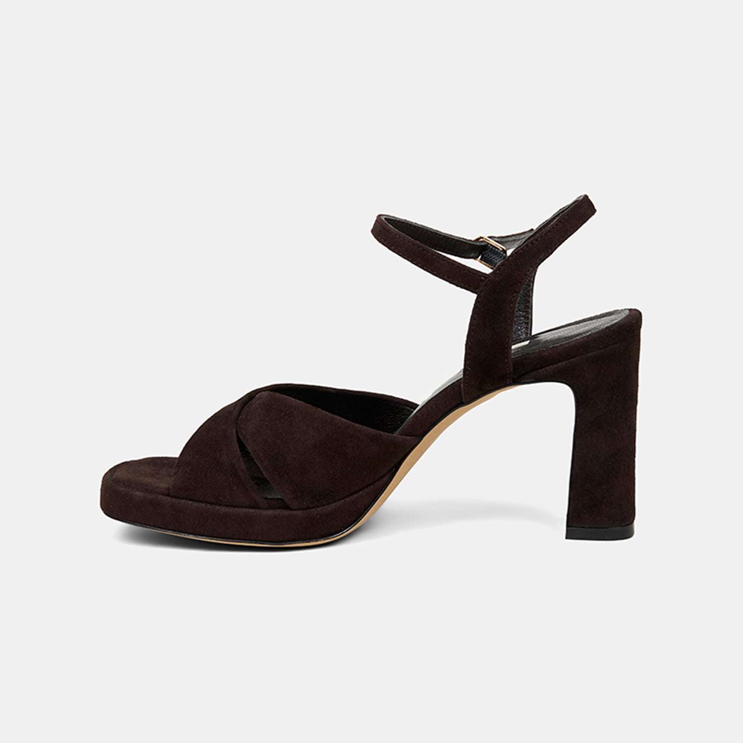 Kadın Kahve Çapraz Bantlı Kalın Topuklu Süet Abiye Sandalet
