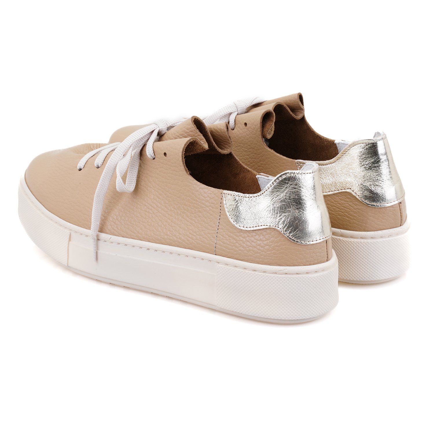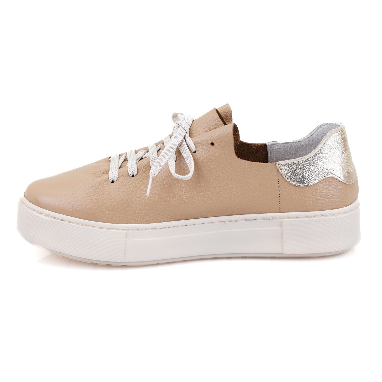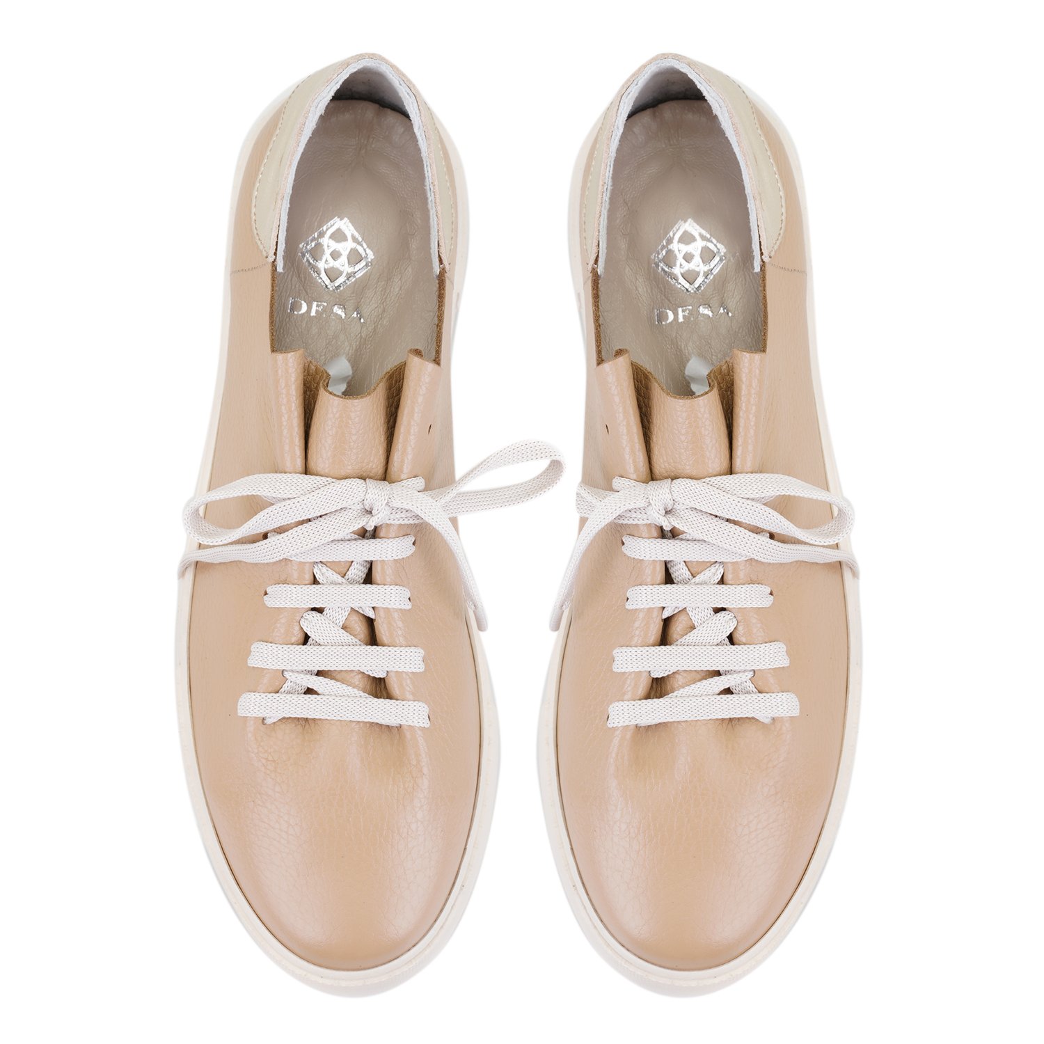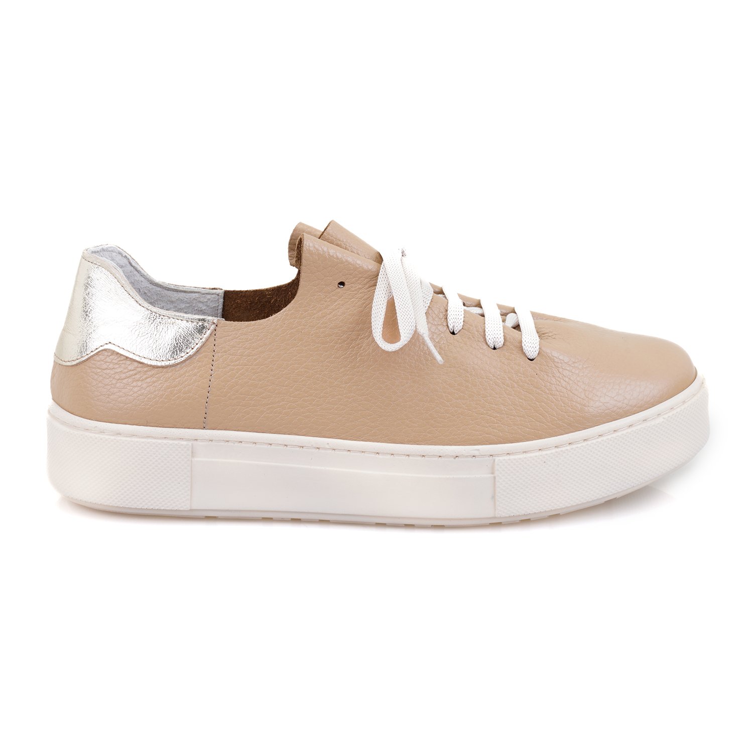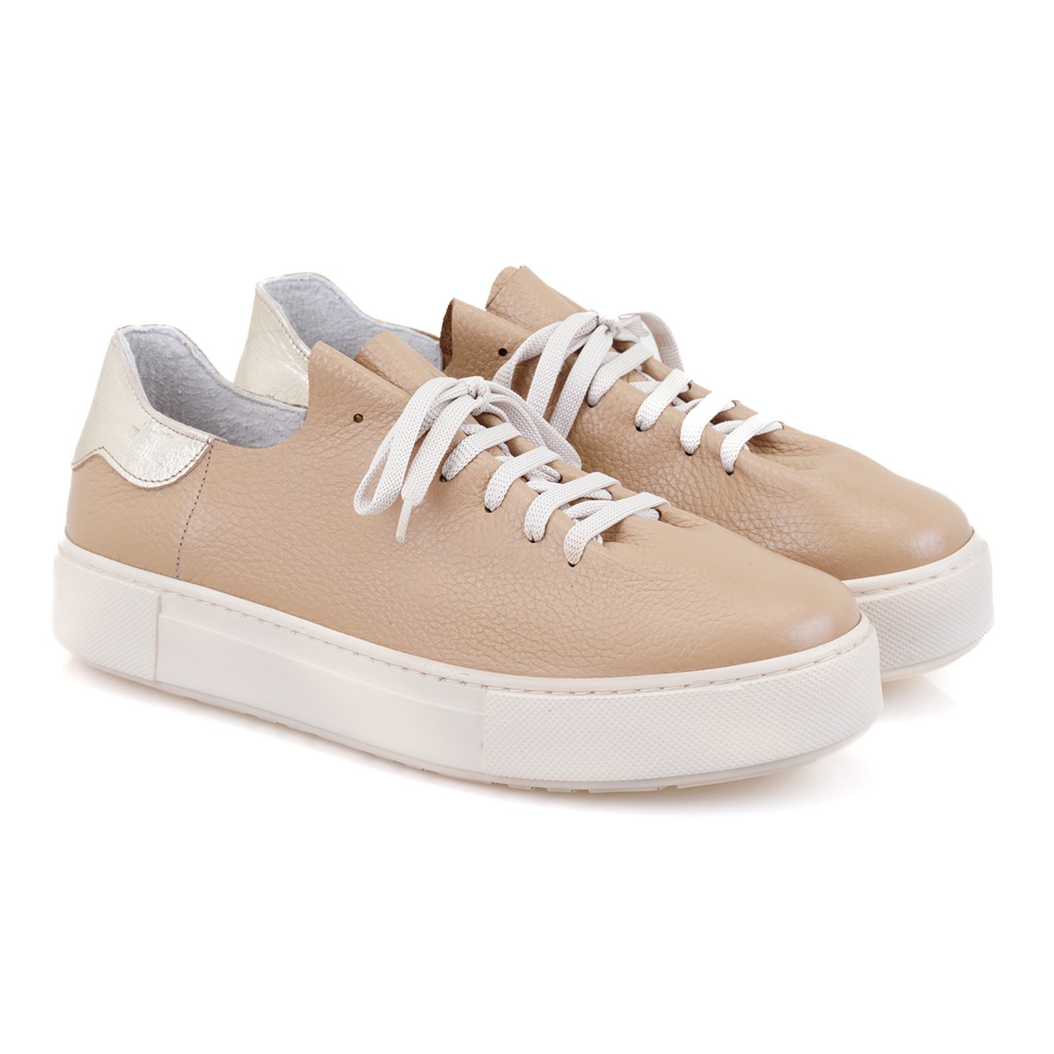 %100 deri, deri iç tabanlı, deri iç astarlı, pu tabanlı, bağcıklı kadın spor ayakkabı.