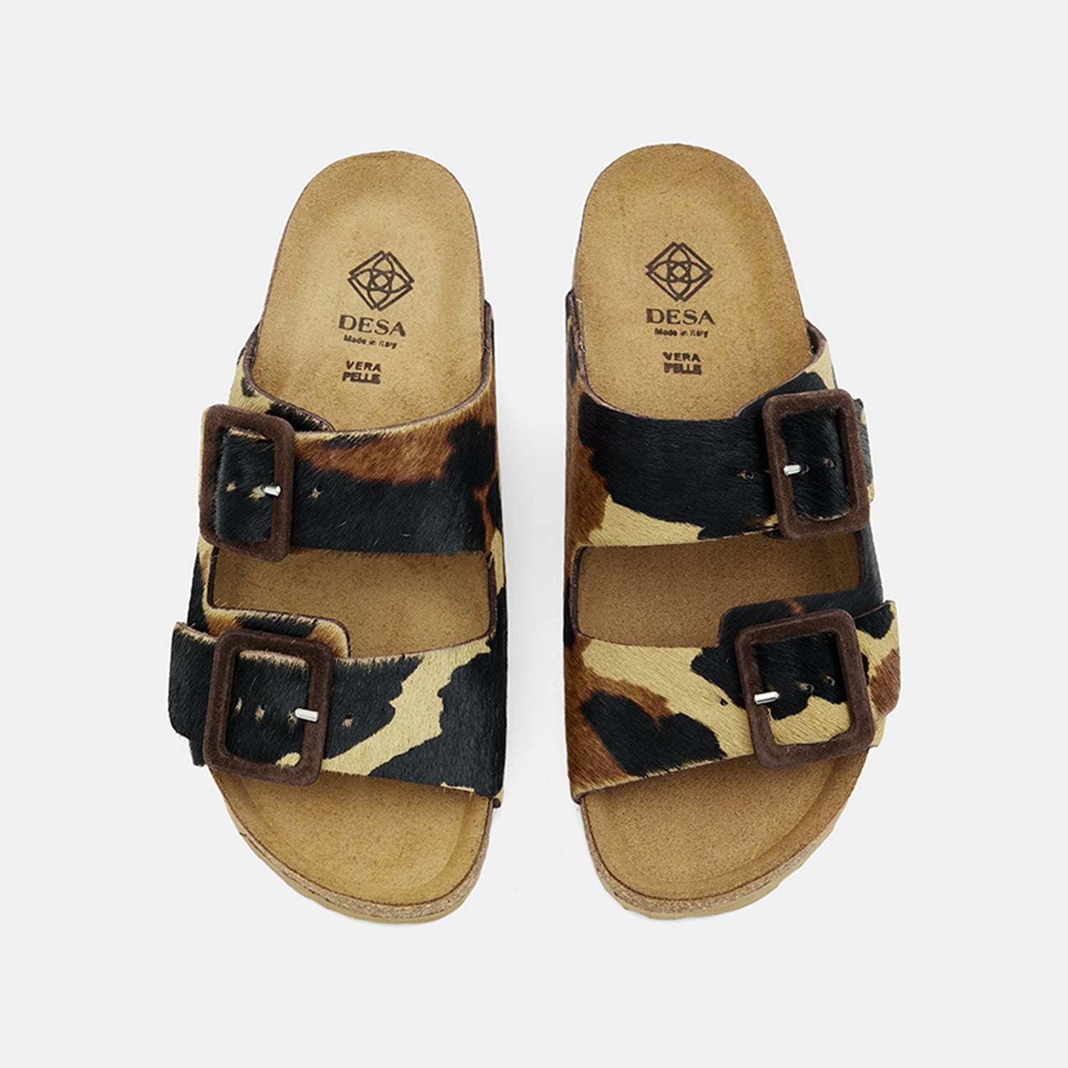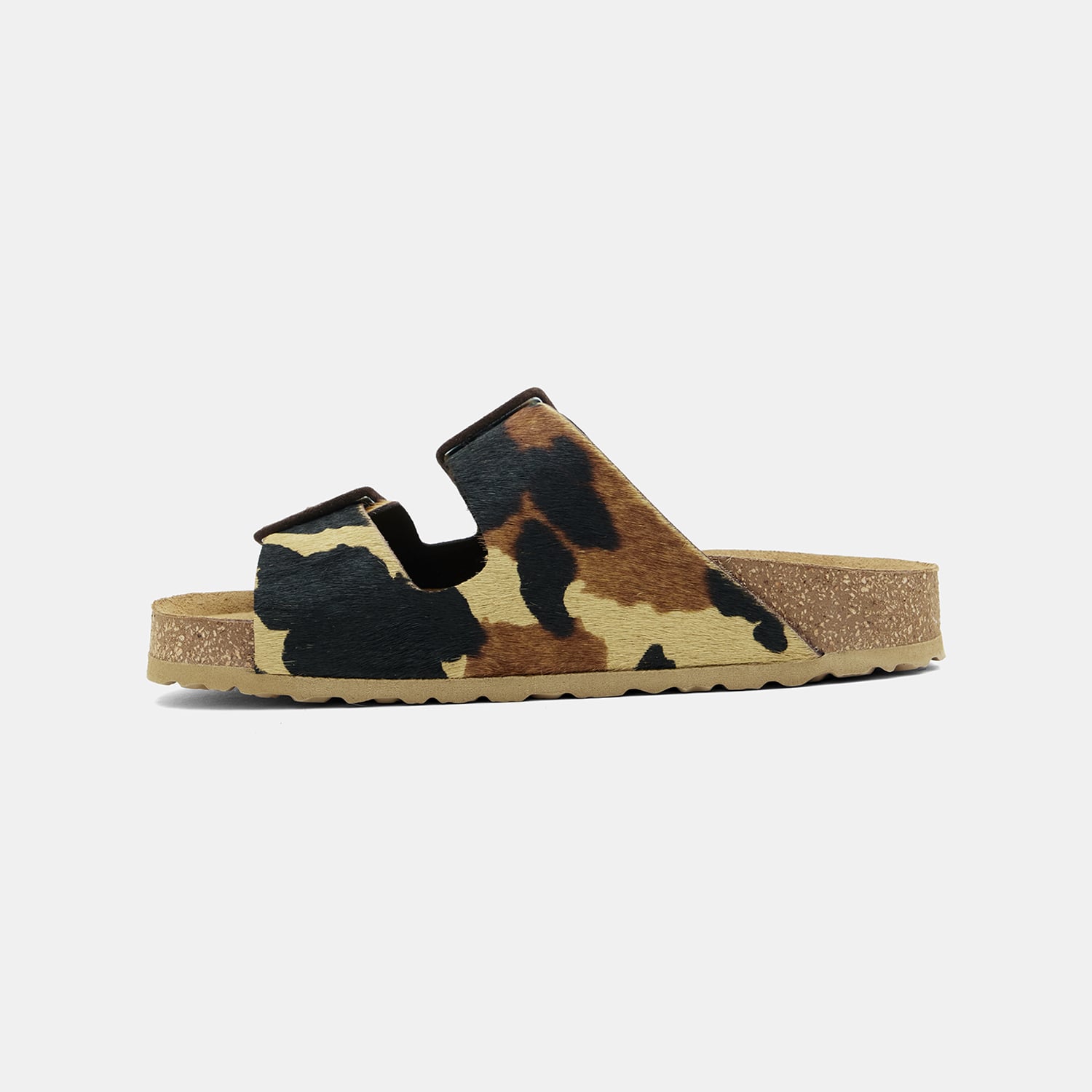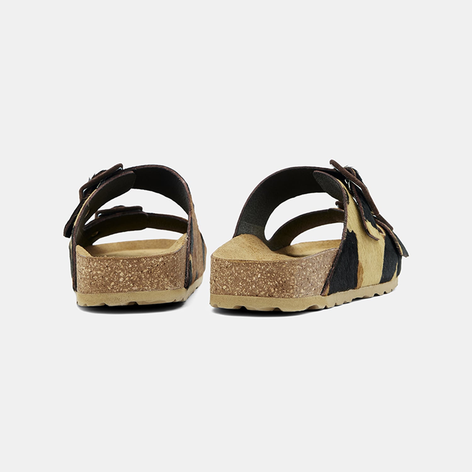 Kadın Kahve Desenli Çift Tokalı Süet Deri Terlik