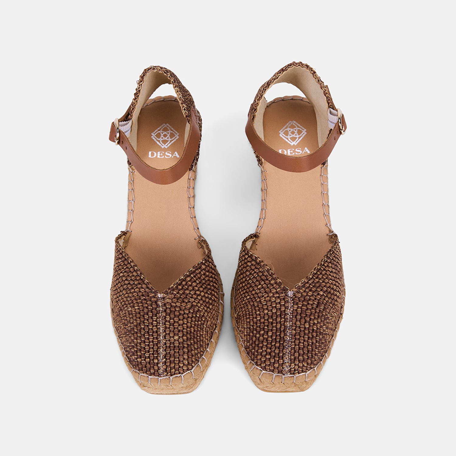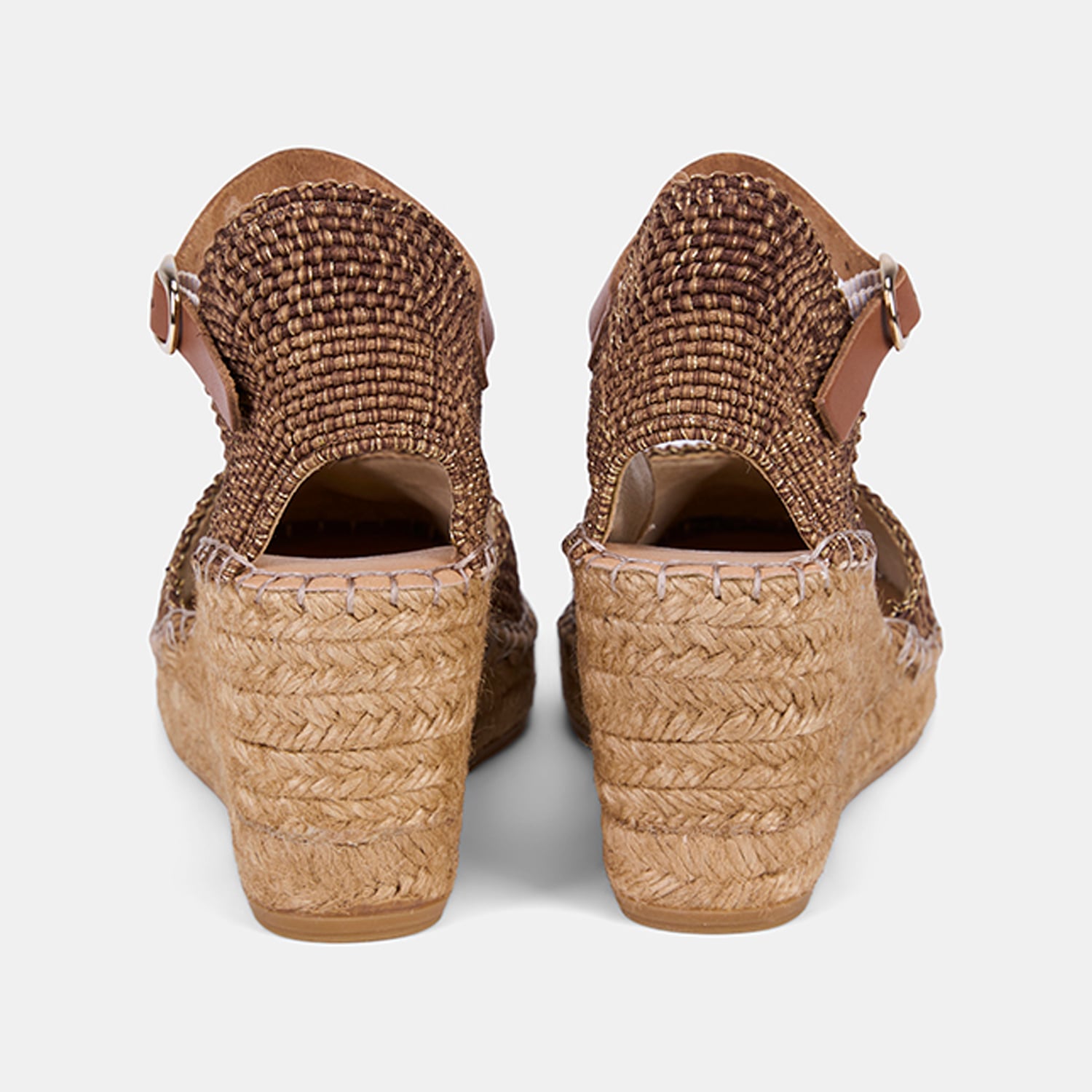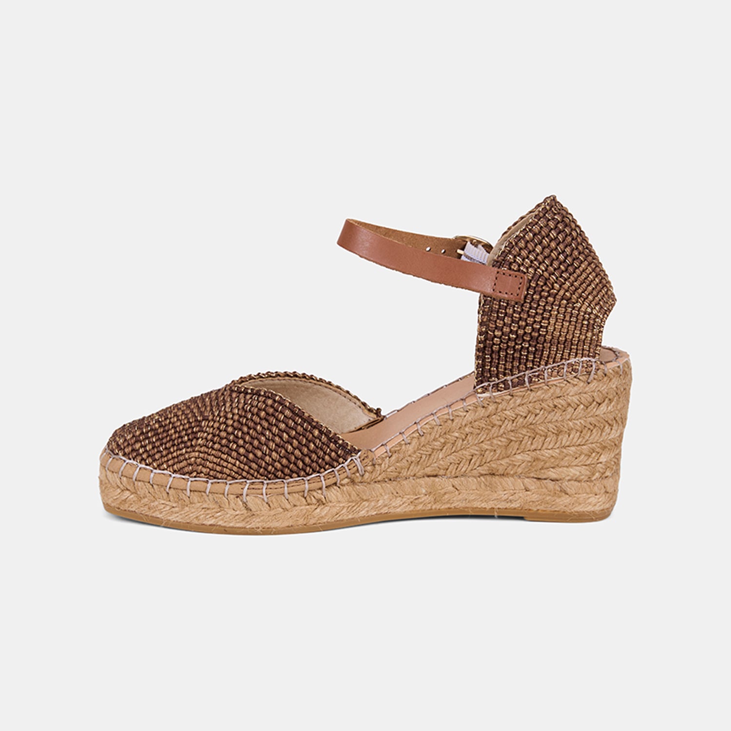 Jüt sargılı dolgu topuk tasarımı, doğal dokusuyla espadril stilini modern bir görünüme taşır ve hafif yükseltisiyle rahat bir duruş kazandırır.