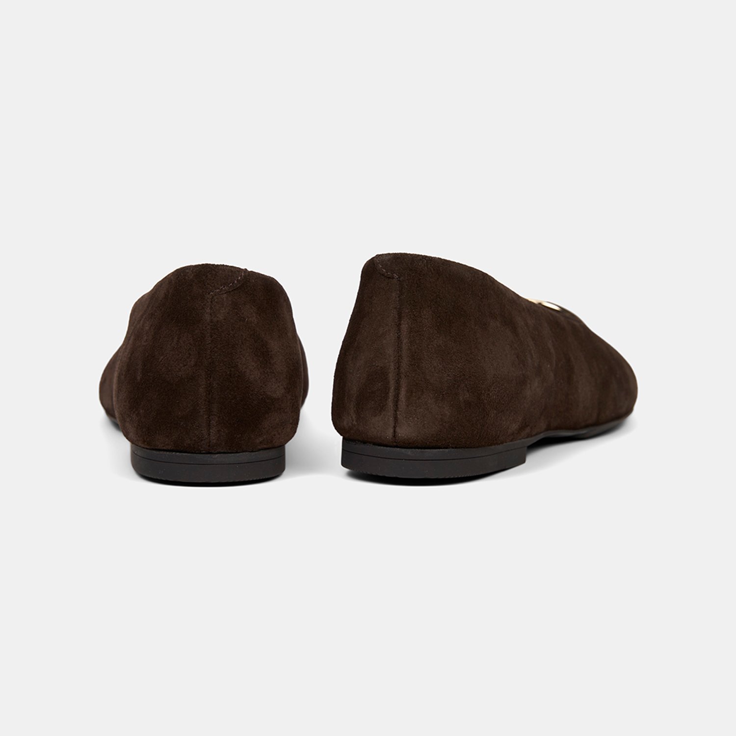 Kadın Kahve Gold Aksesuarlı Süet Deri Babet