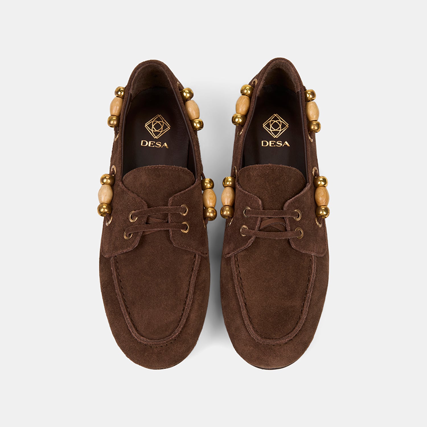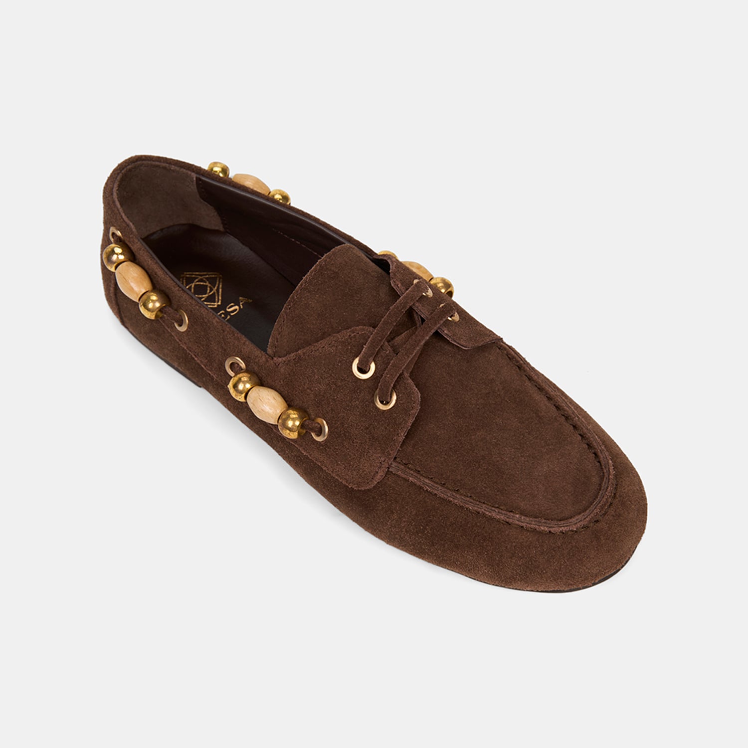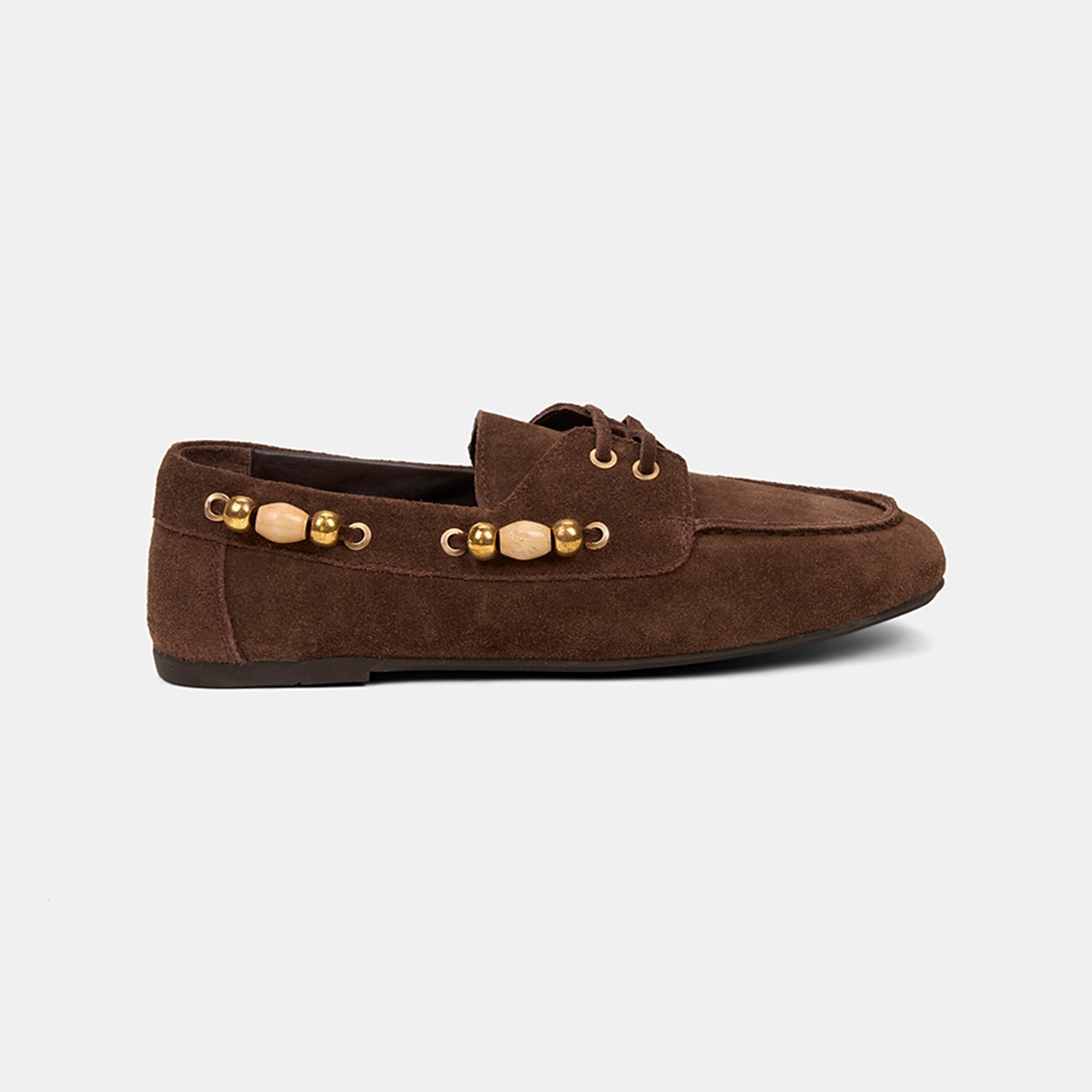 Kadın Kahve Gold Boncuk Aksesuarlı Süet Deri Loafer