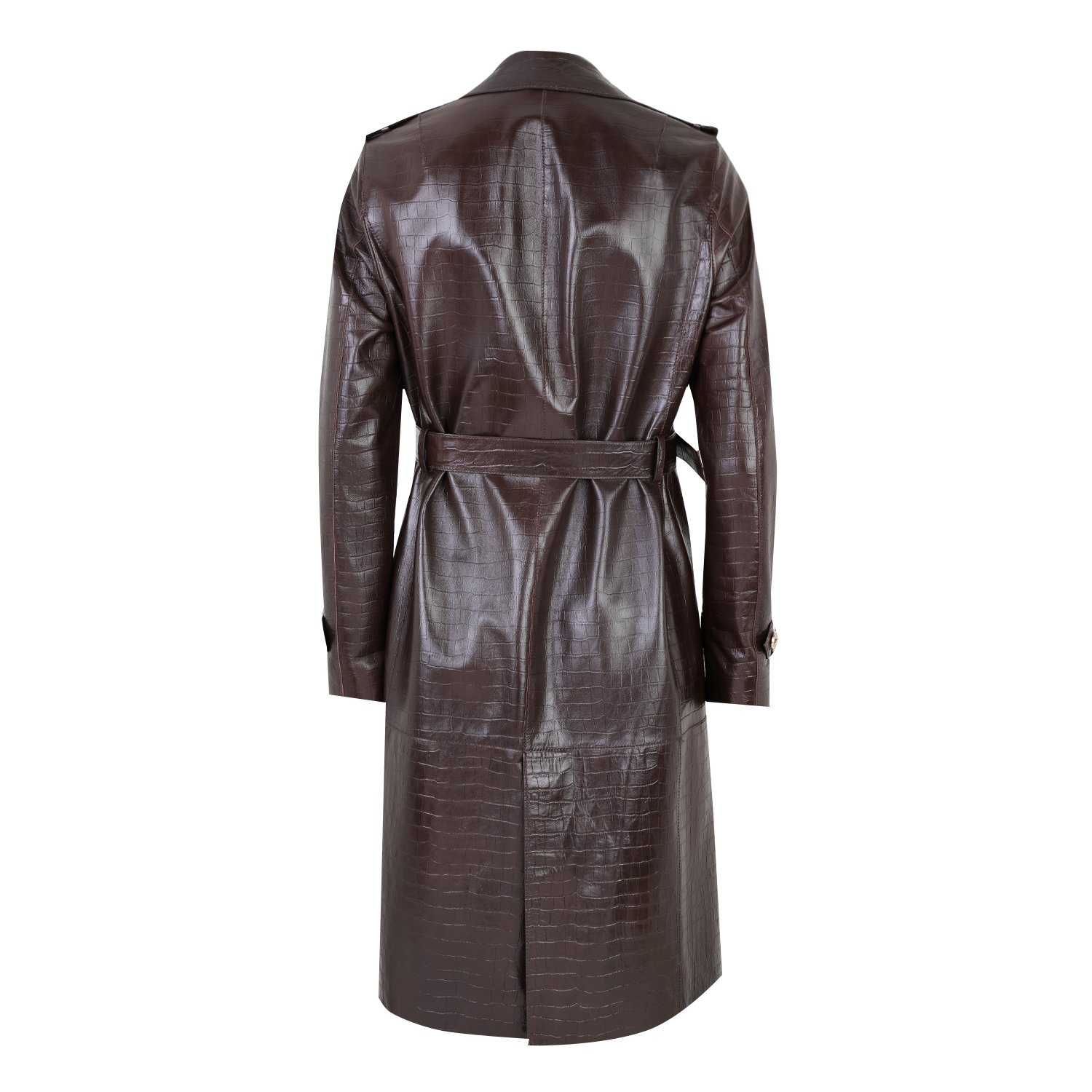 Kadın Kahve Kroko Baskılı Deri Trençkot