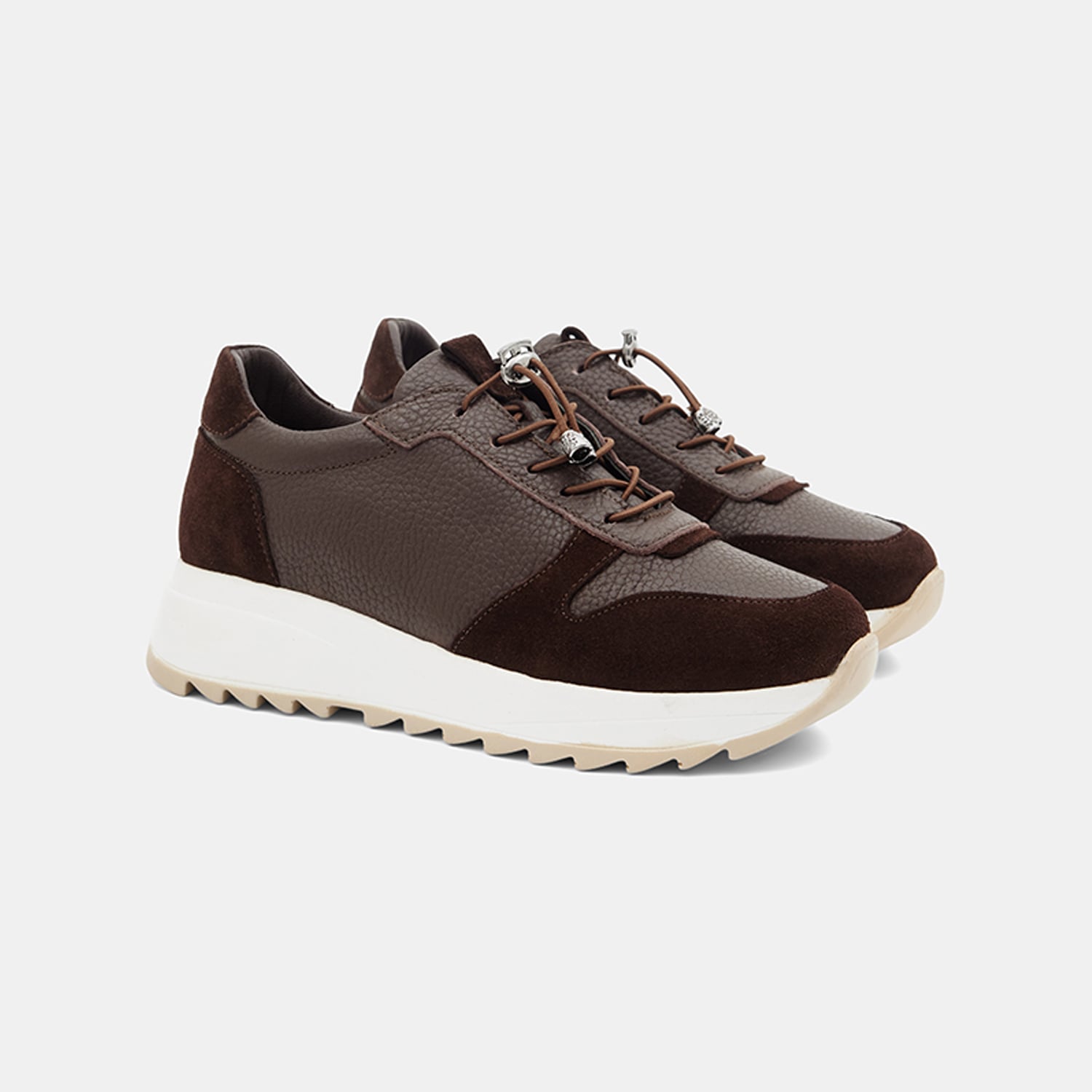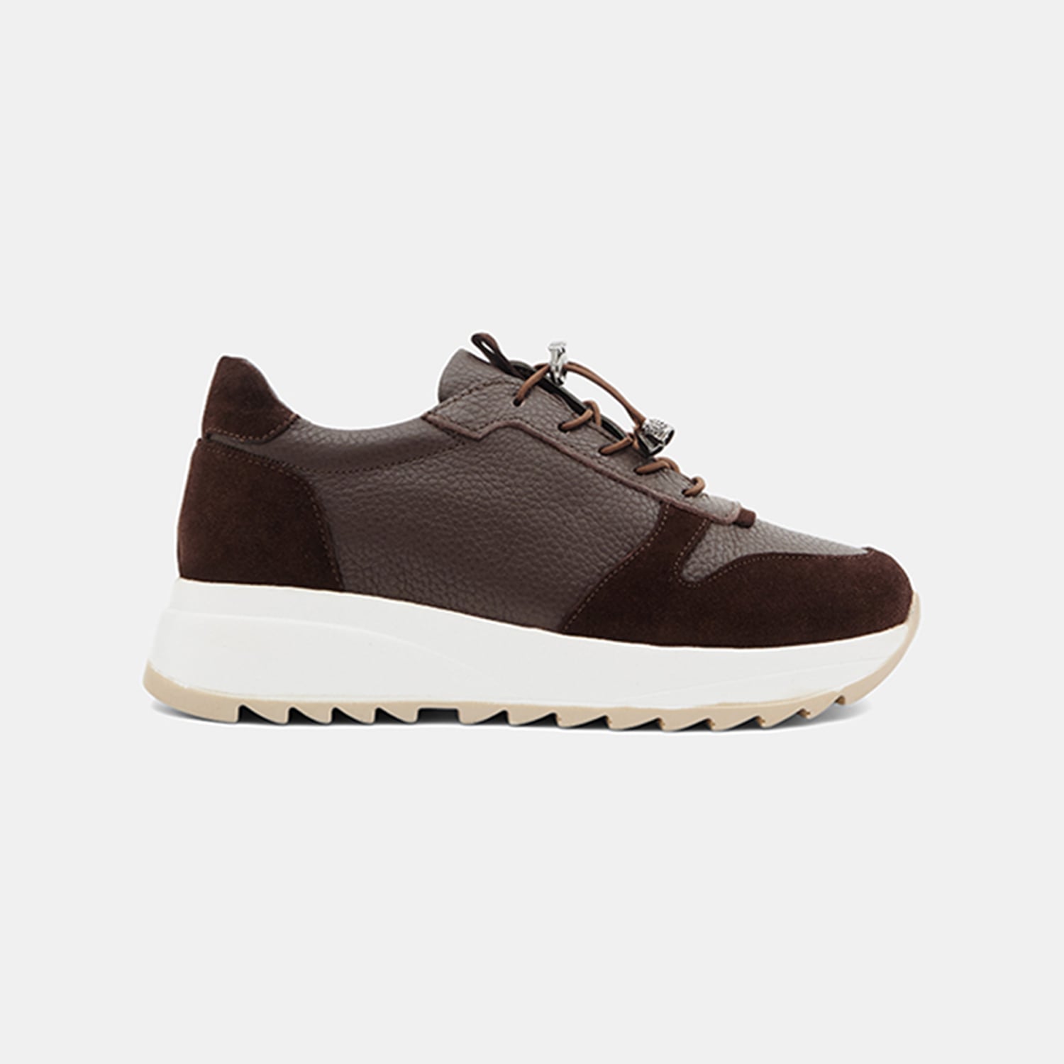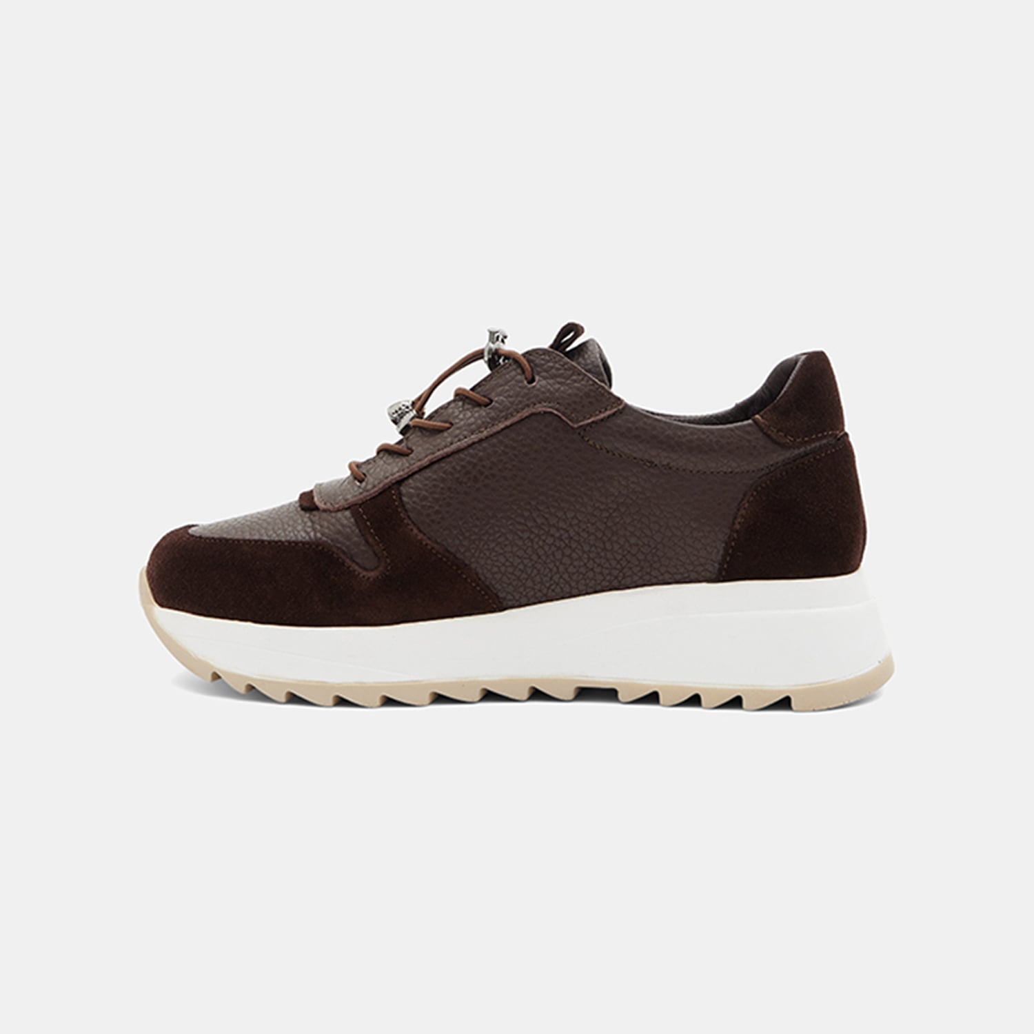 Kadın Kahve Lastik Bağcıklı Süet Dokulu Deri Spor Ayakkabı