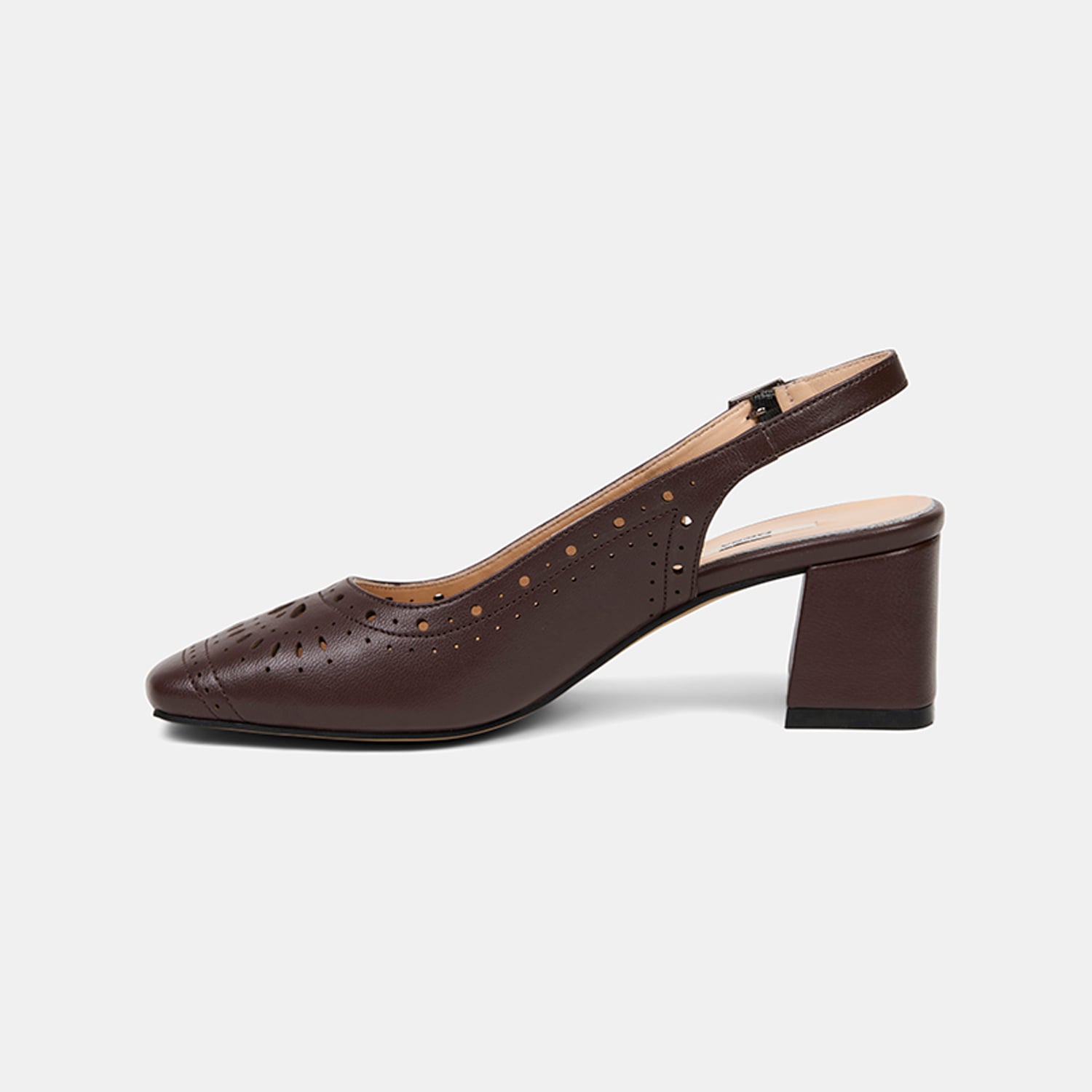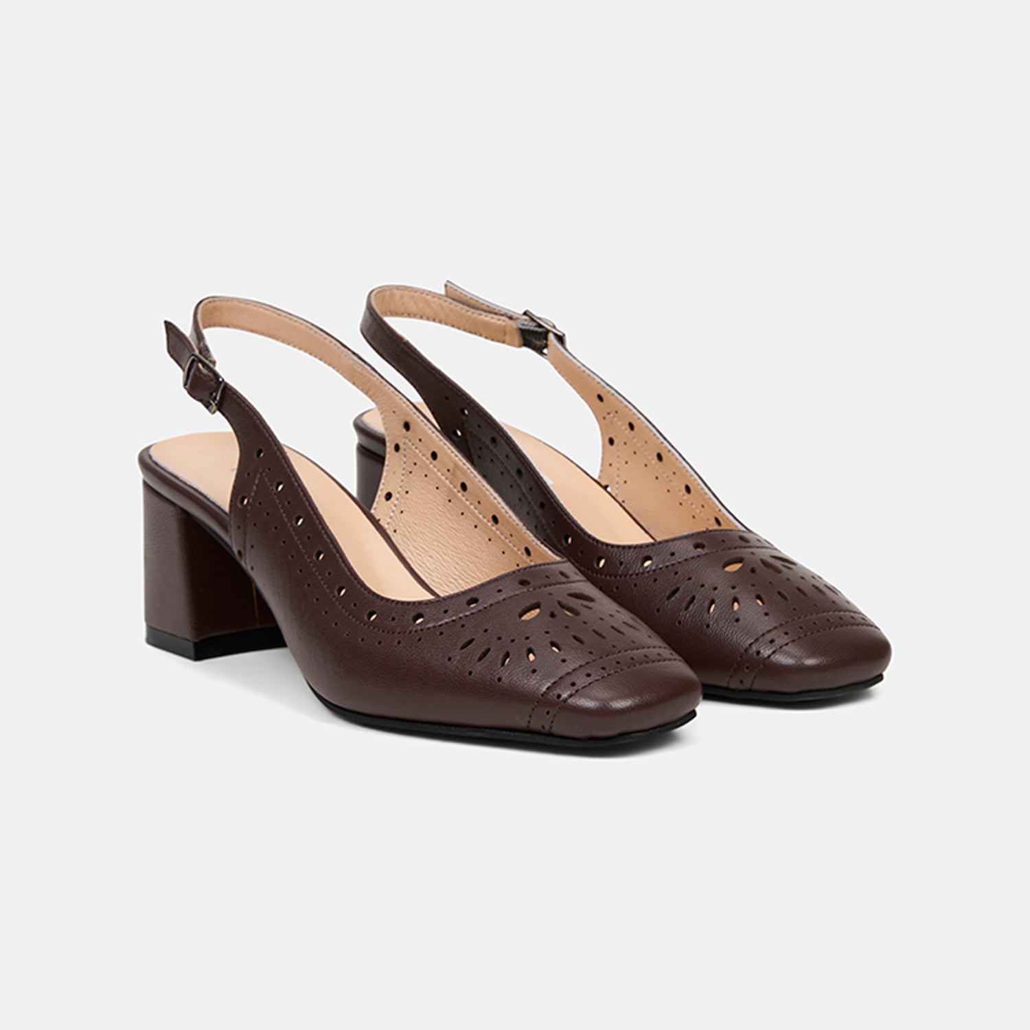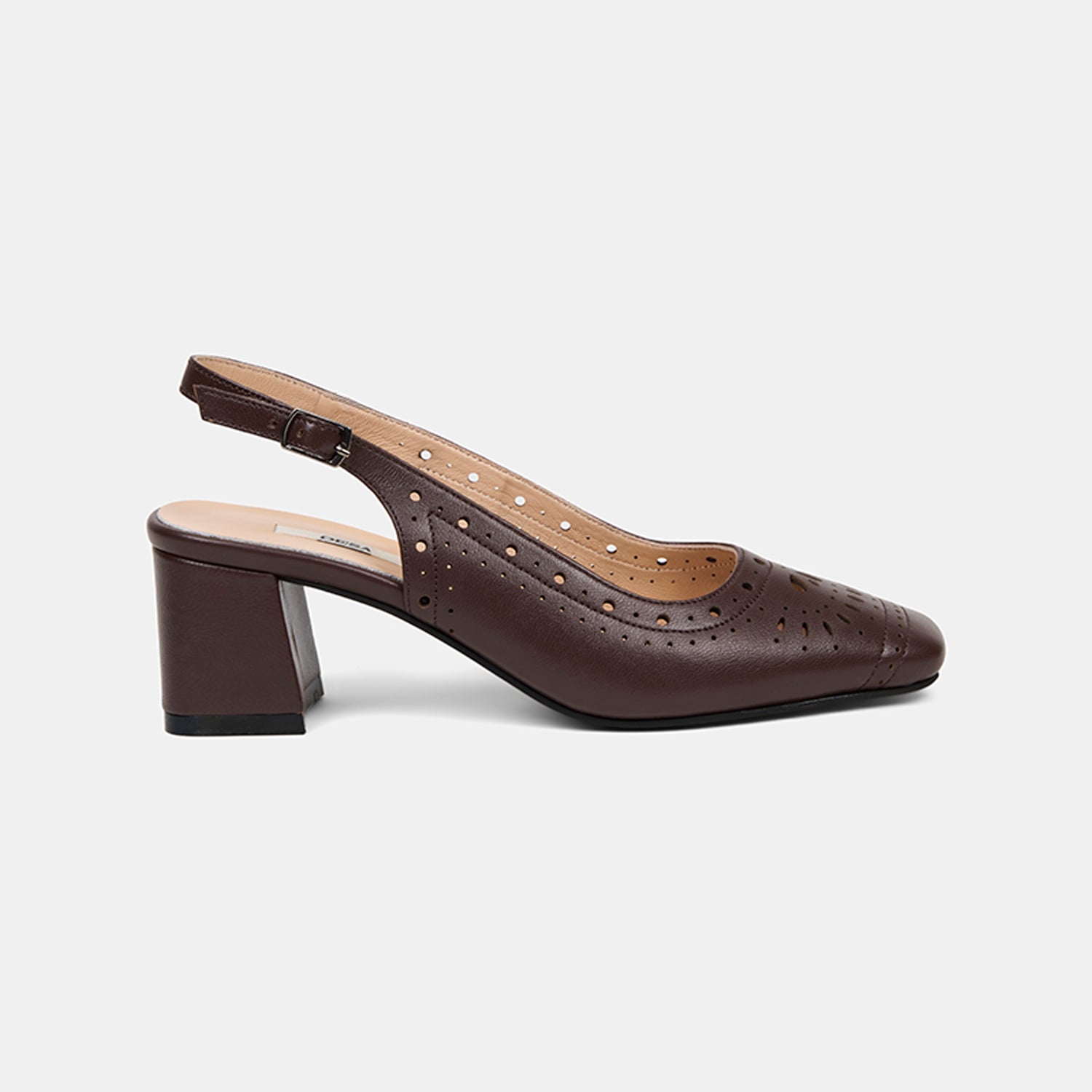 Kare burun formu modern bir stil oluştururken, arkası açık tasarım yazlık kombinlerle uyumlu bir kullanım sunar.