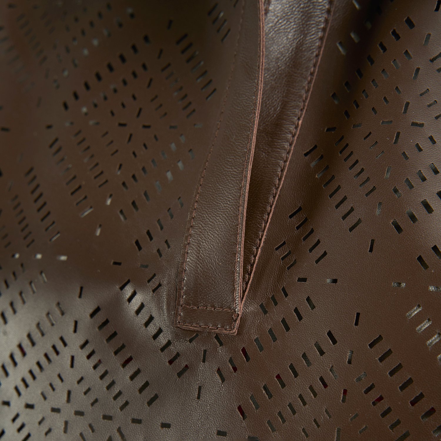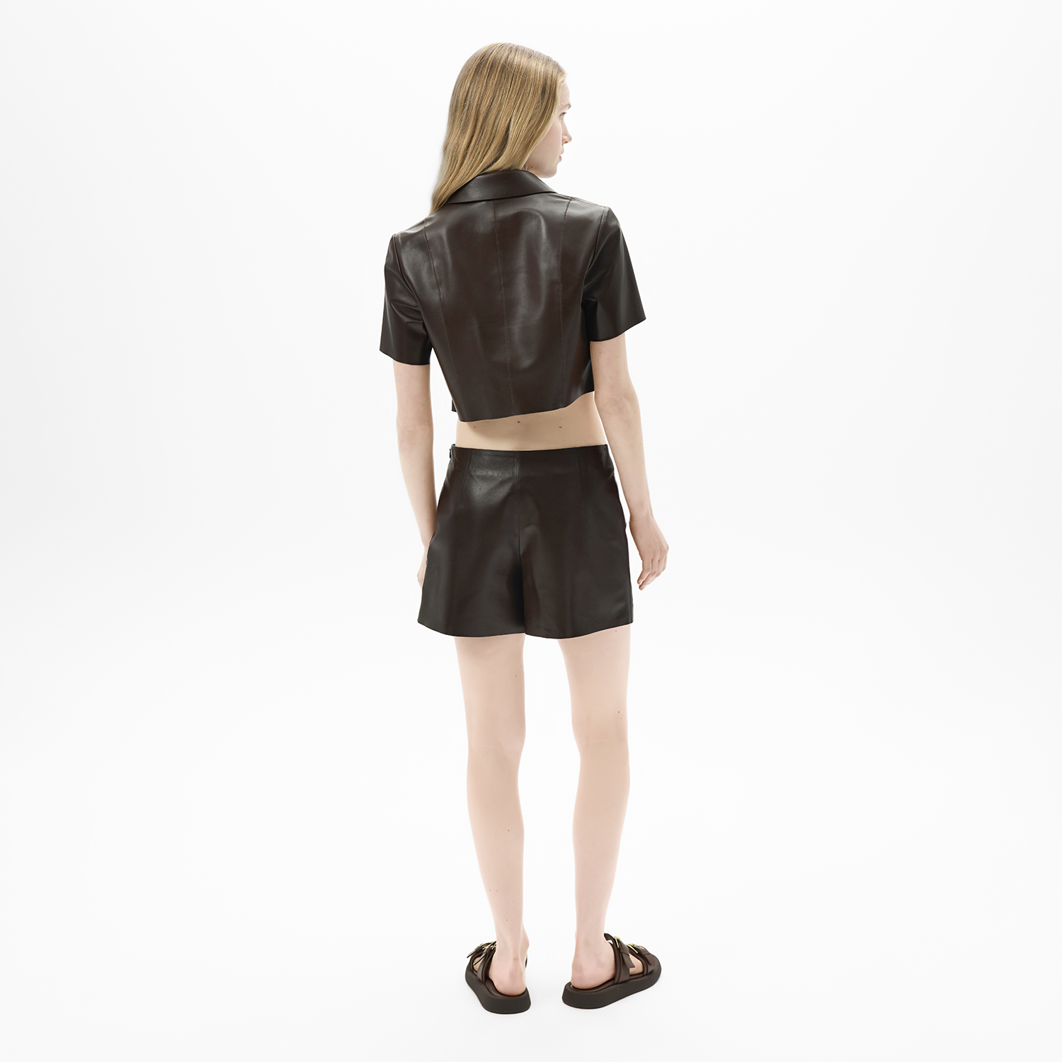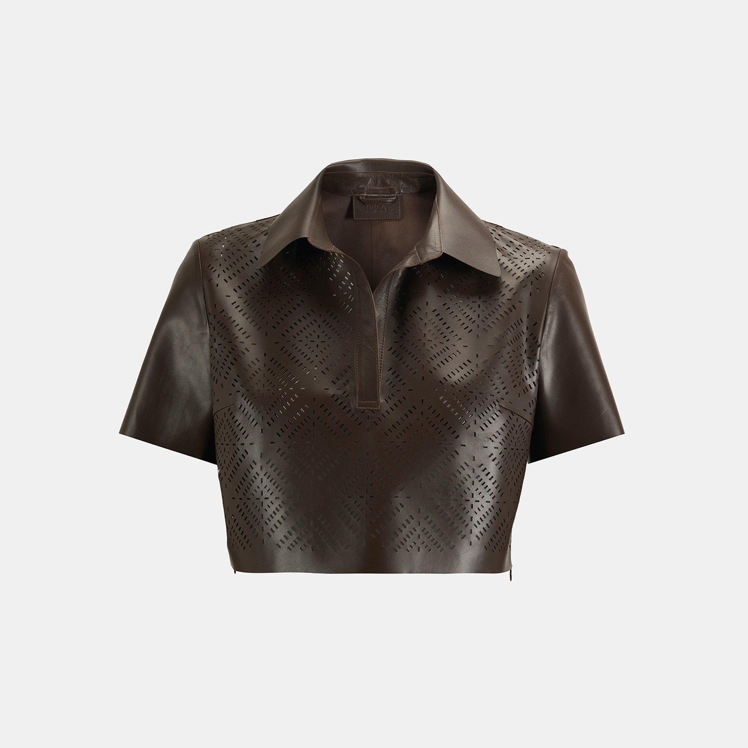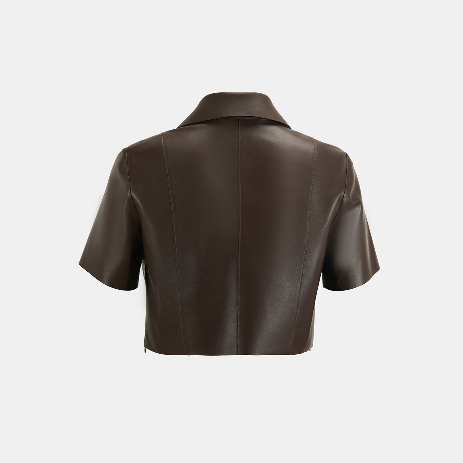 Kadın Kahve Lazer Kesimli Kısa Perforeli Deri Gömlek