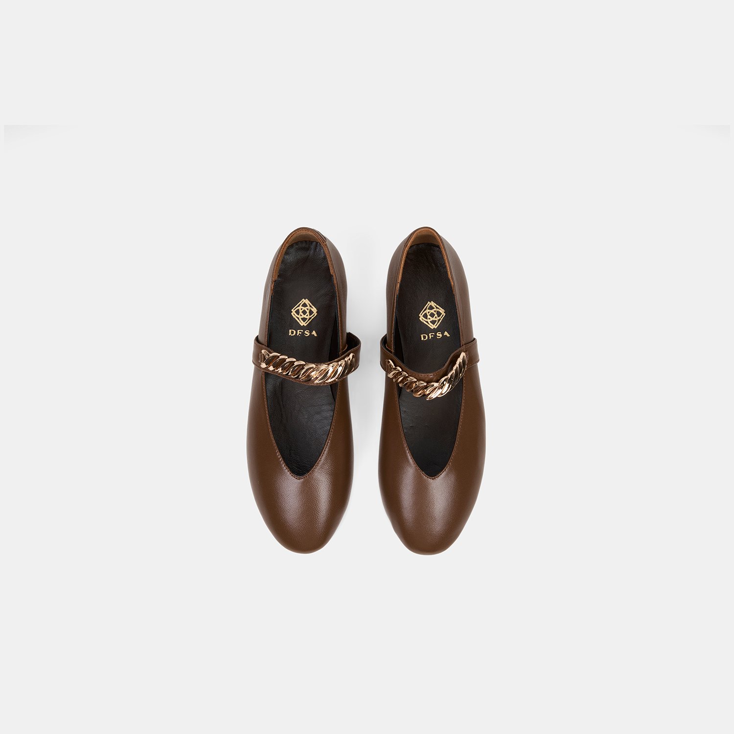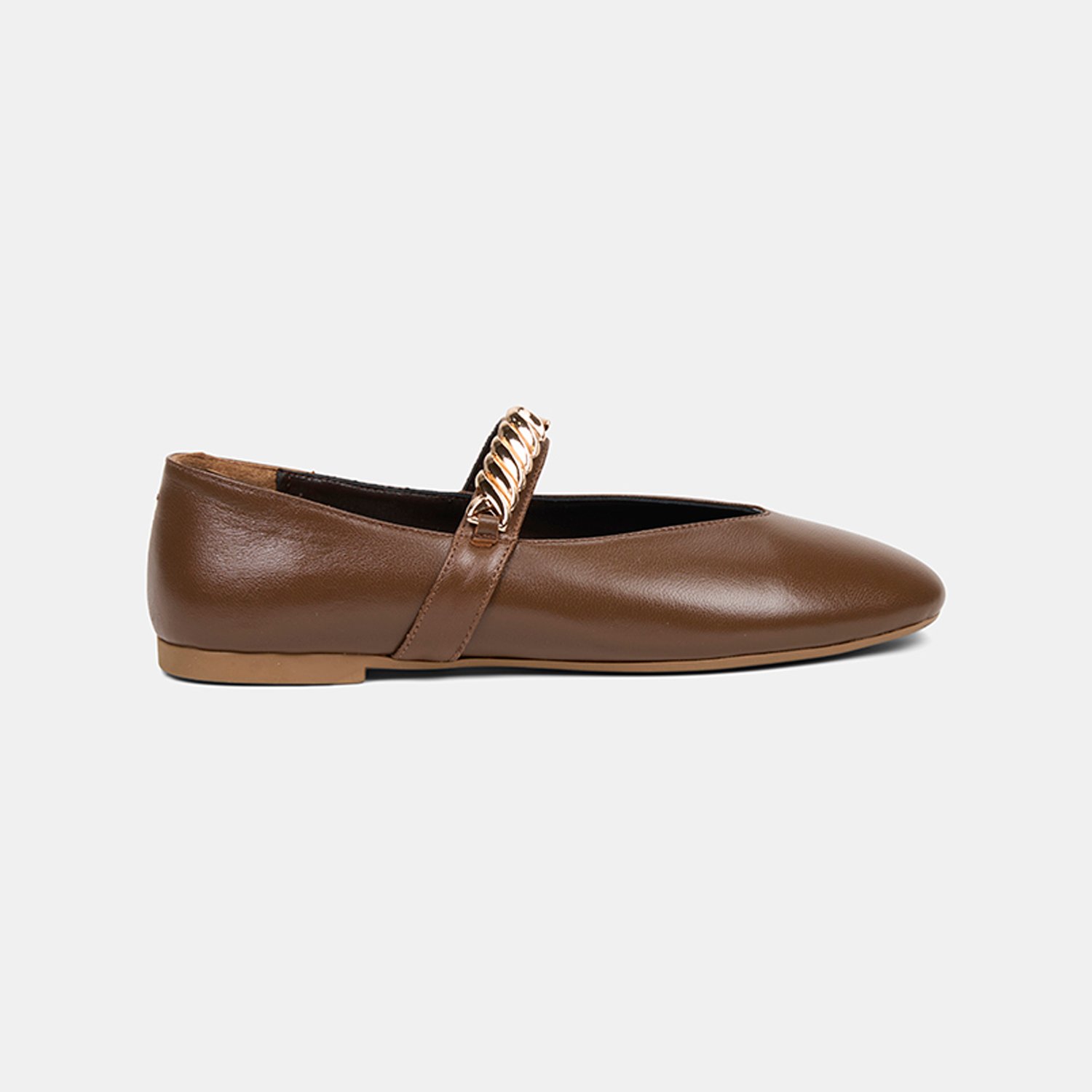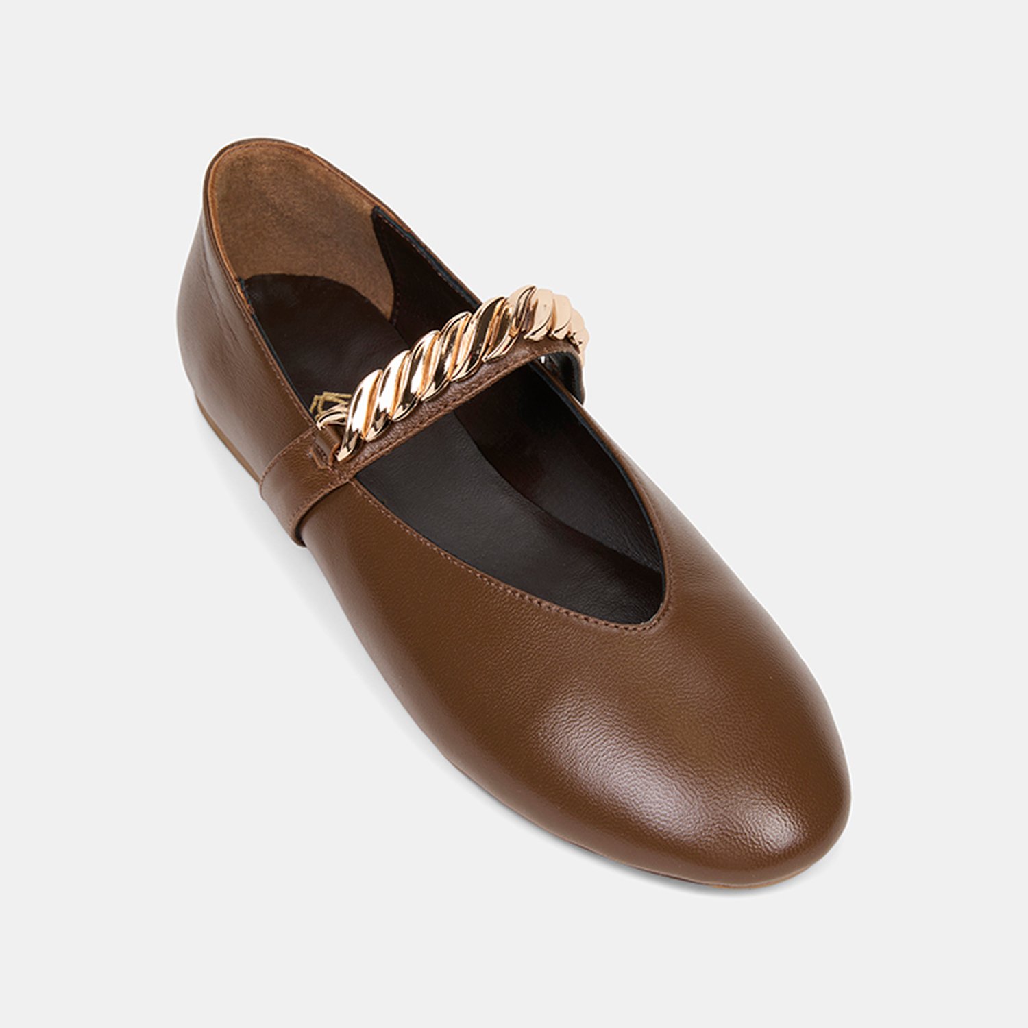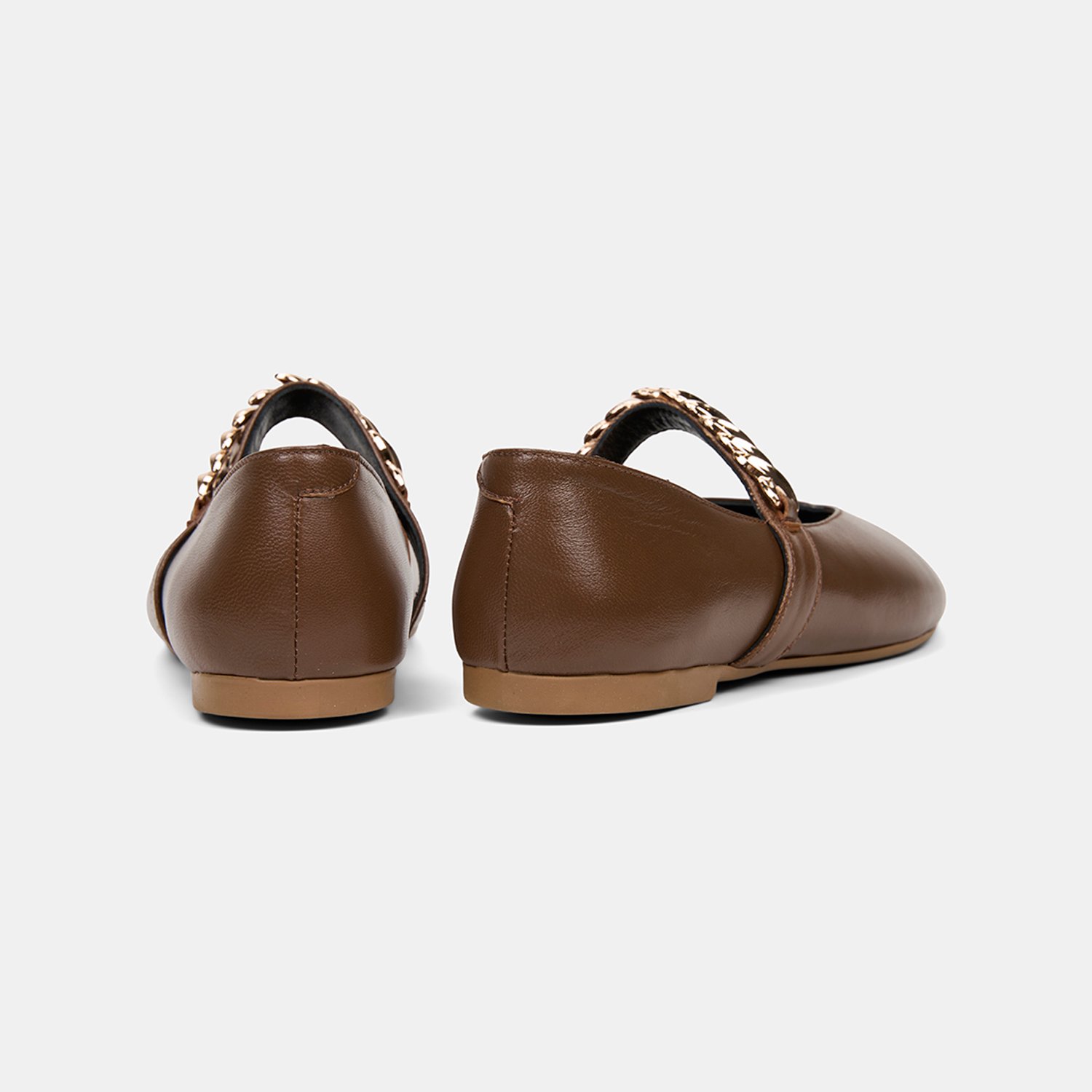 Kadın Kahve Metal Aksesuarlı Mary Jane Deri Babet