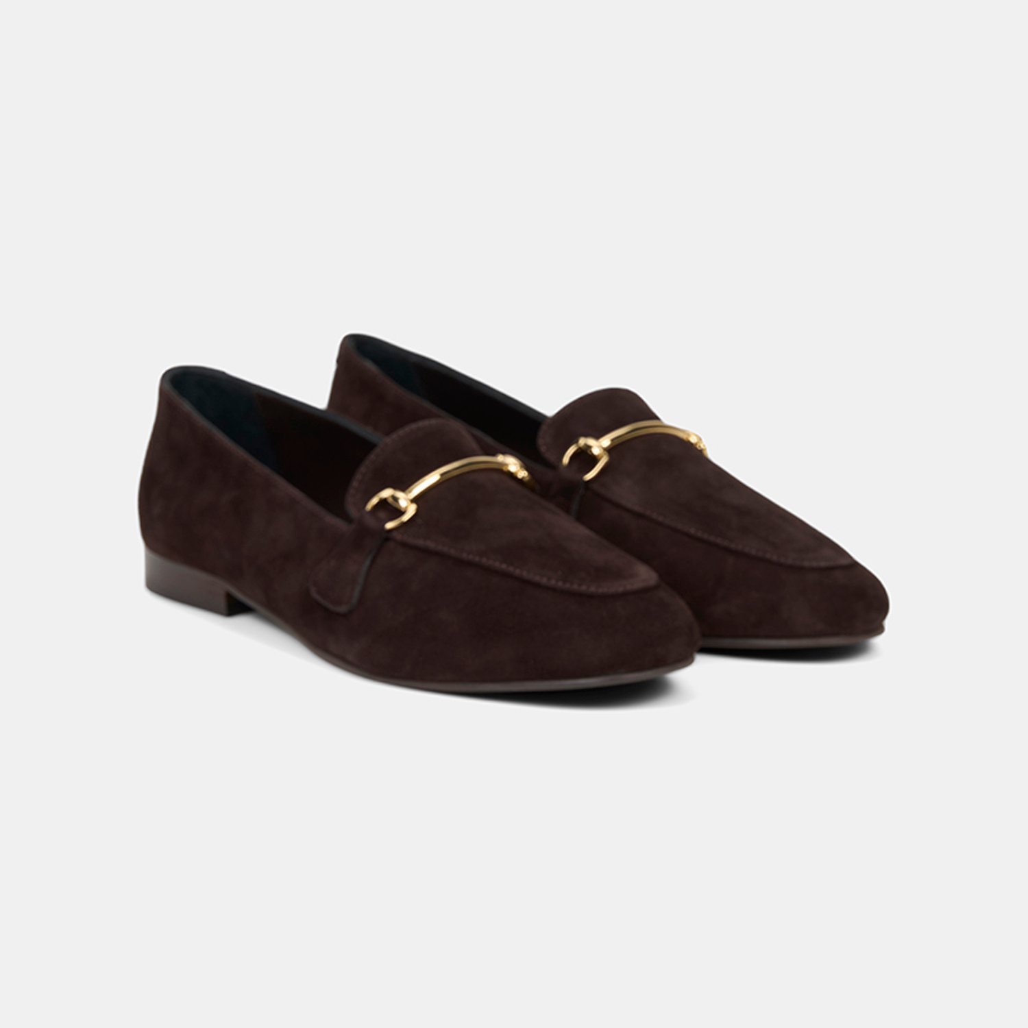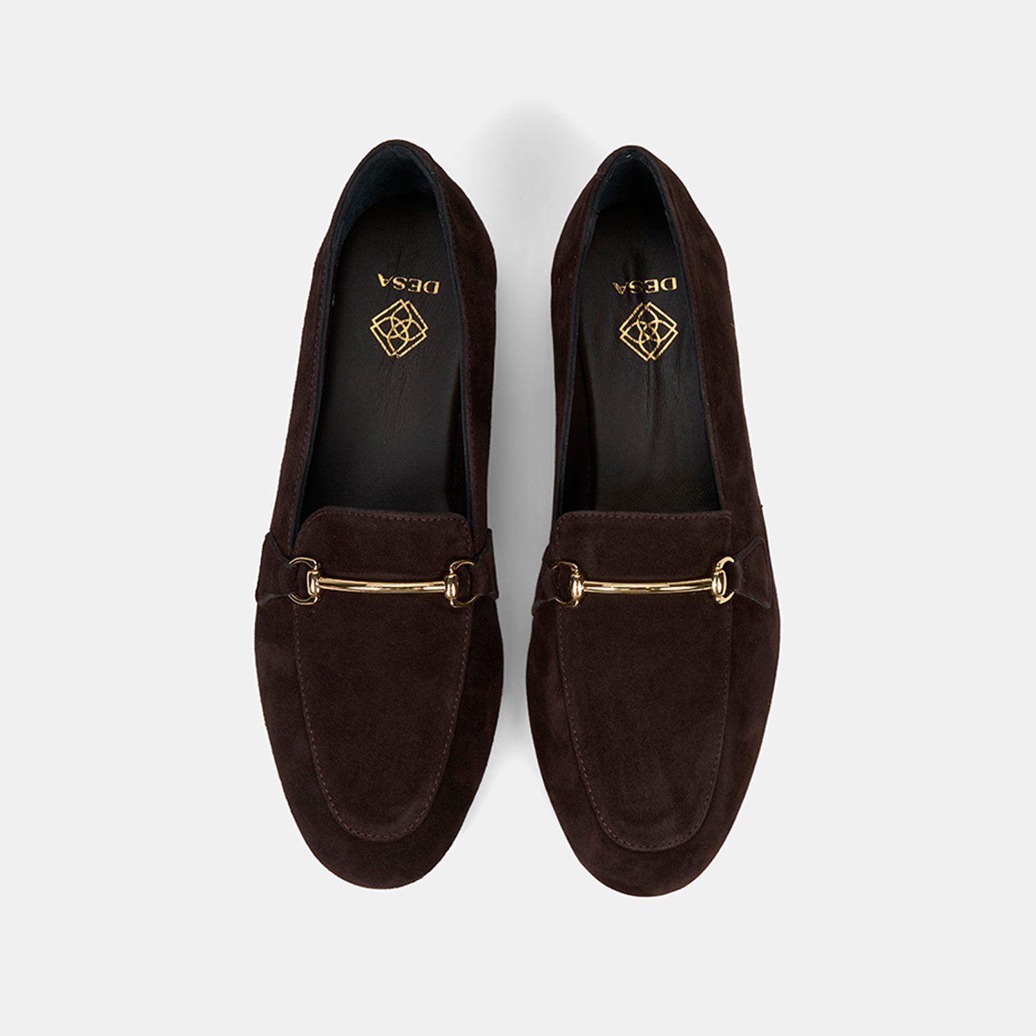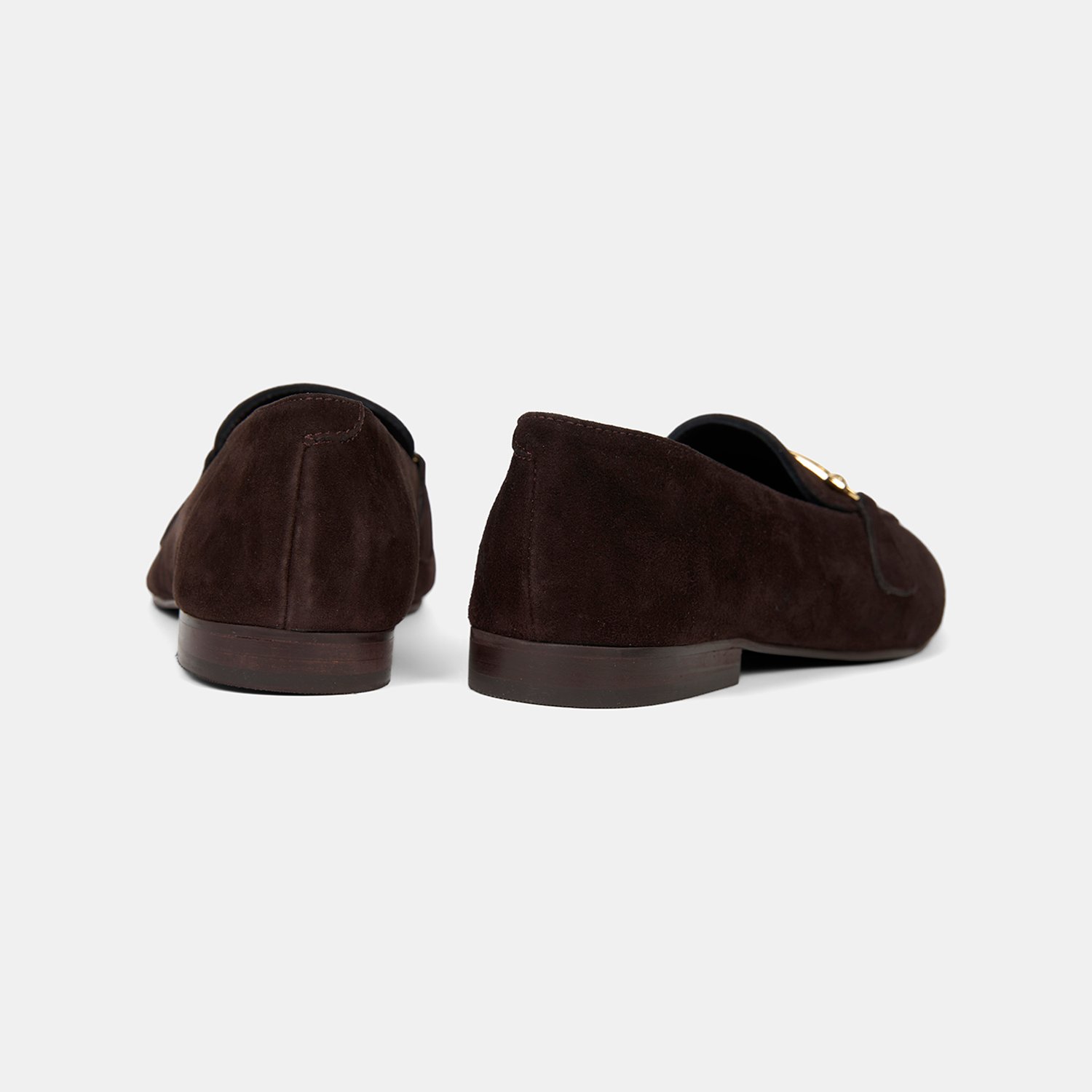 Kadın Kahve Metal Gold Tokalı Süet Deri Loafer