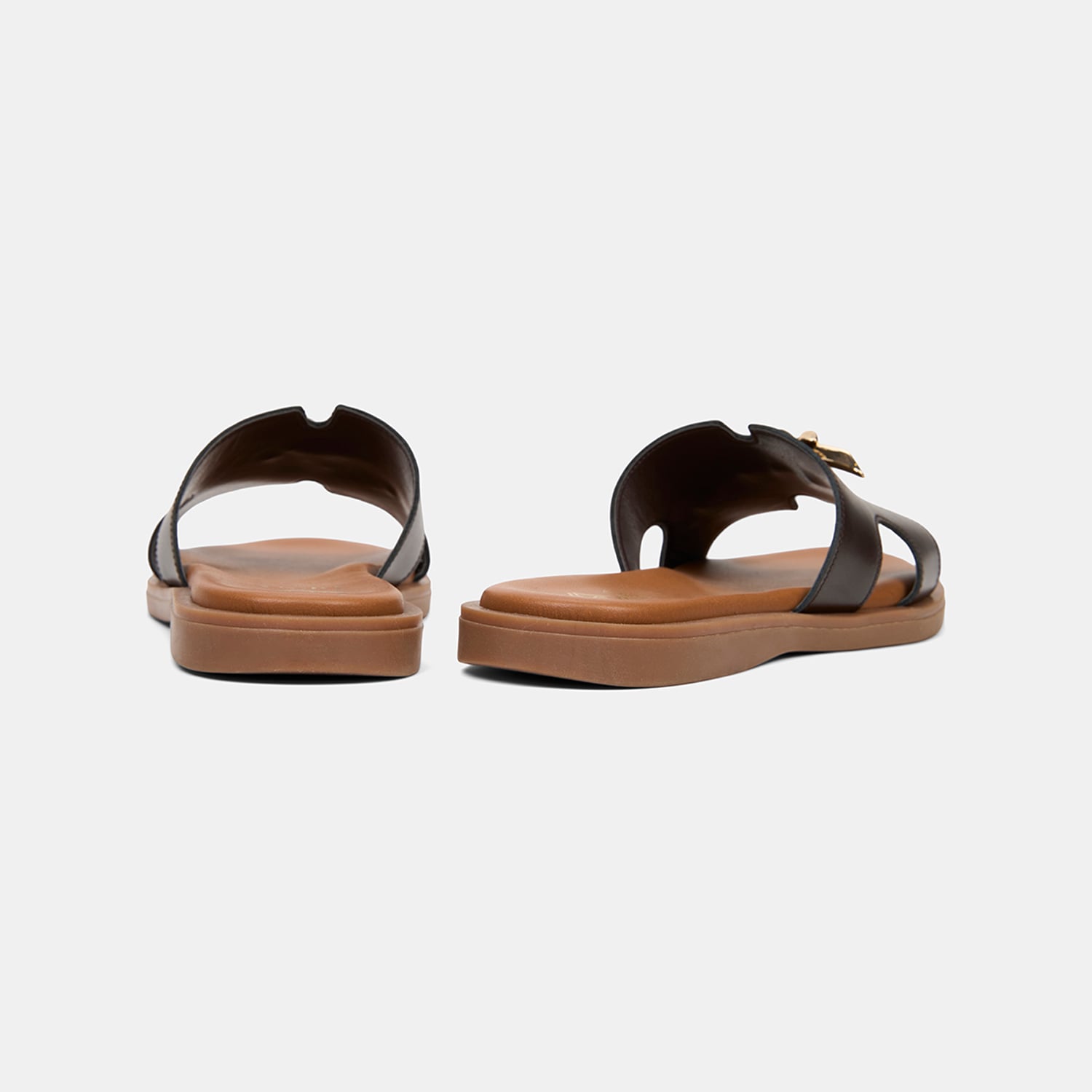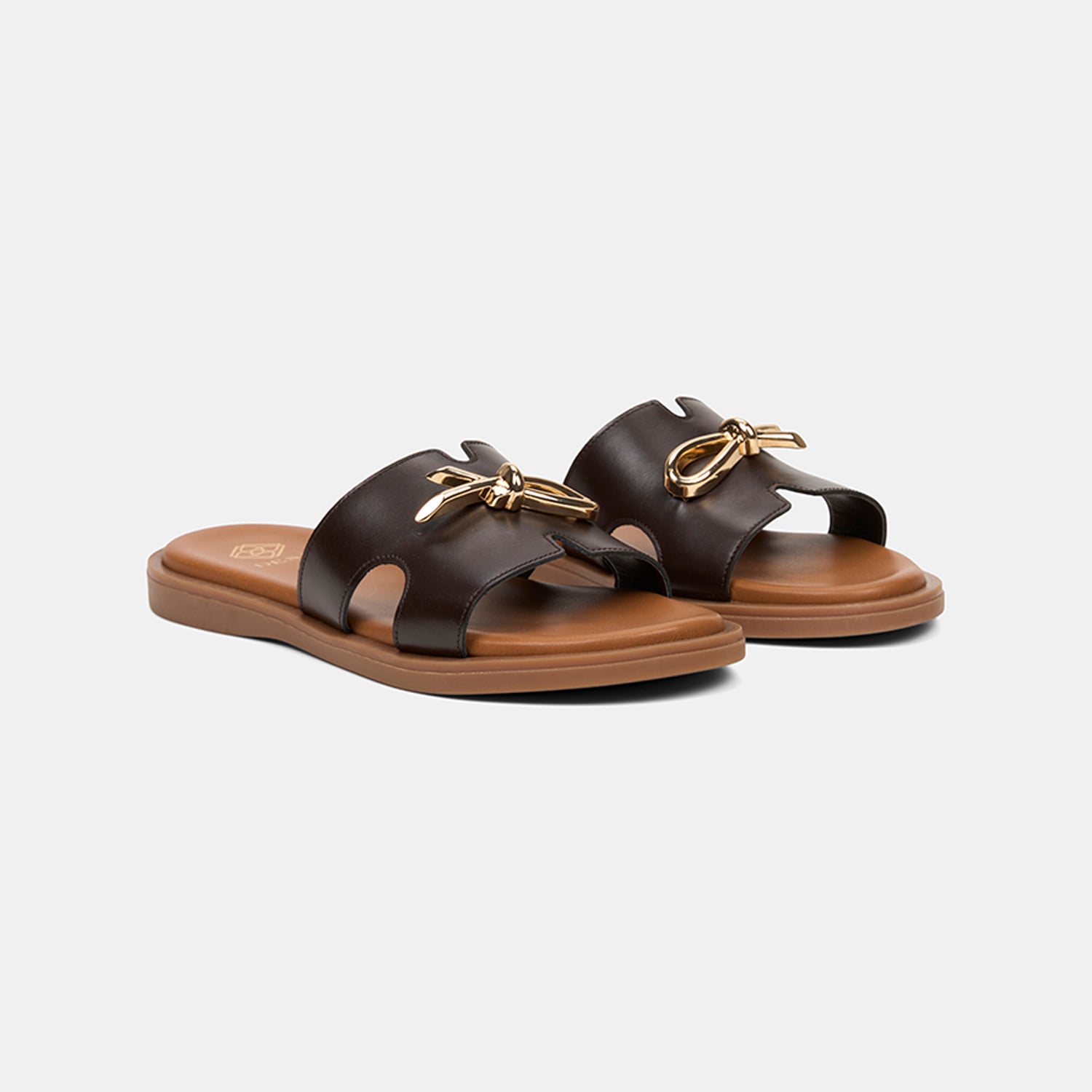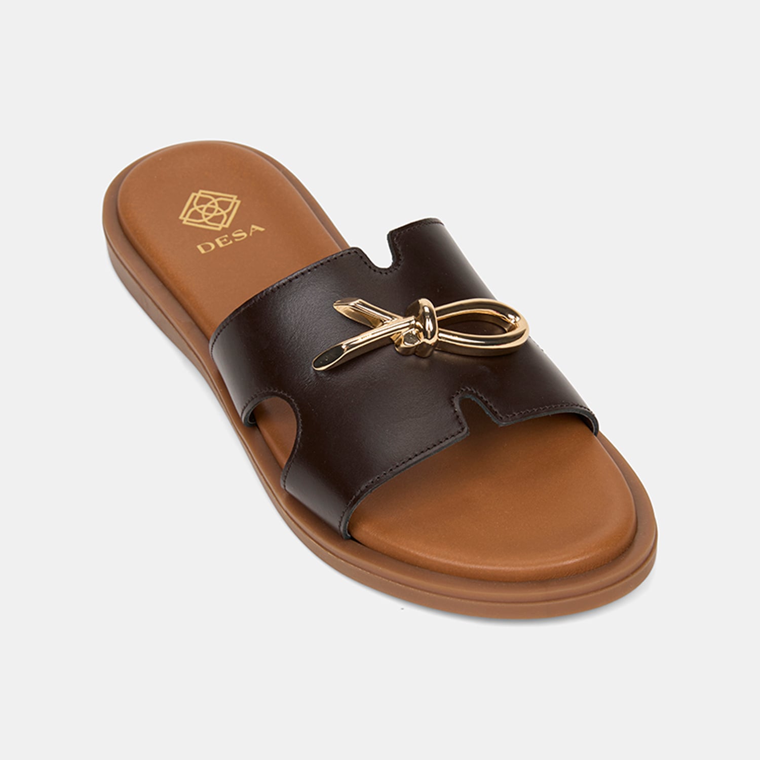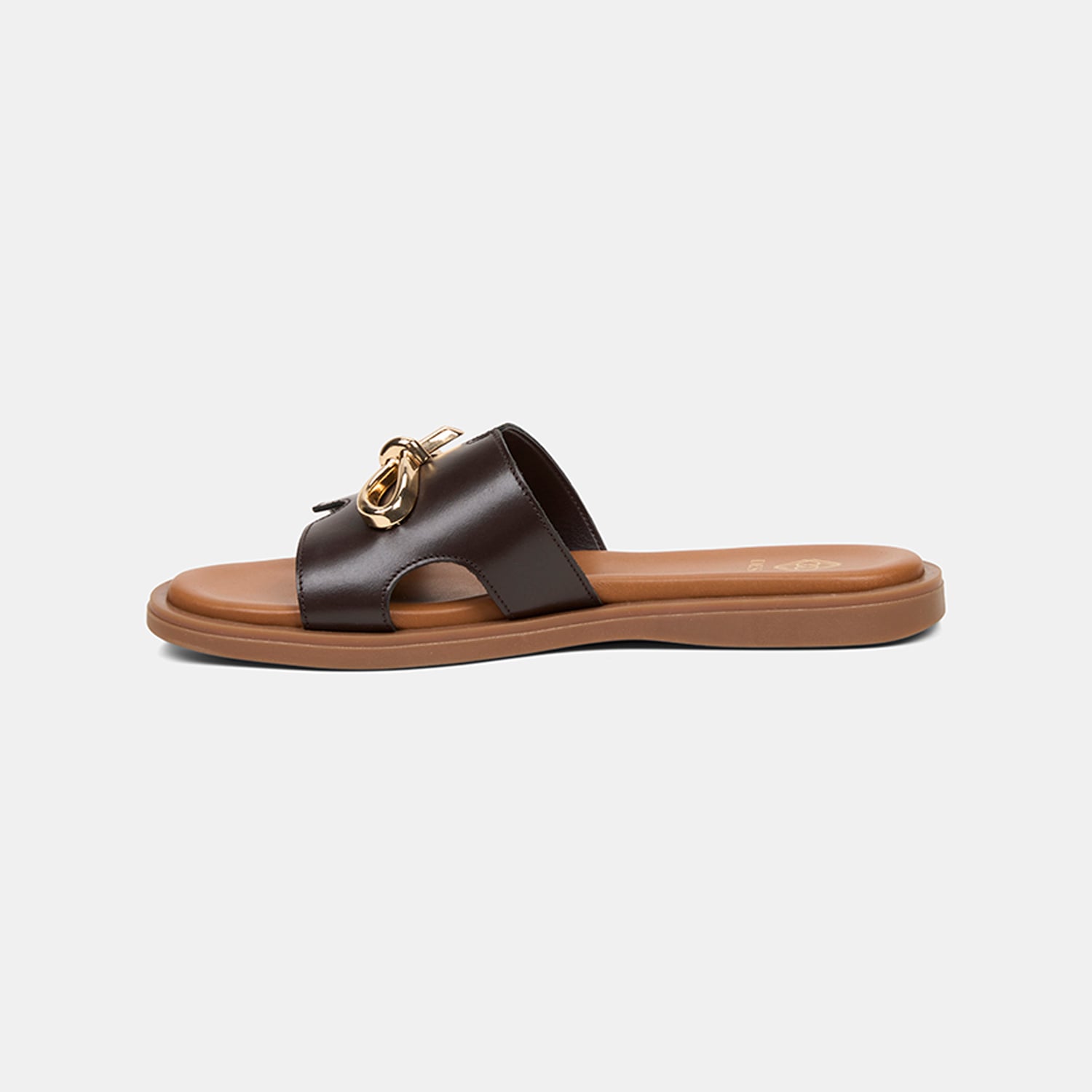Kadın Kahve Metal Toka Aksesuarlı Deri Terlik