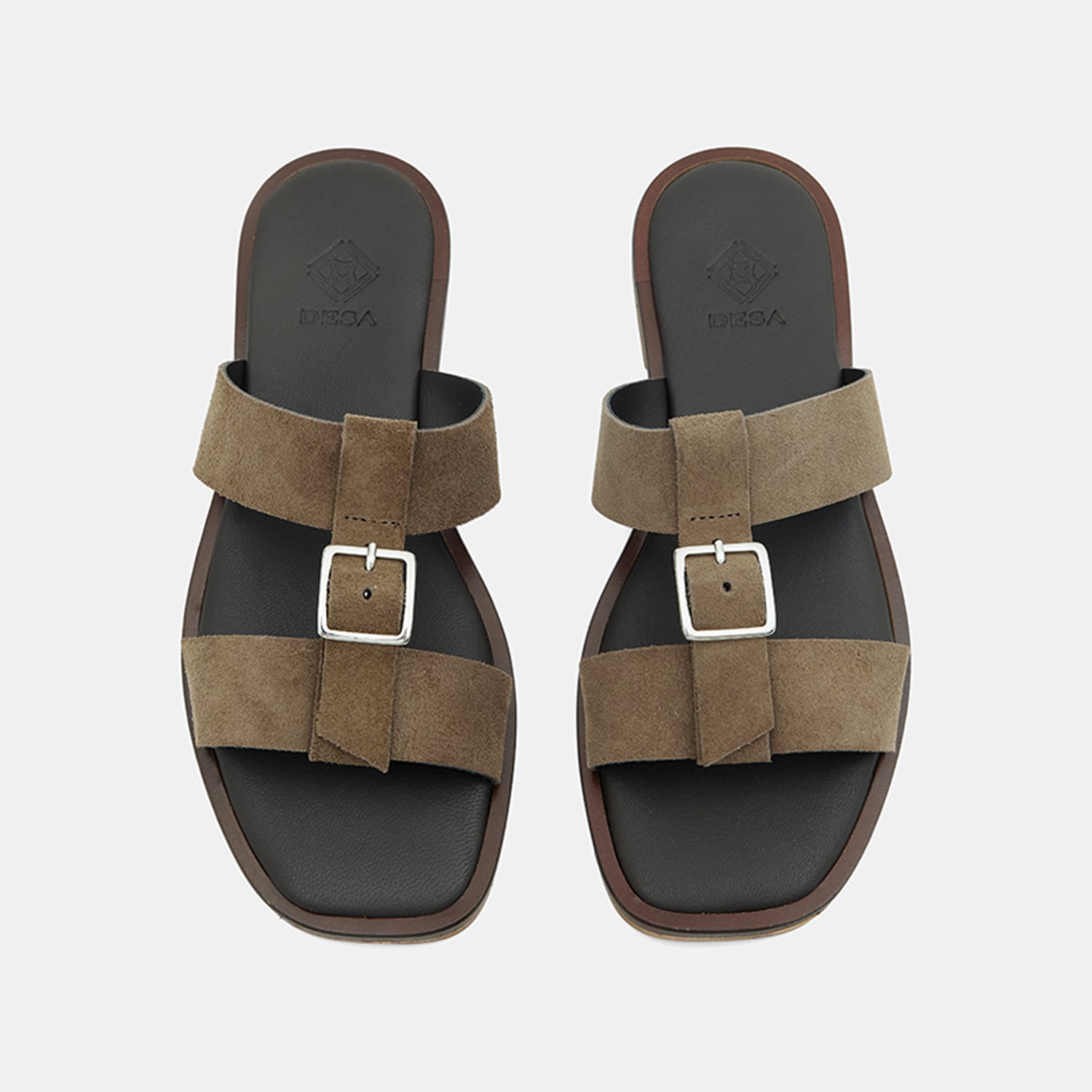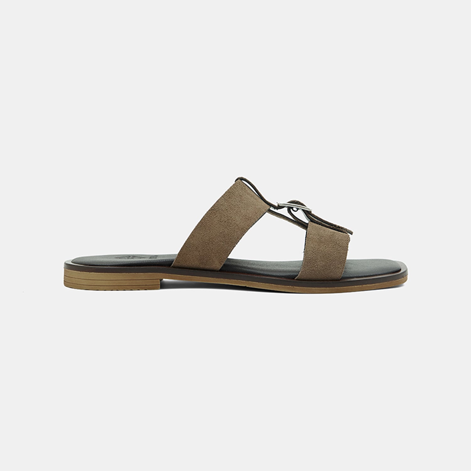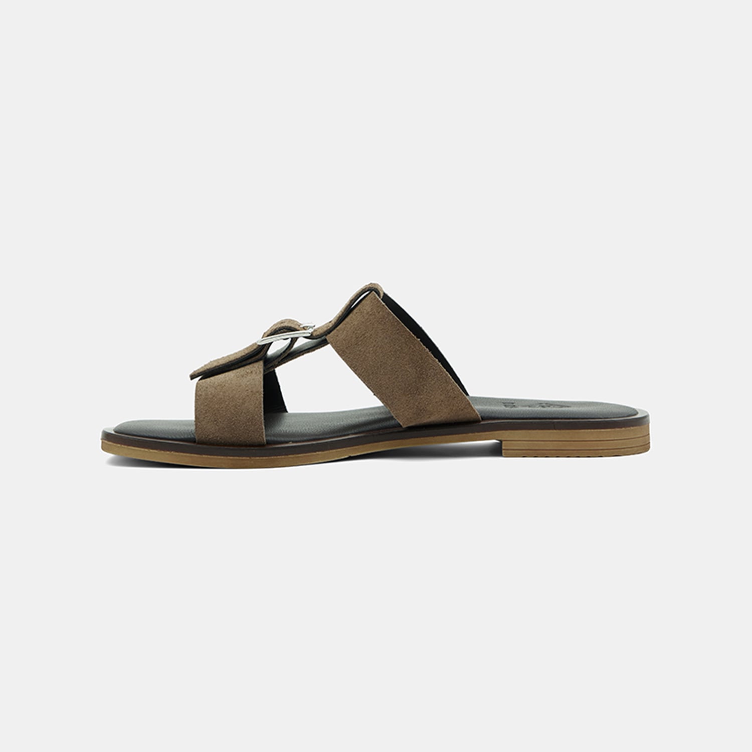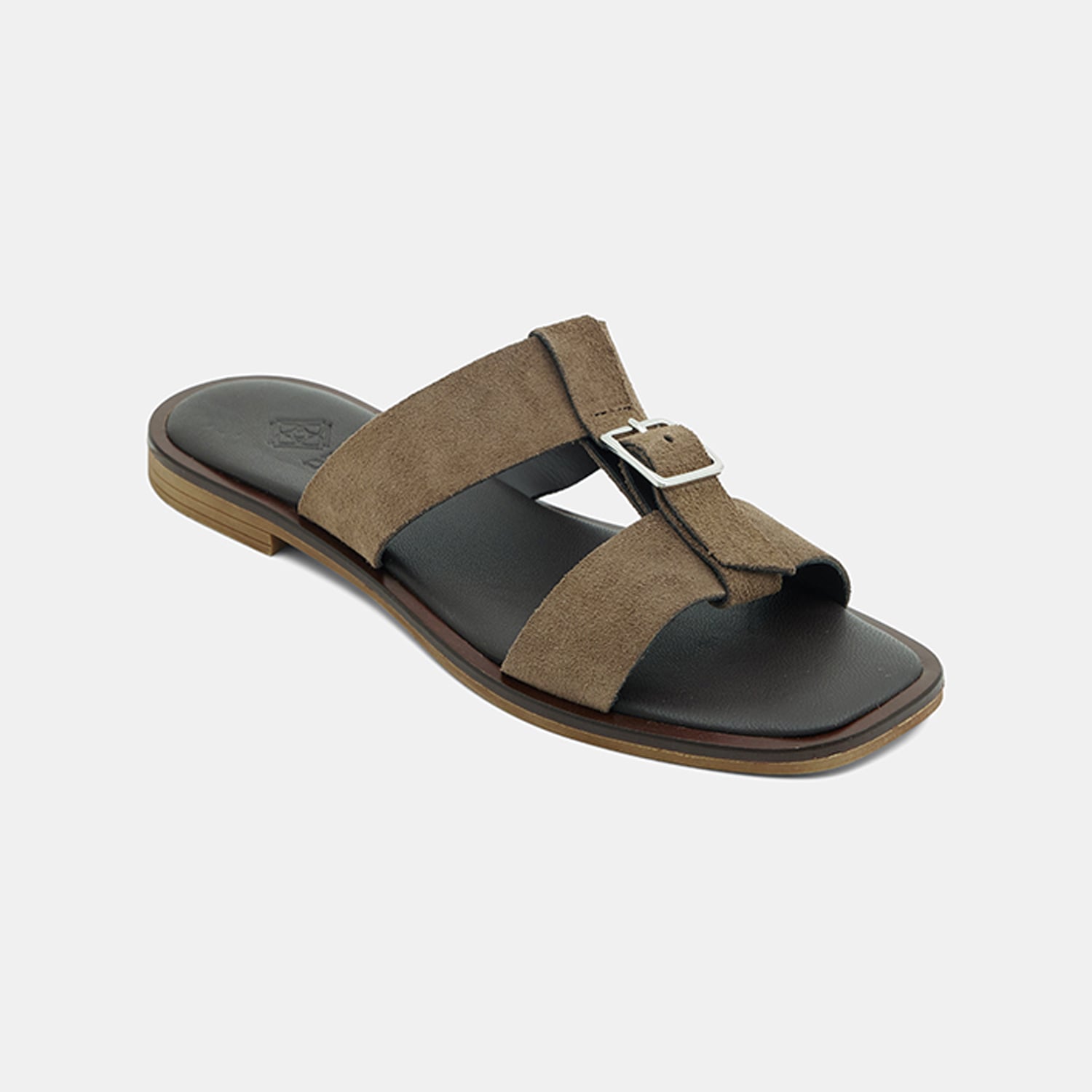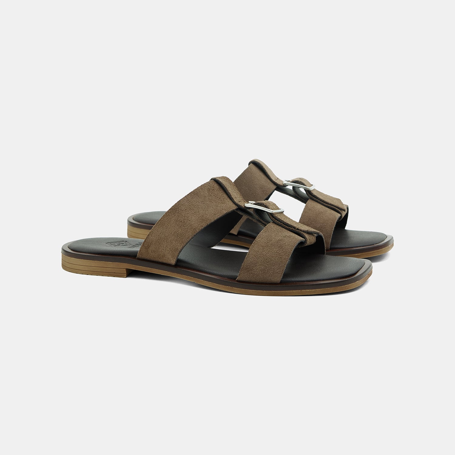 Kadın Kahve Metal Toka Aksesuarlı Süet Terlik