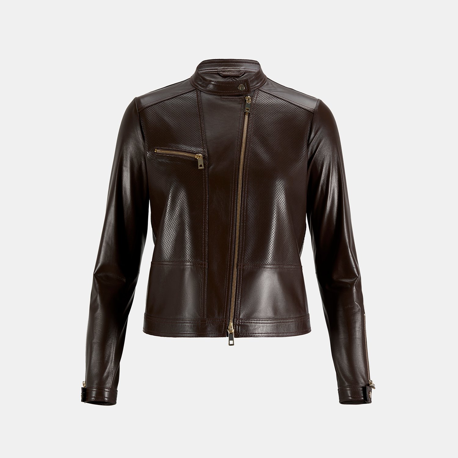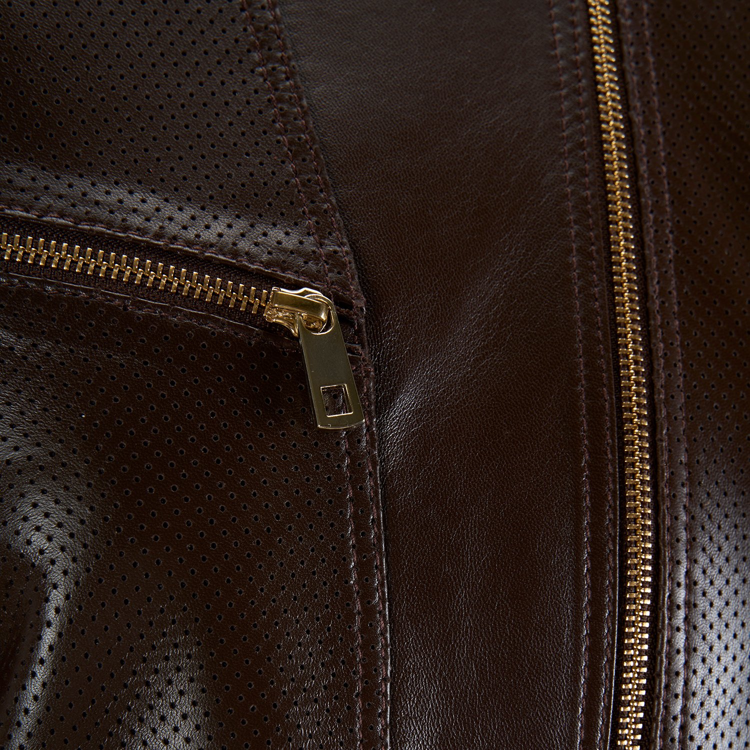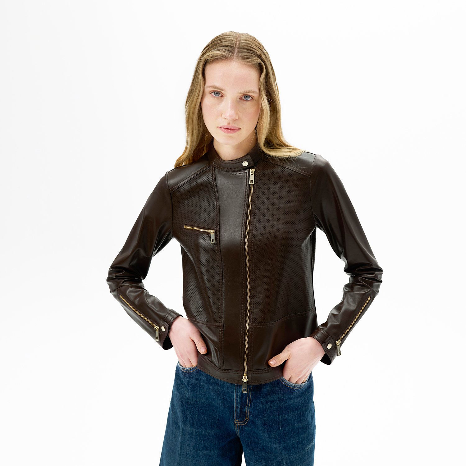Kadın Kahve Perfore Detaylı Deri Ceket