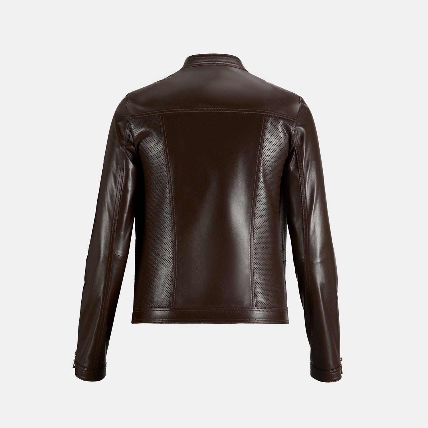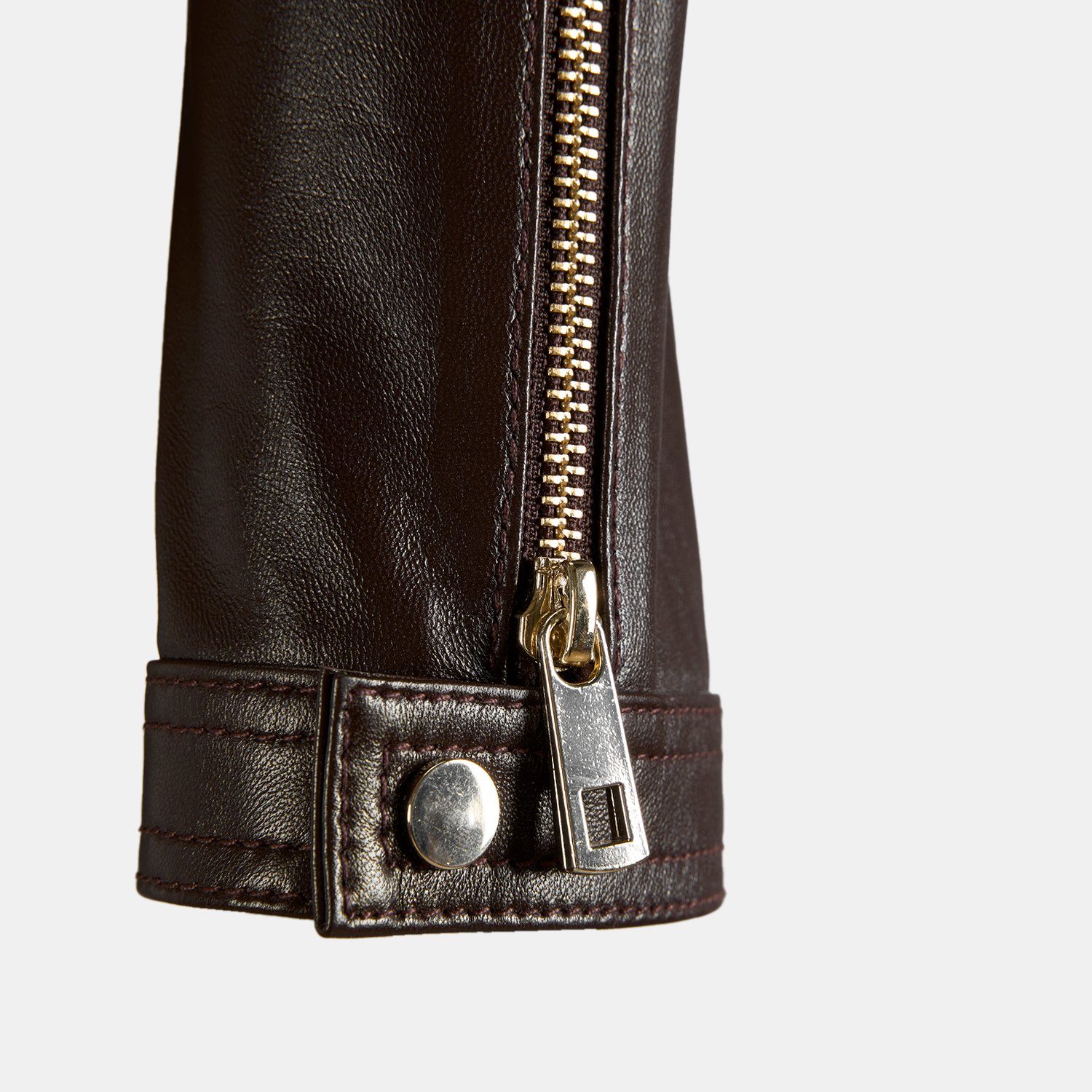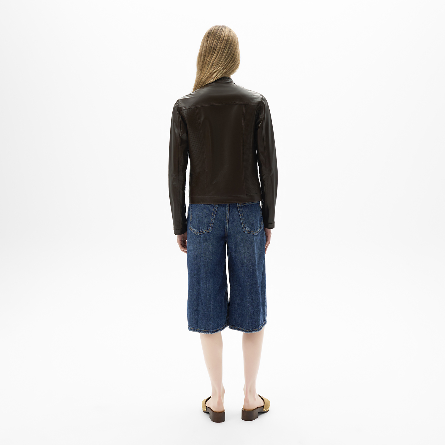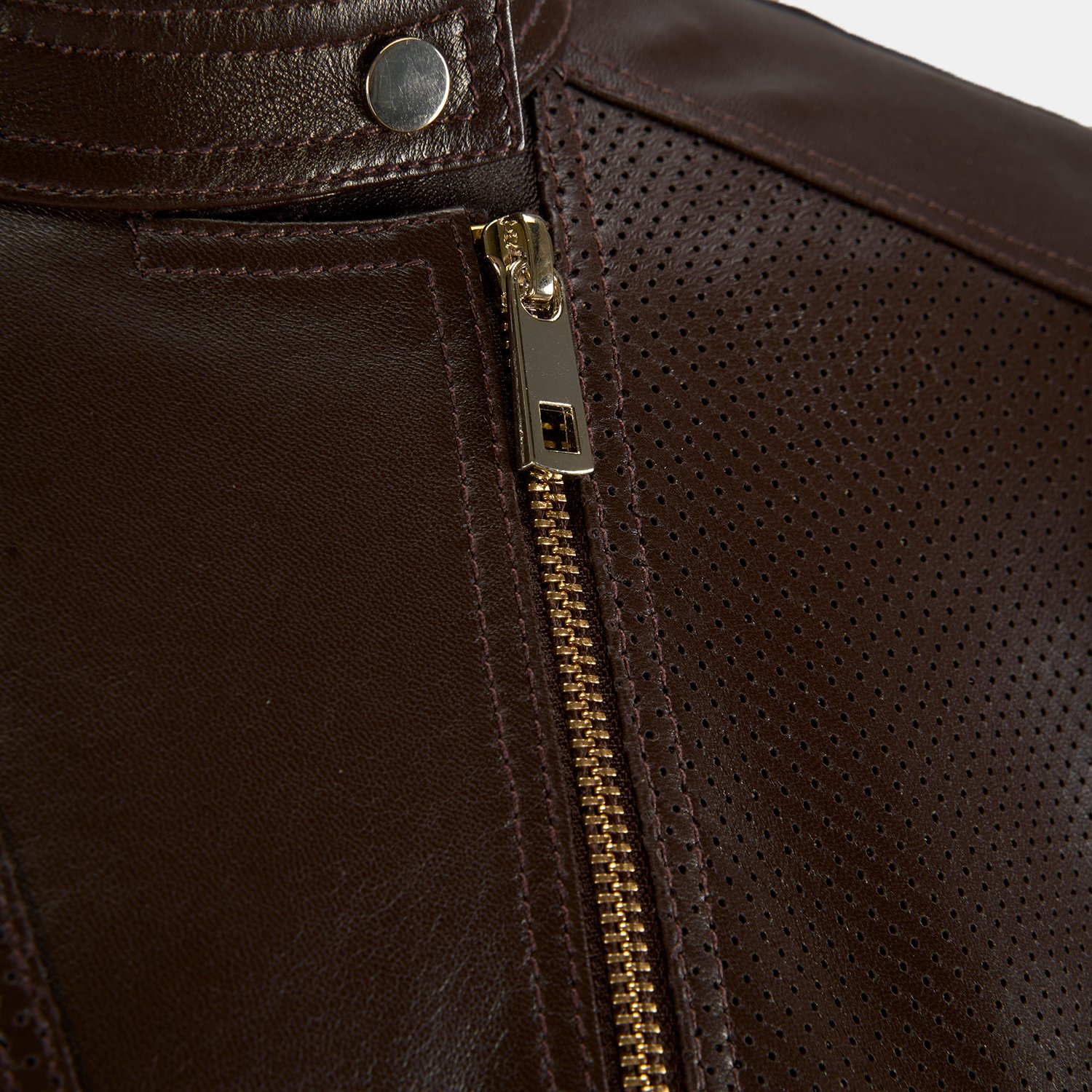 Kadın Kahve Perfore Detaylı Deri Ceket