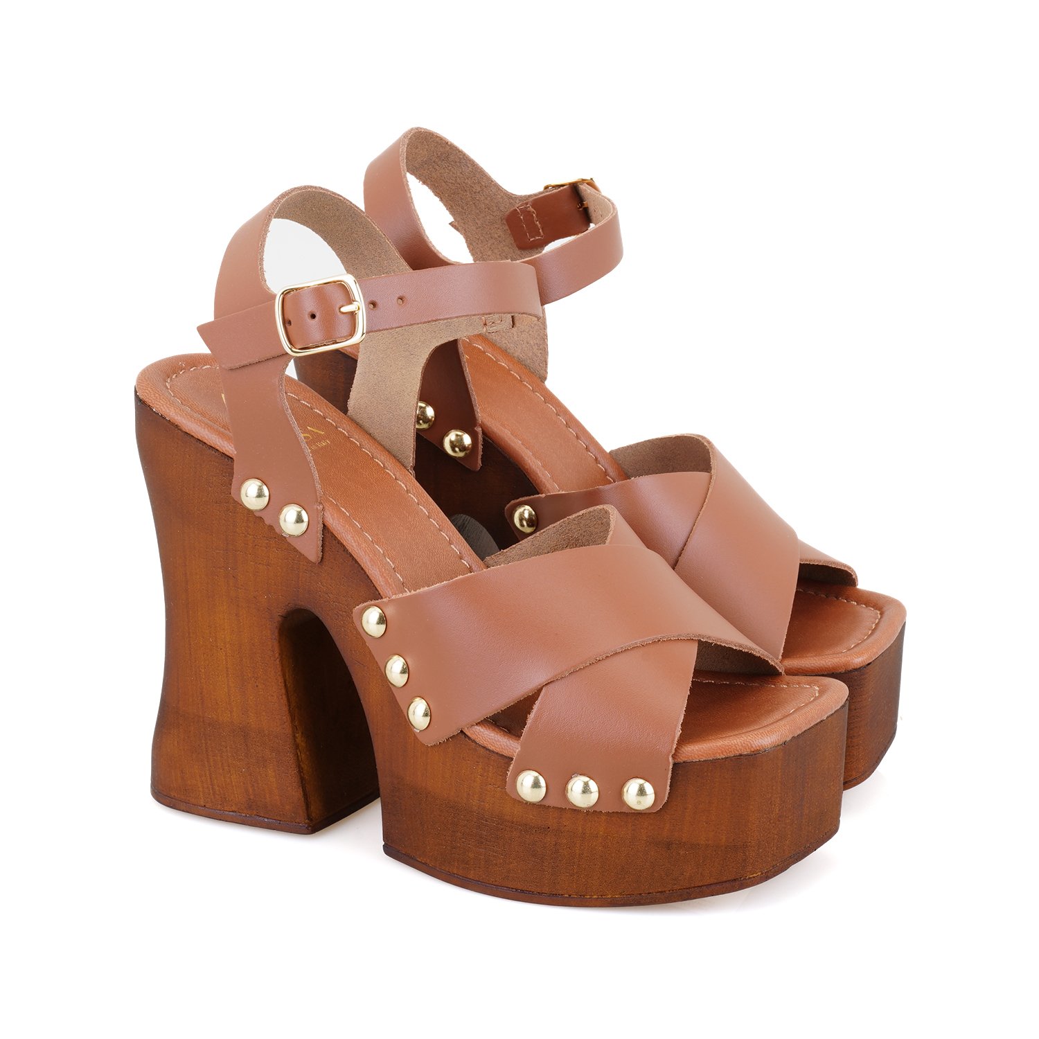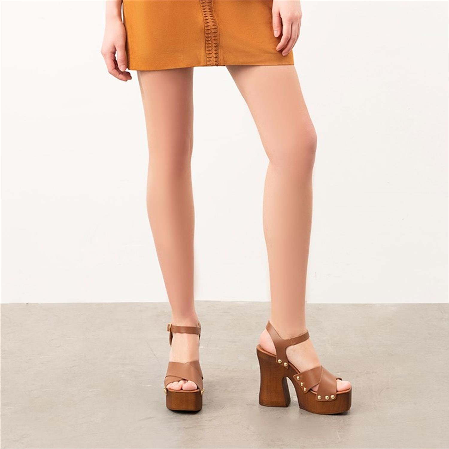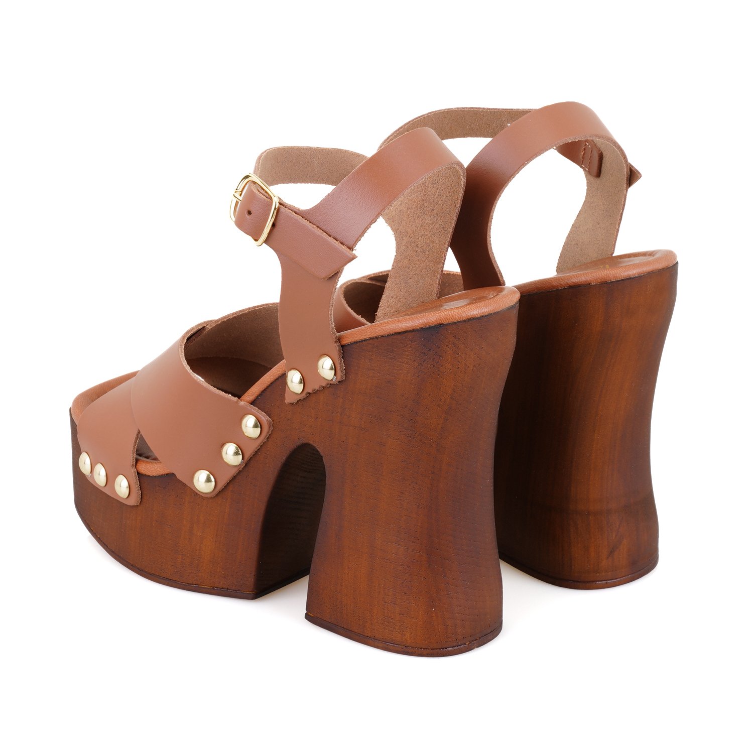 %100 vegetal deri, pu iç tabanlı, astarsız, ayarlanabilir metal tokalı, kadın topuklu sandalet. Topuk yüksekliği 13 cm.