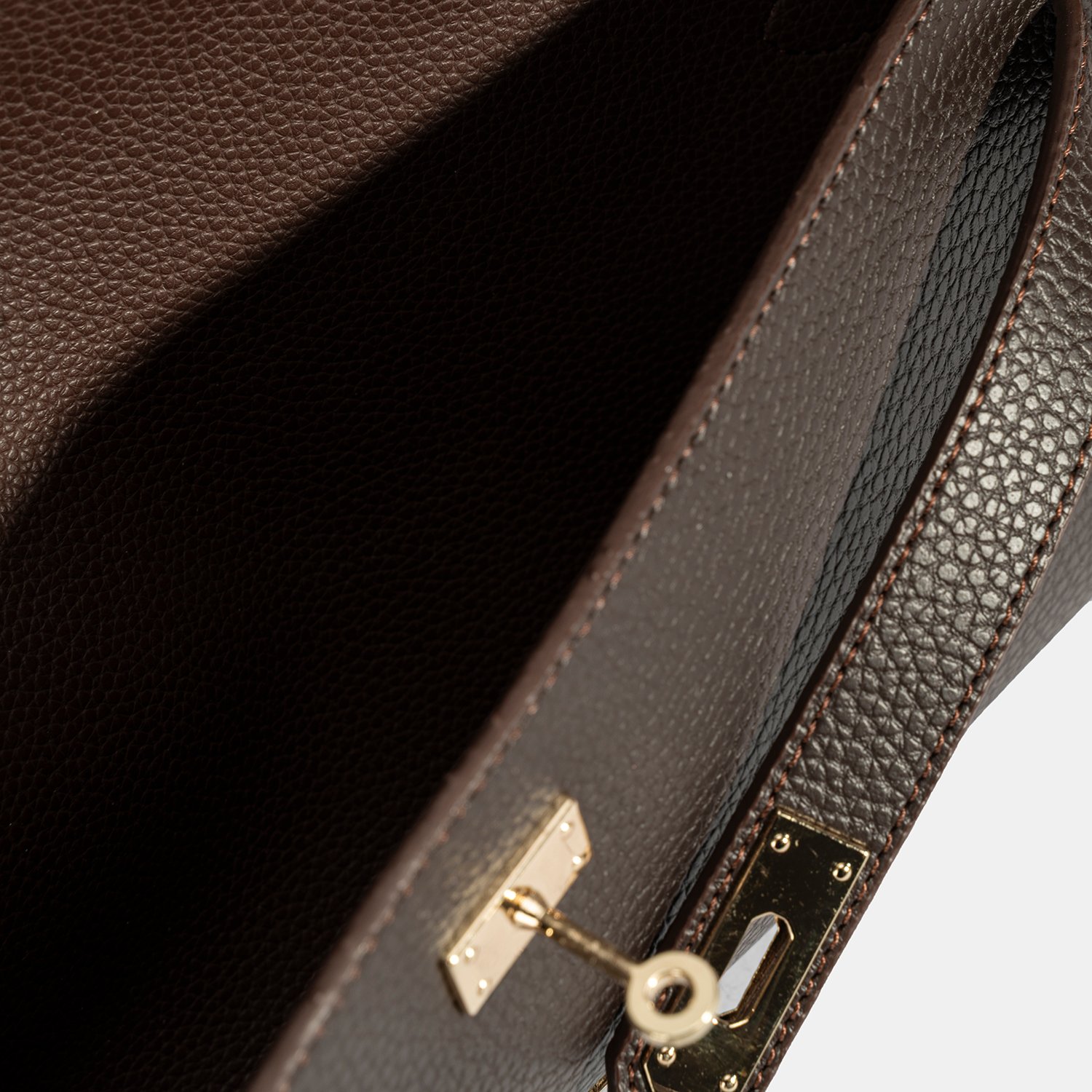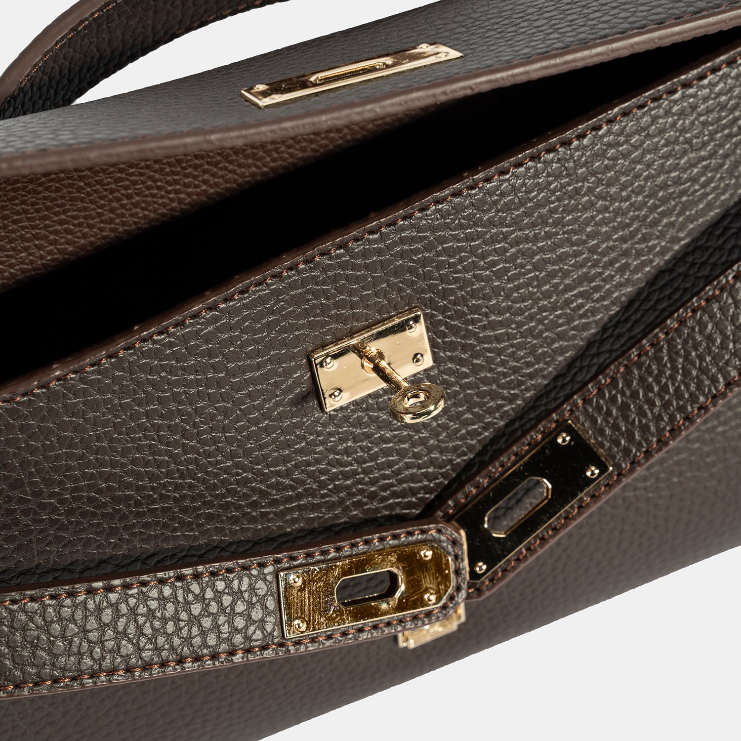 Altın renkli tokalı kapaması ve kısa sap detayıyla hem gündüz hem de akşam kullanımı için idealdir.