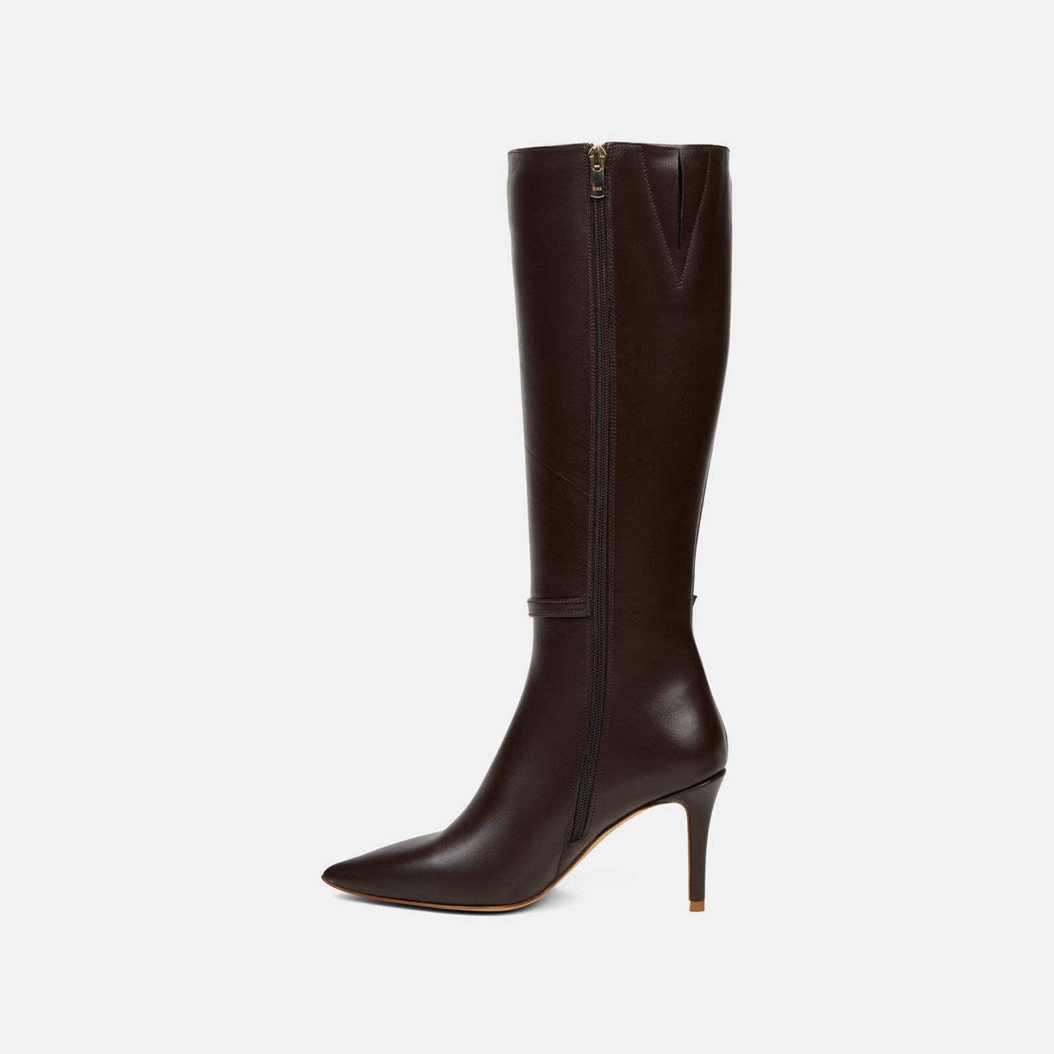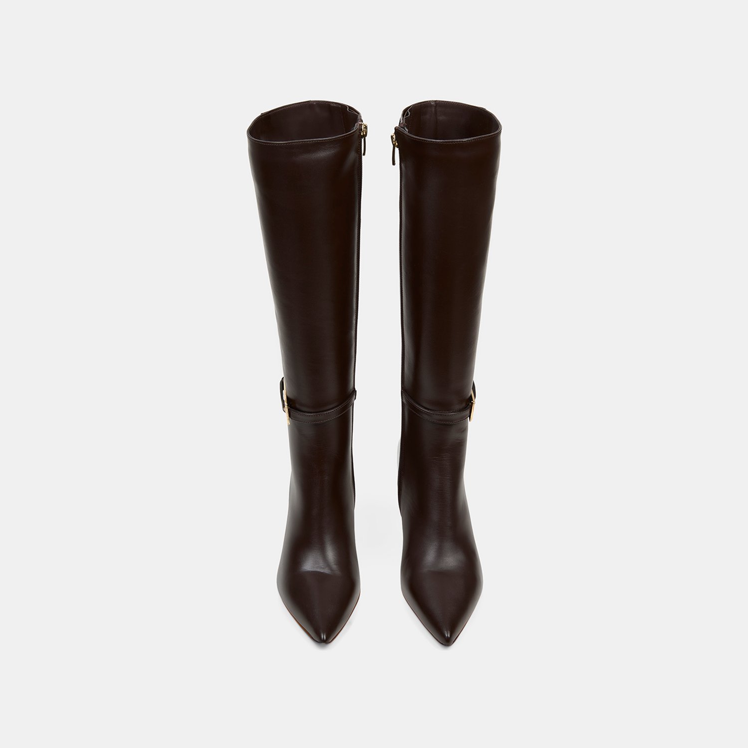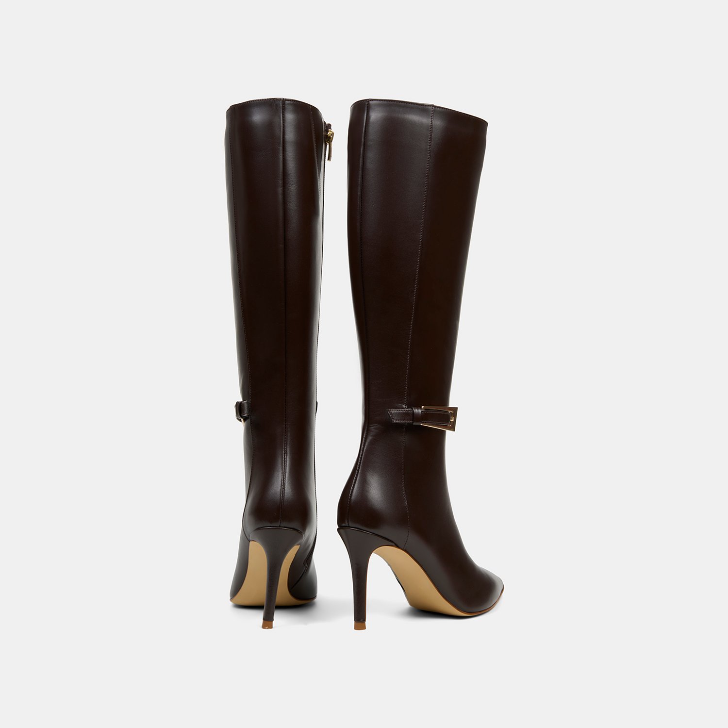 %100 deri, deri iç tabanlı, tekstil astarlı, neolit tabanlı, ayarlanabilir zarif metal toka detaylı, sivri burunlu, yüksek topuklu kadın çizme. Topuk yüksekliği 8.50 cm.