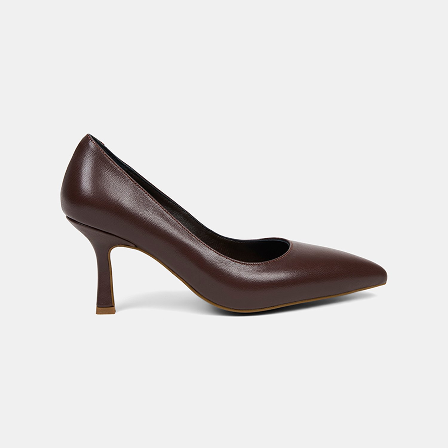 Kadın Kahve Sivri Burunlu Klasik Deri Stiletto