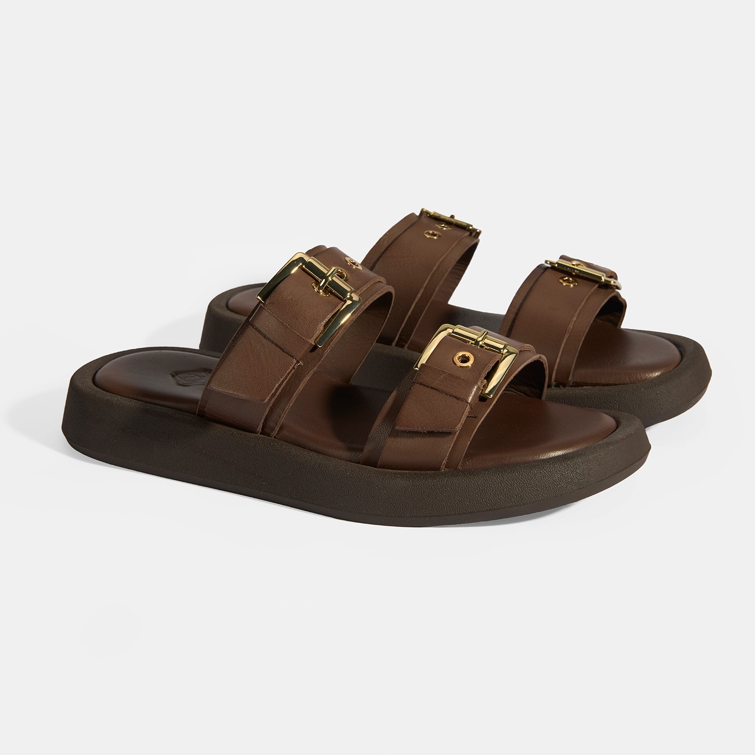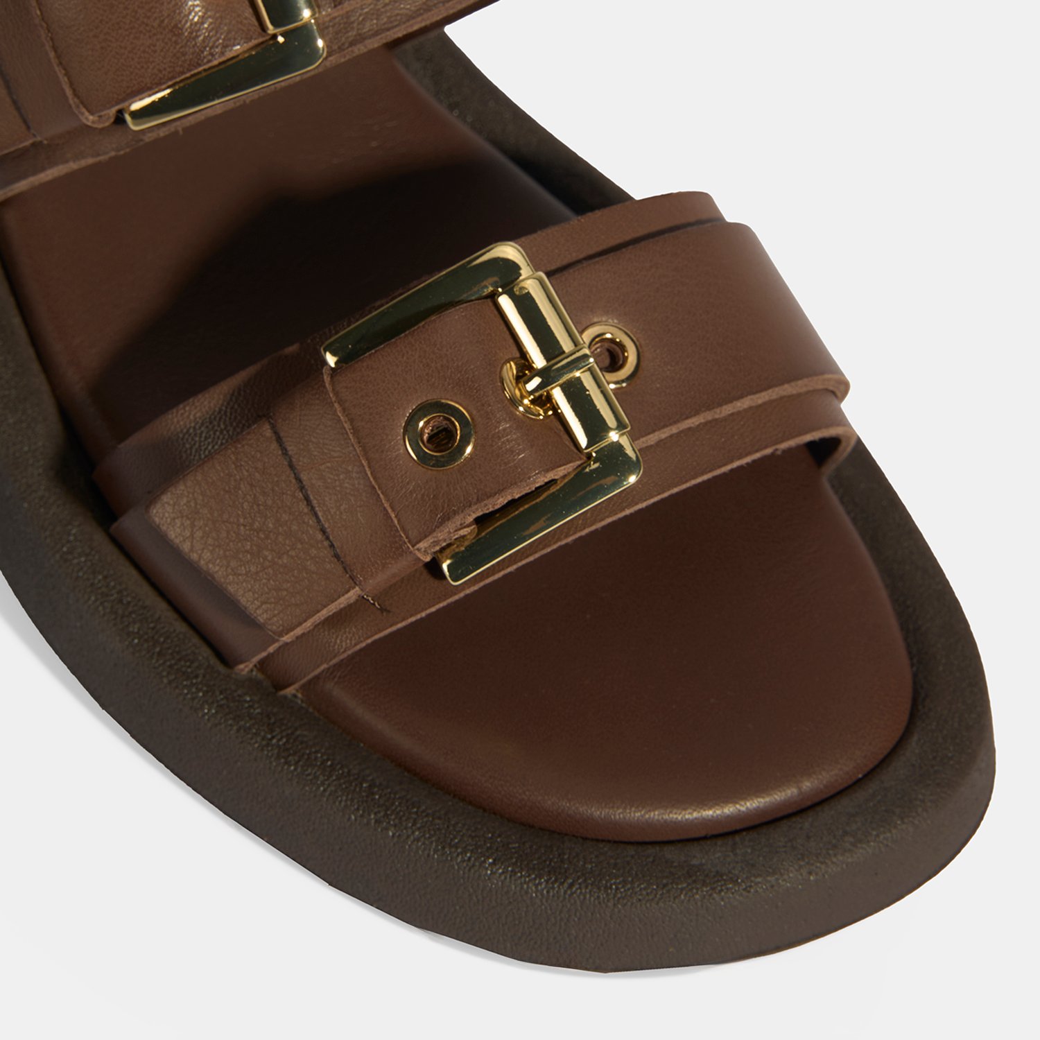 Kadın Kahve Toka Detaylı Deri Terlik