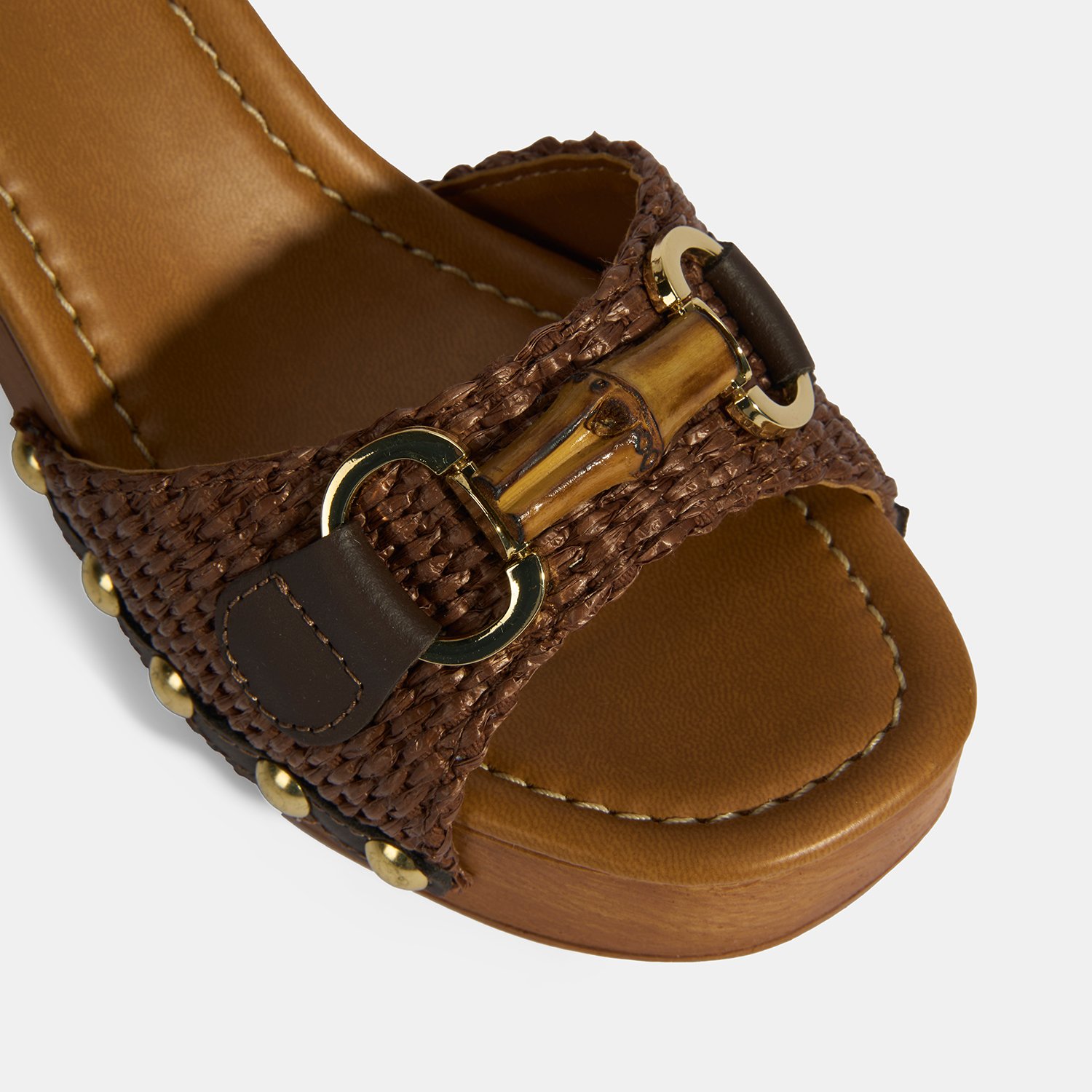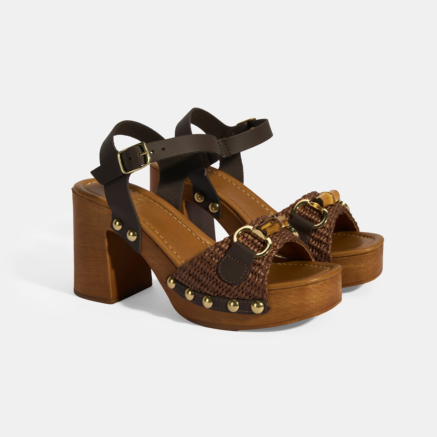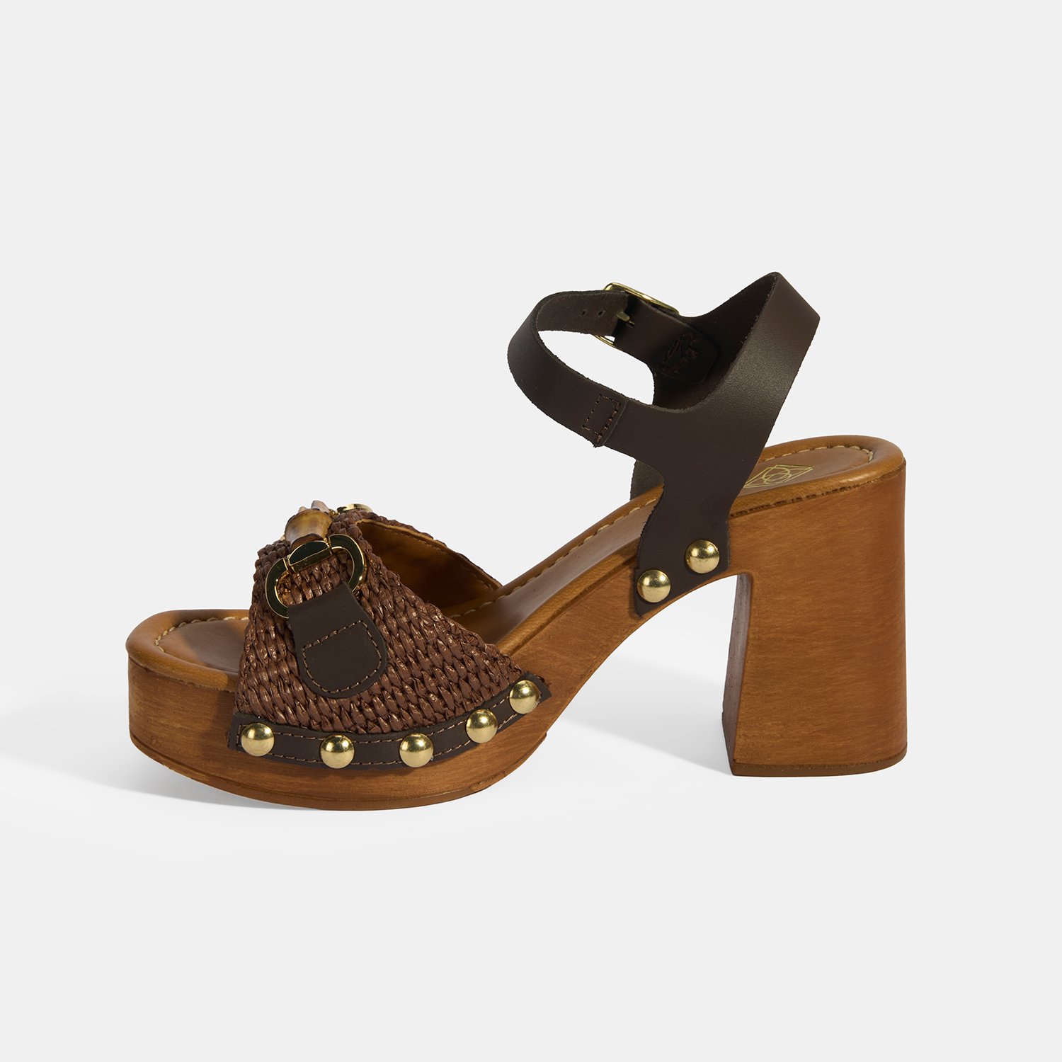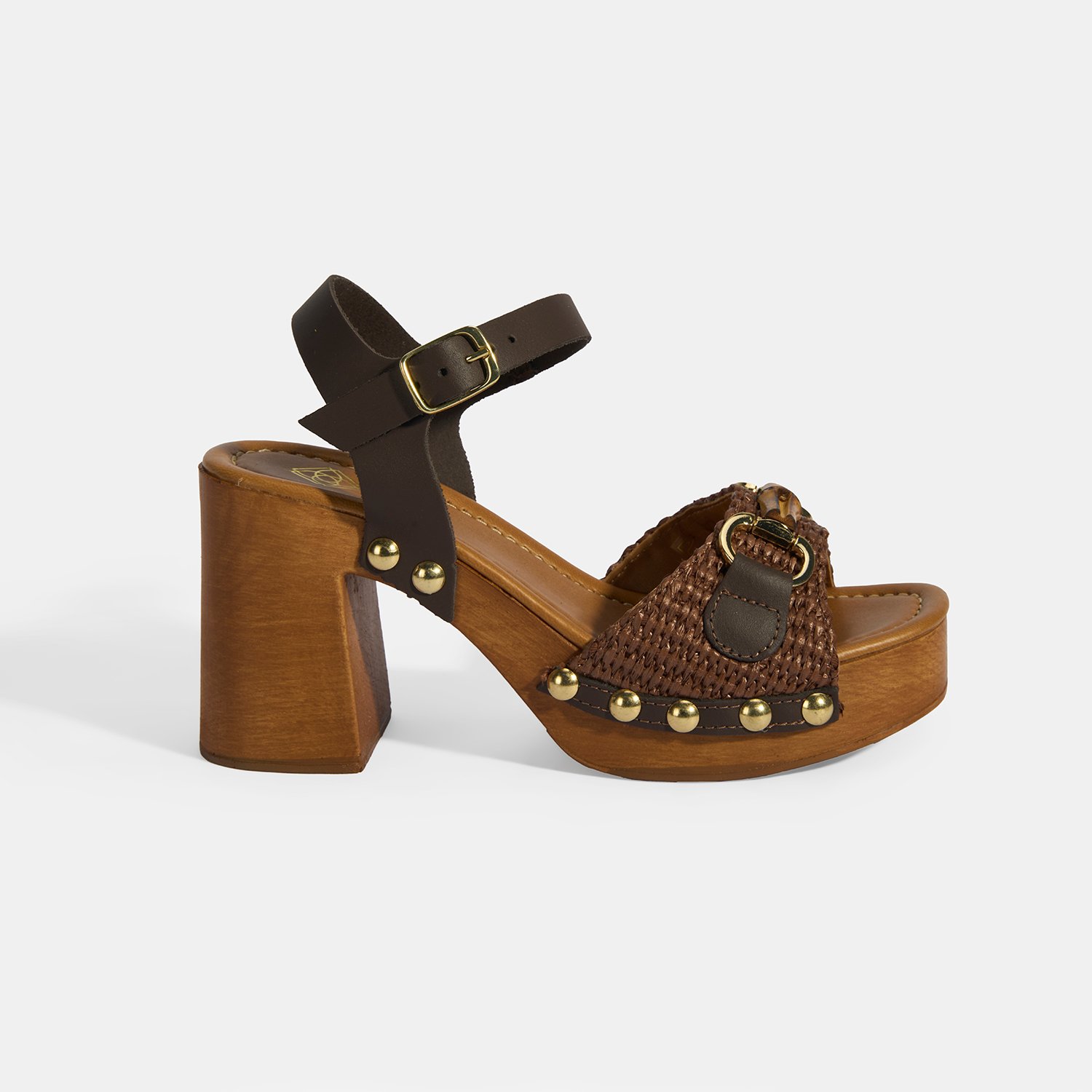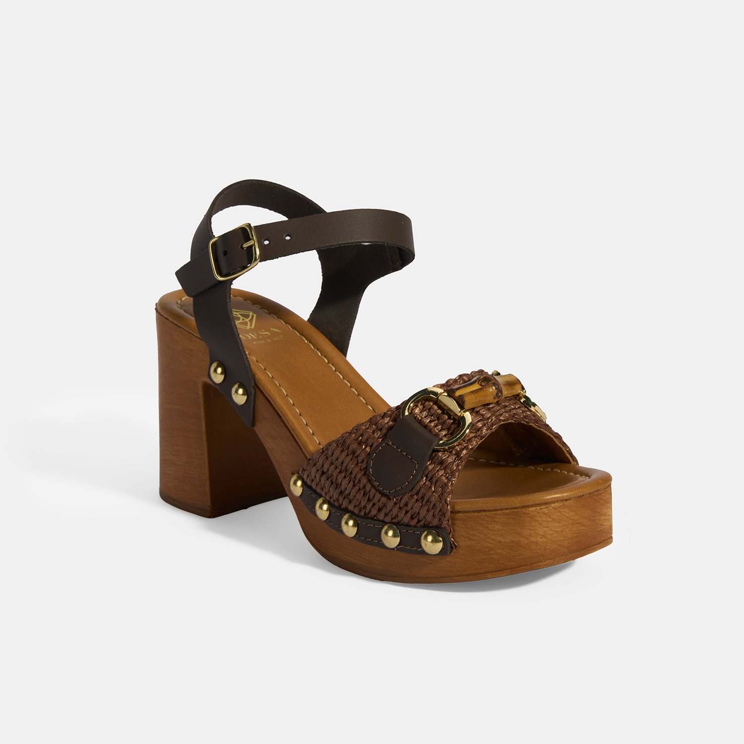 %60 deri, %40 rafya malzemeden üretilmiştir, deri astarlı, pu iç tabanlı, pu tabanlı, ayarlanabilir metal tokalı, kemik aksesuar toka deatylı, kadın topuklu sandalet.