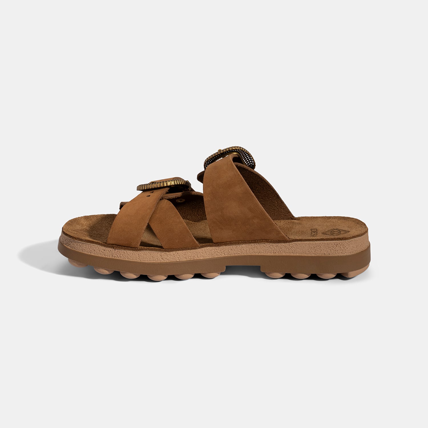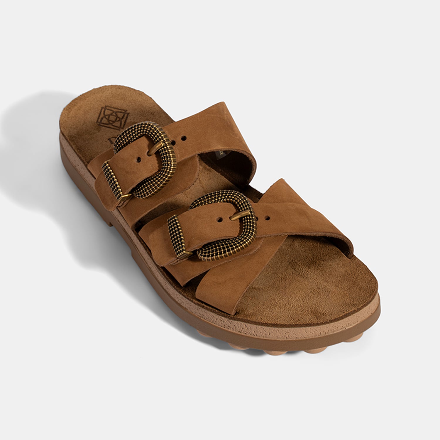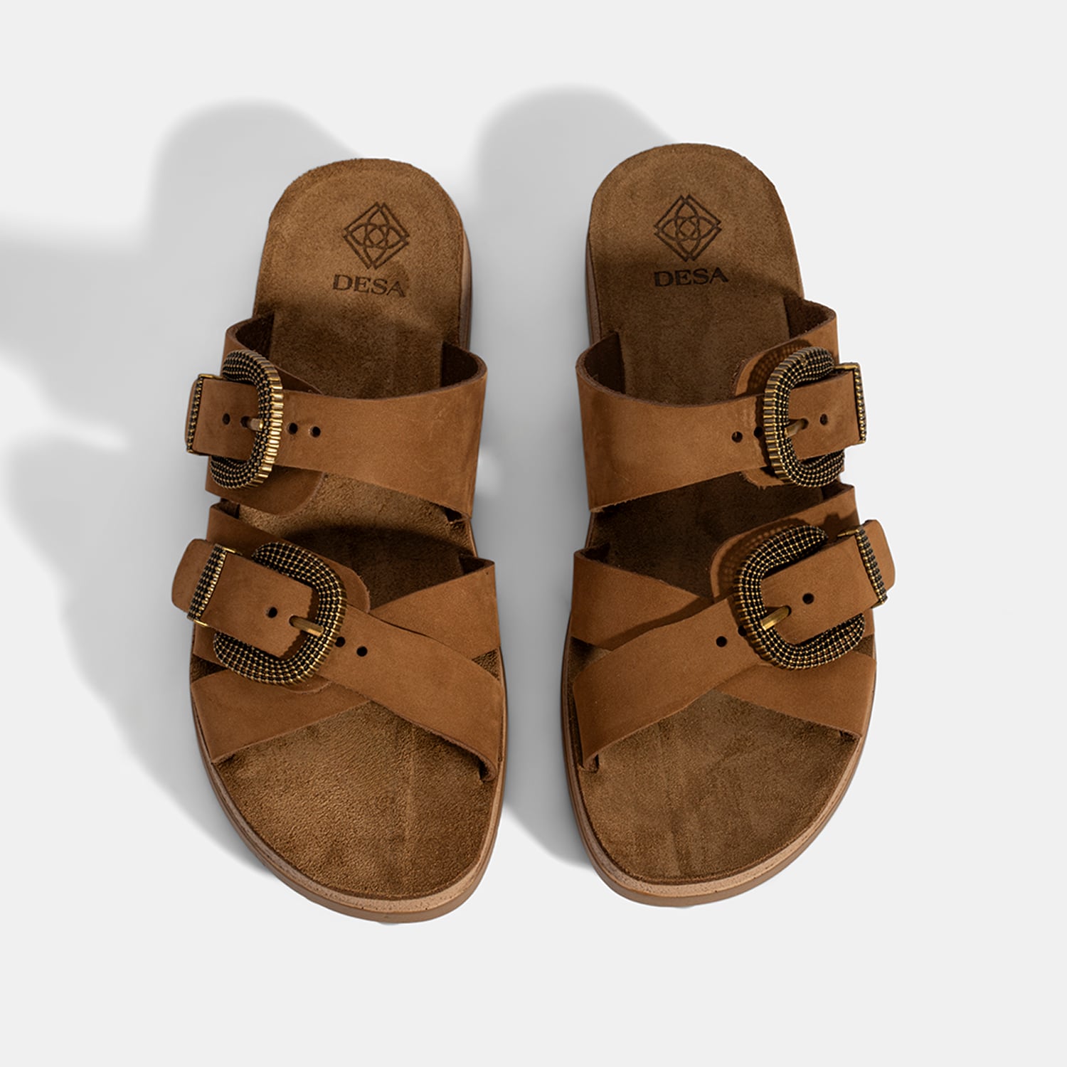 Kadın Kahve Tokalı Dolgu Topuklu Nubuk Deri Terlik