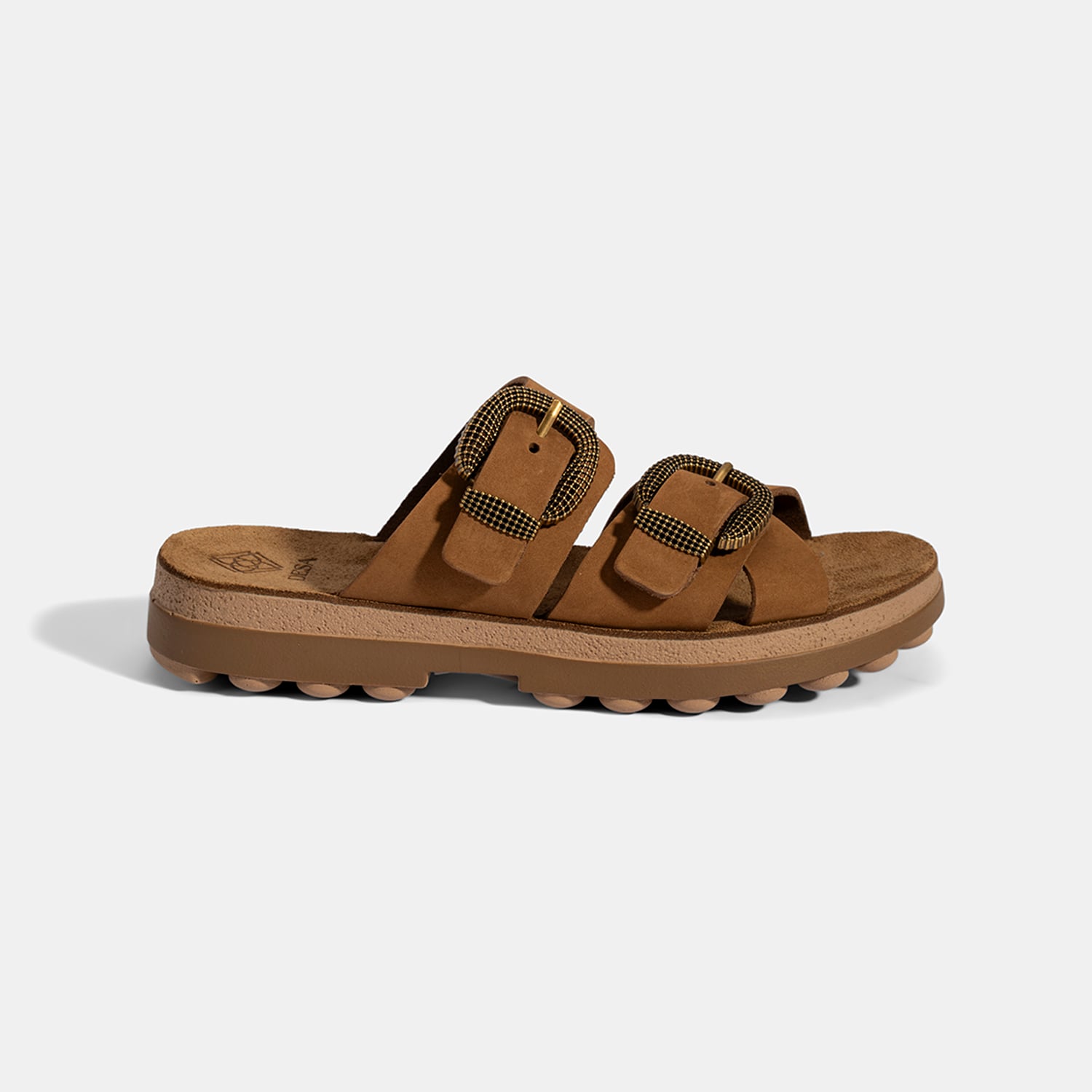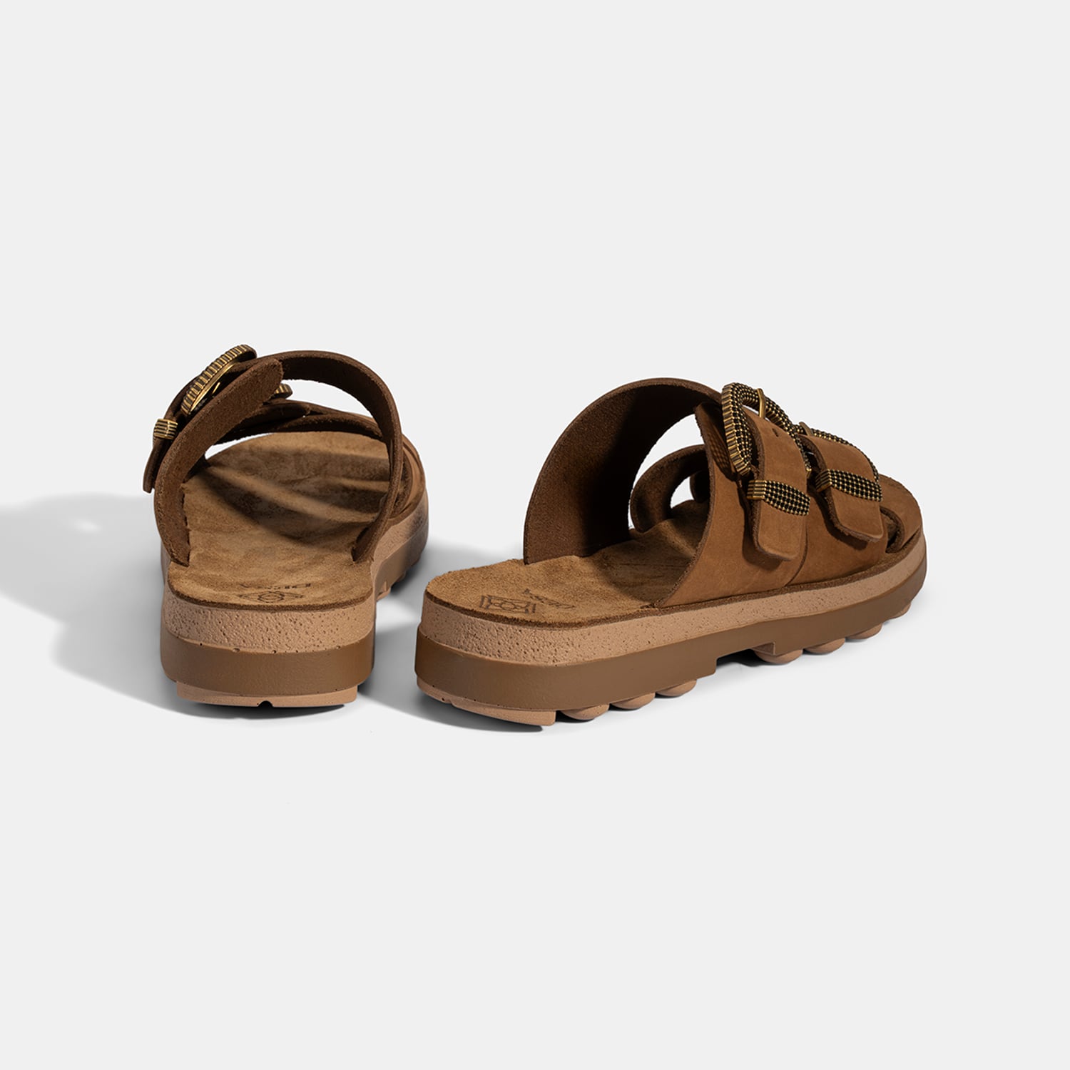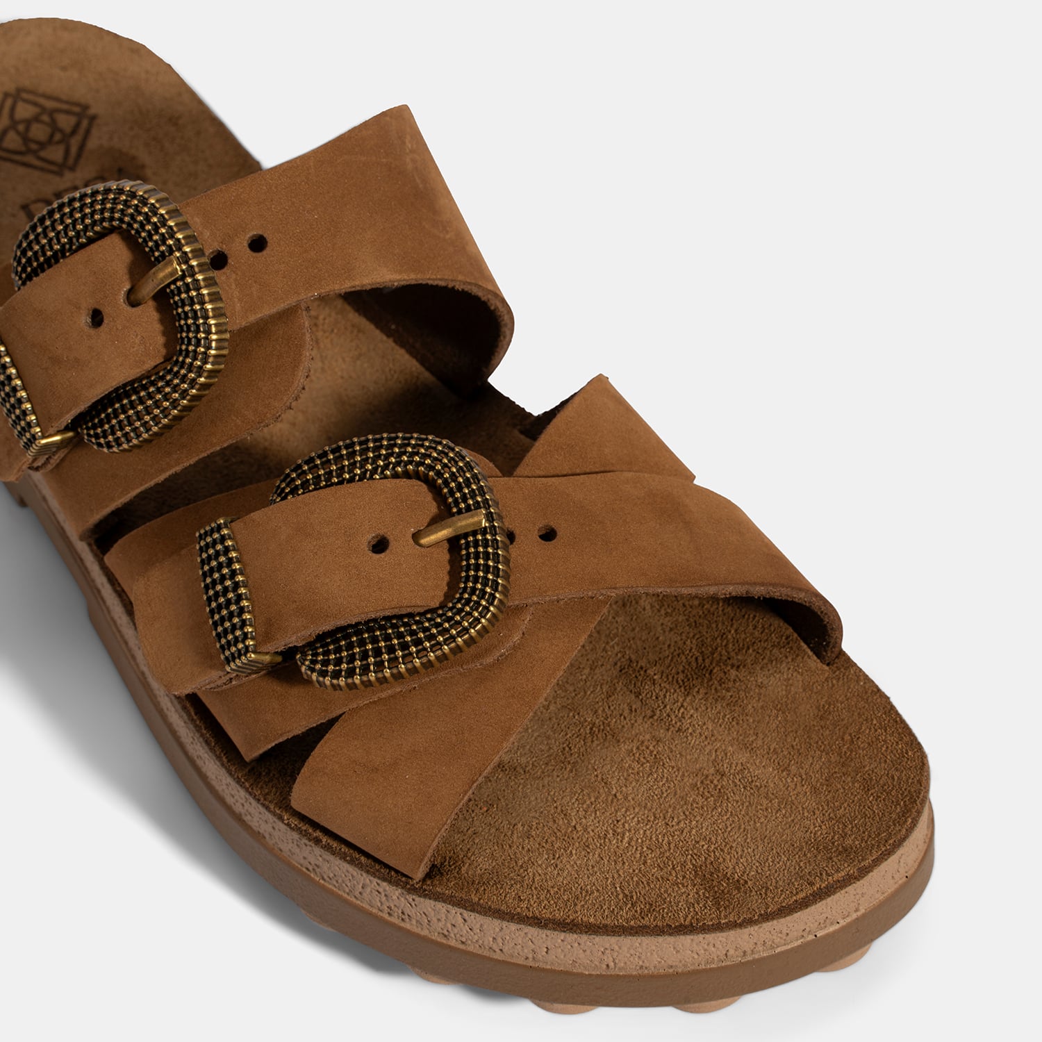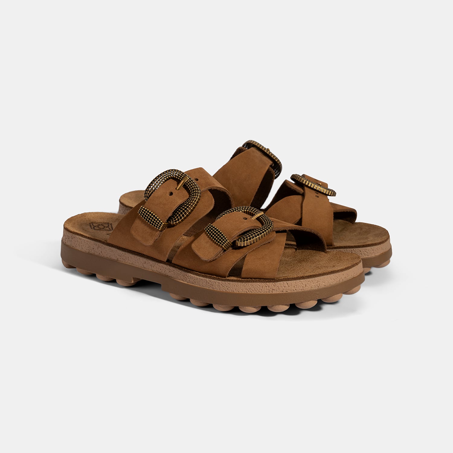 Kadın Kahve Tokalı Dolgu Topuklu Nubuk Deri Terlik