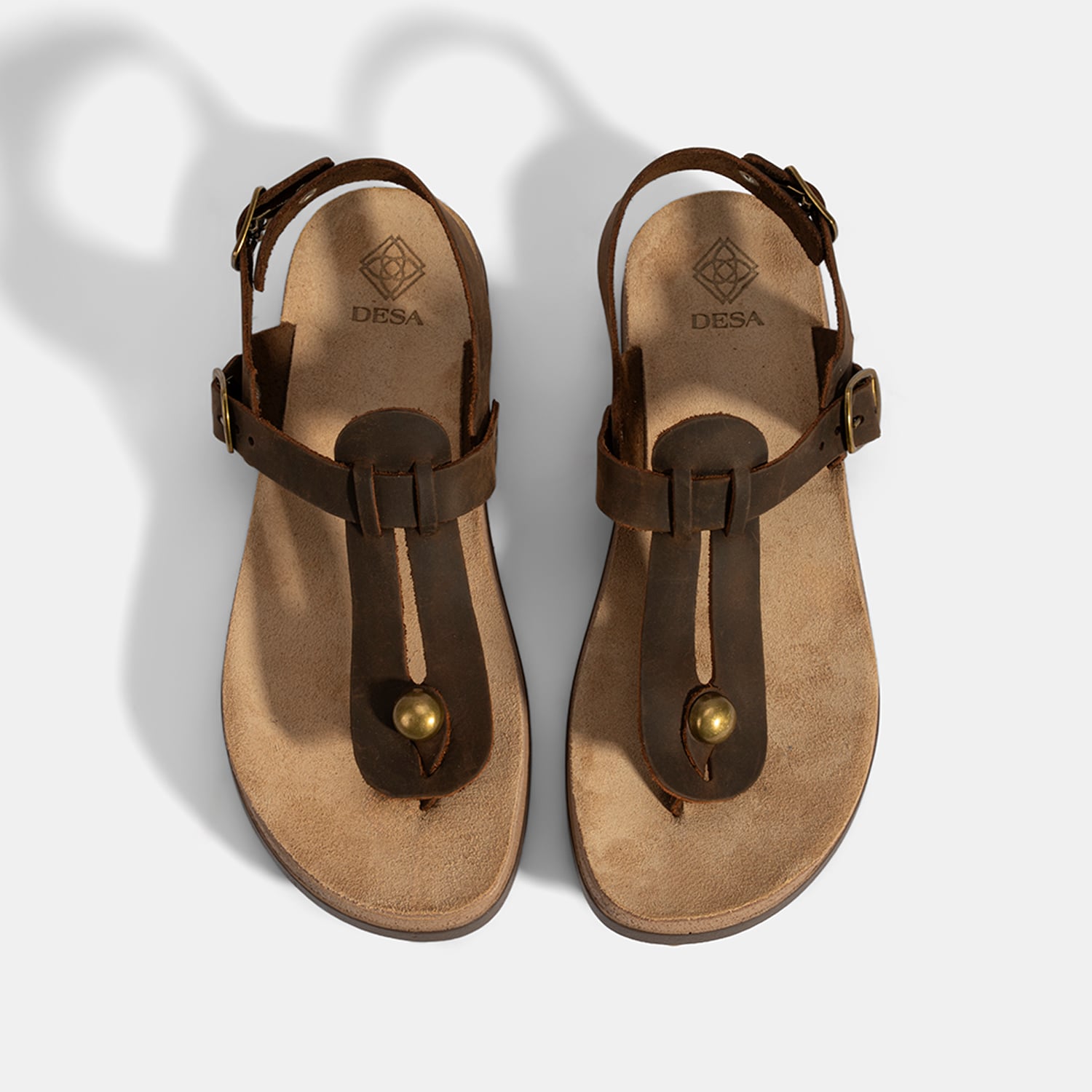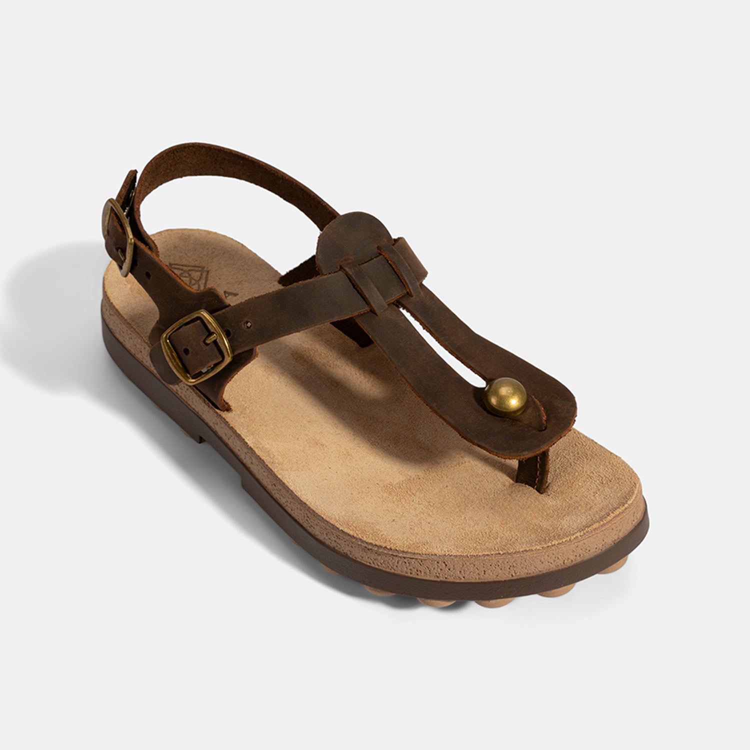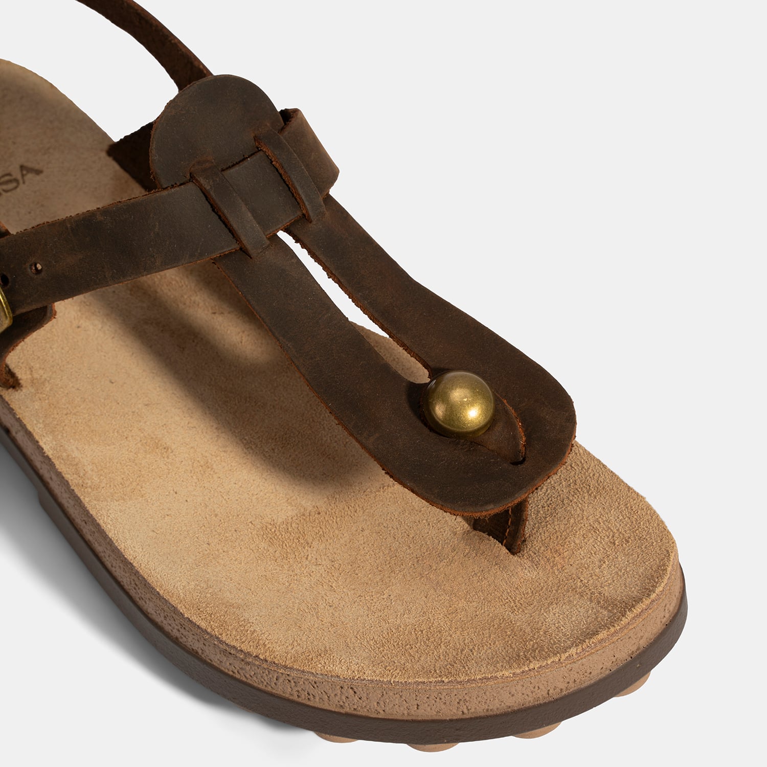 Kadın Kahve Tokalı Parmak Arası Süet Deri Sandalet