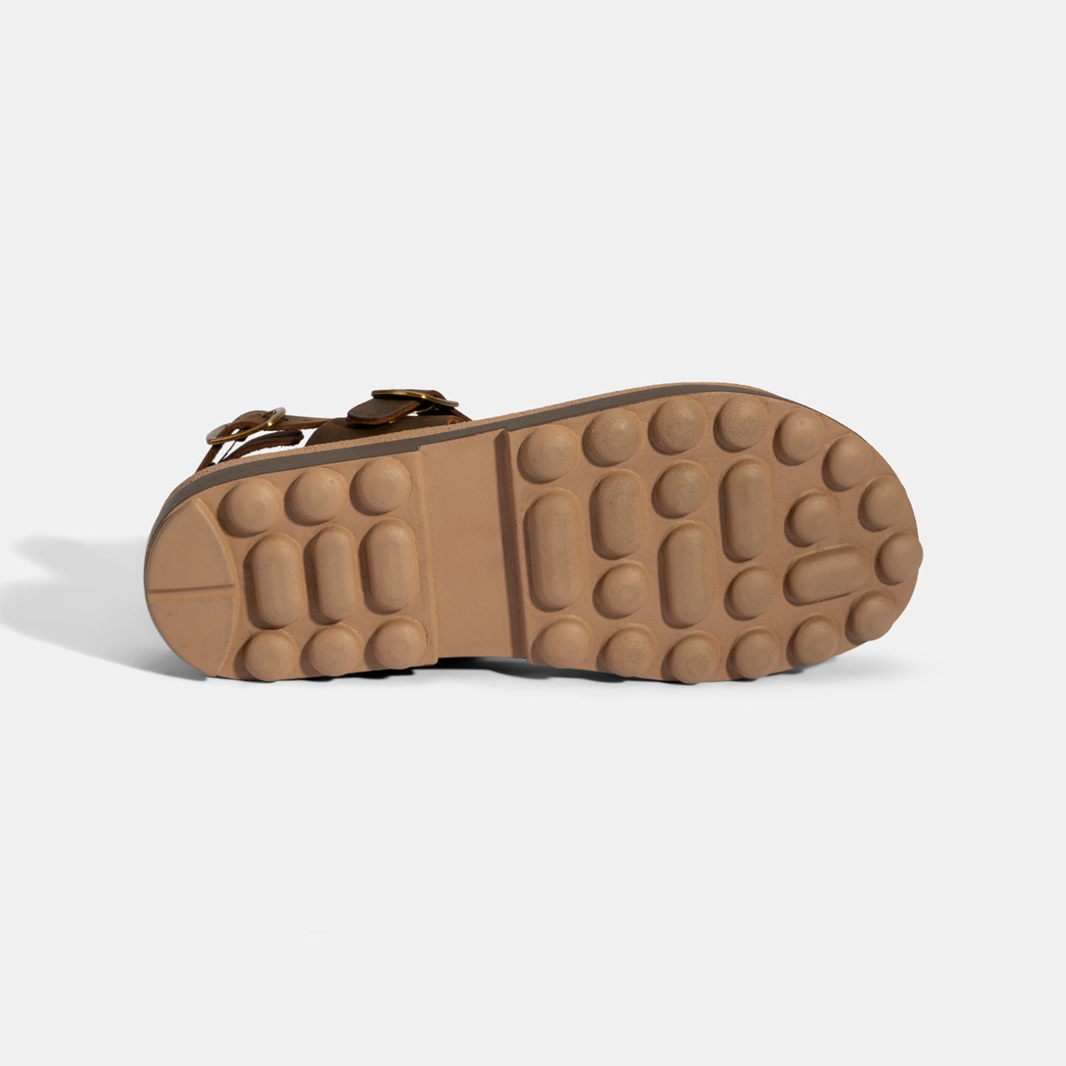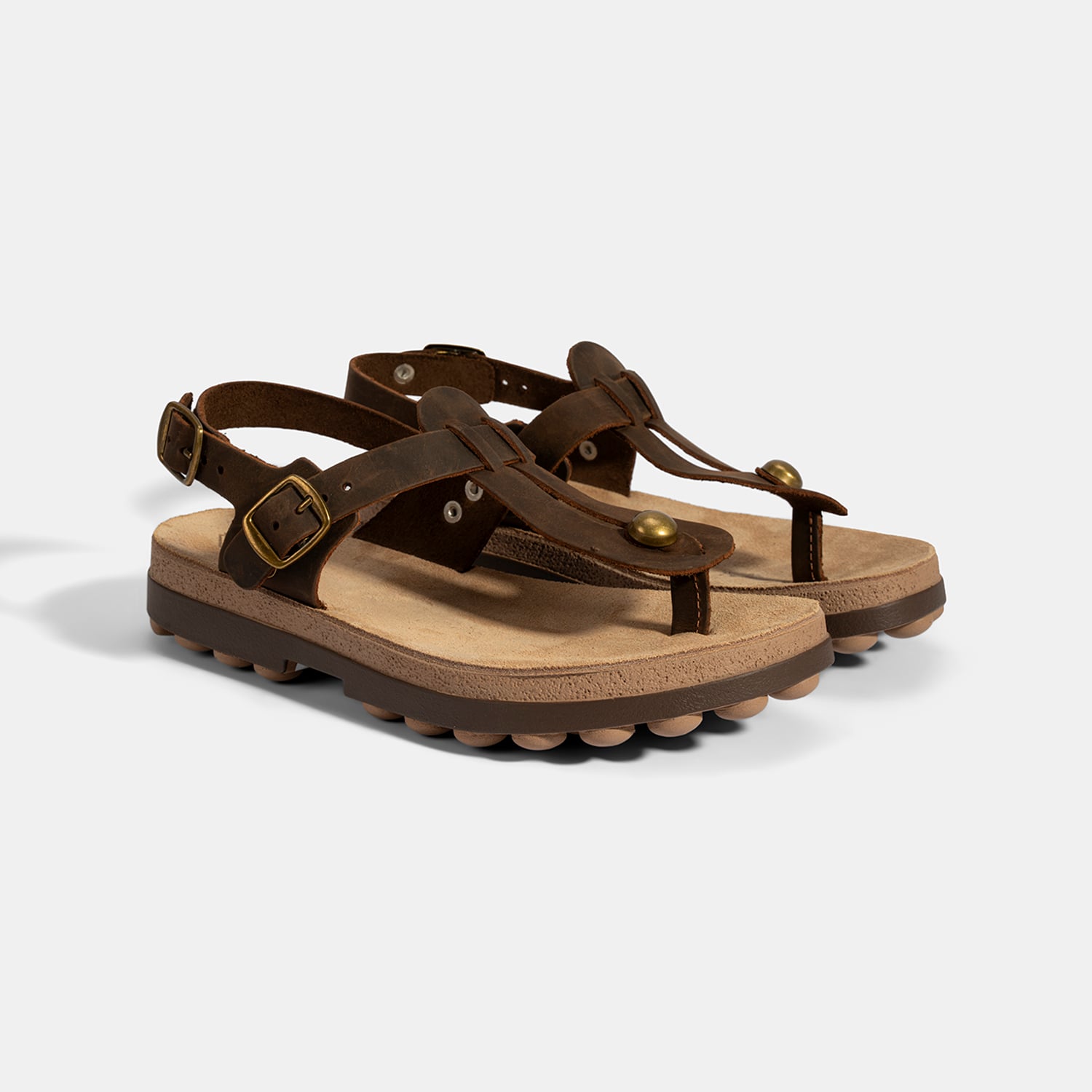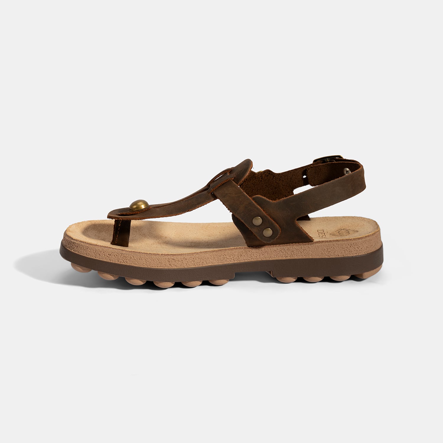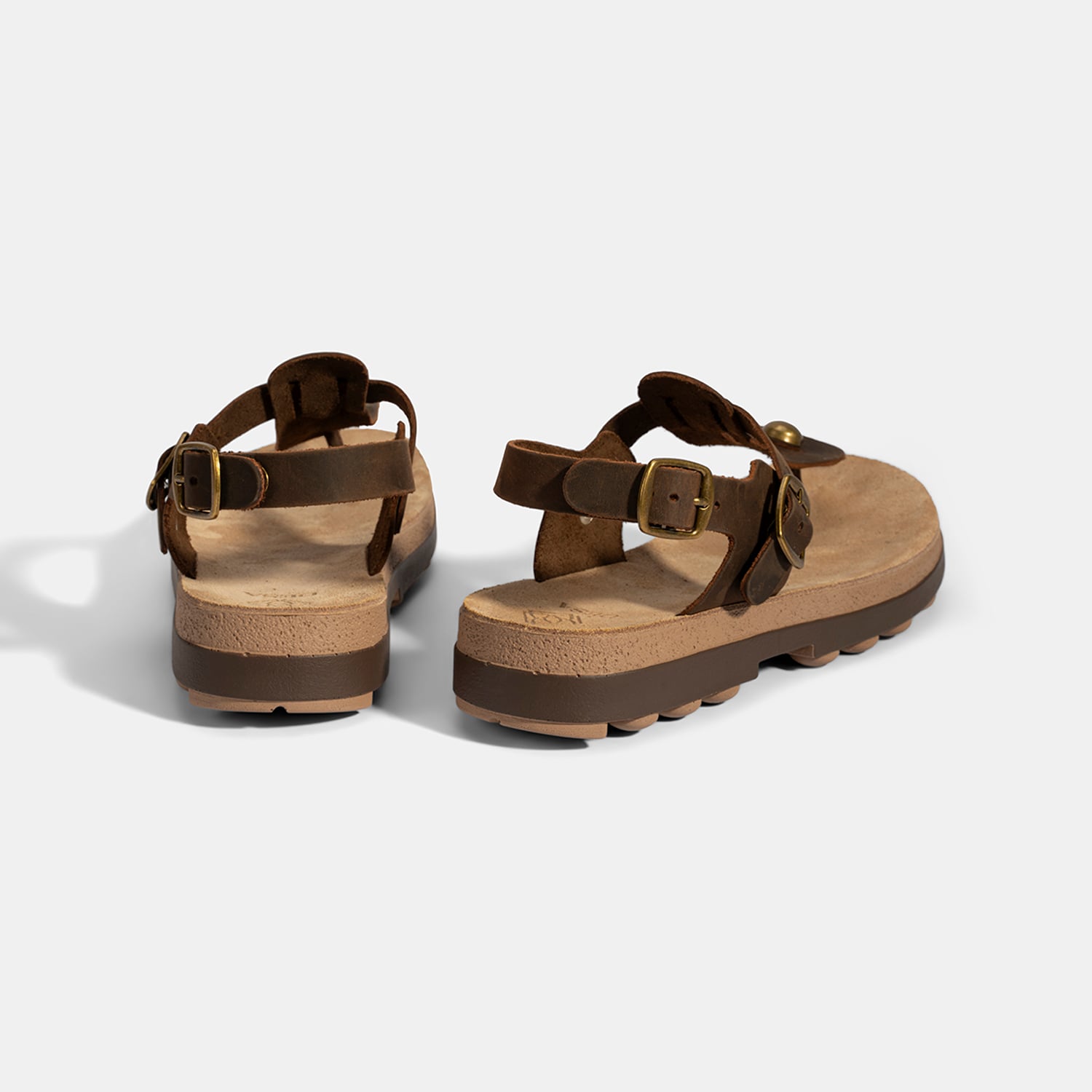Kadın Kahve Tokalı Parmak Arası Süet Deri Sandalet