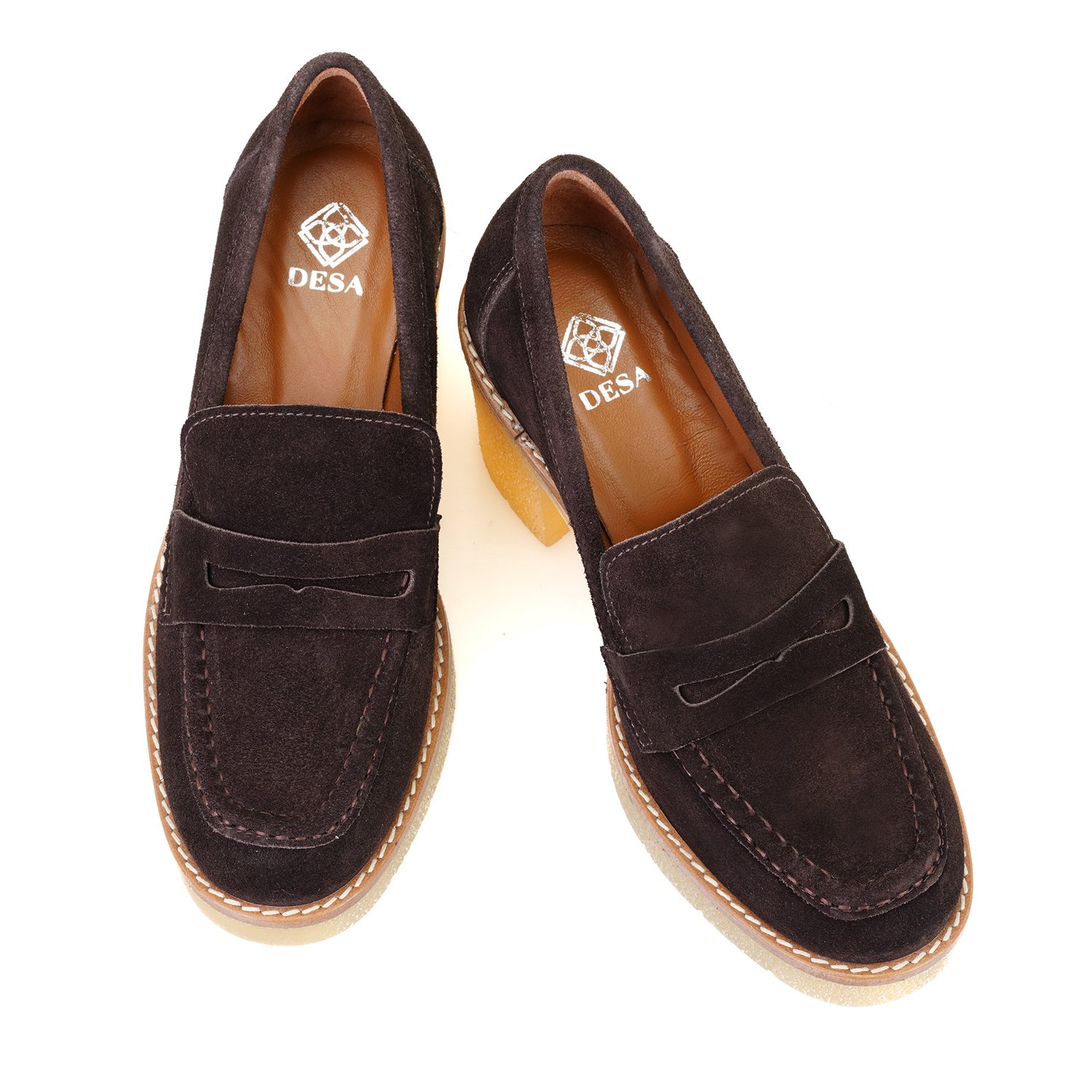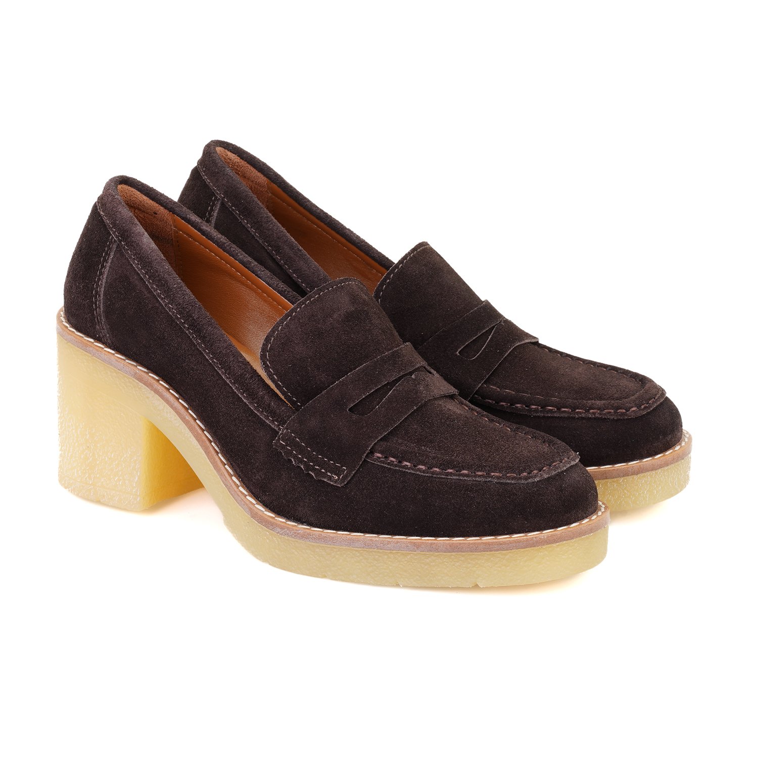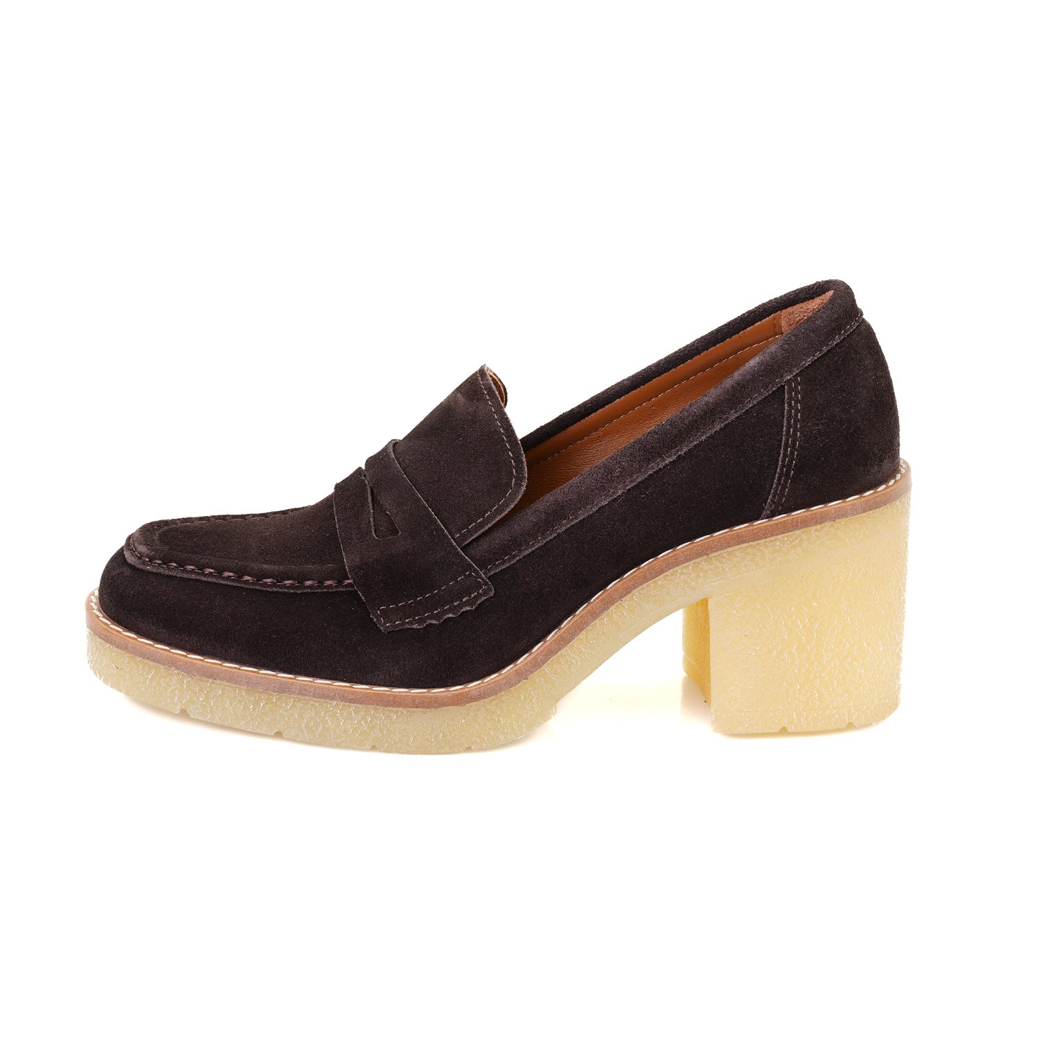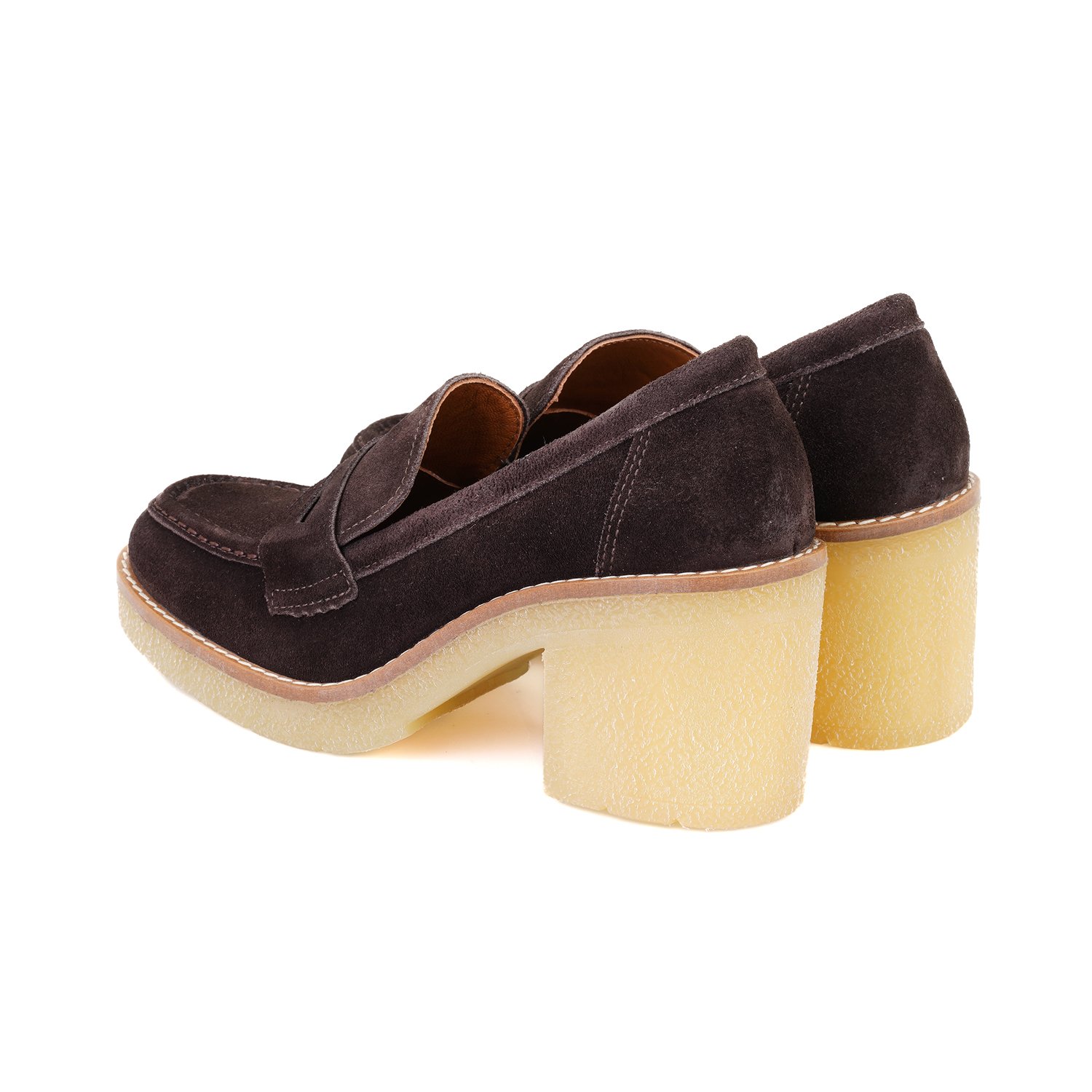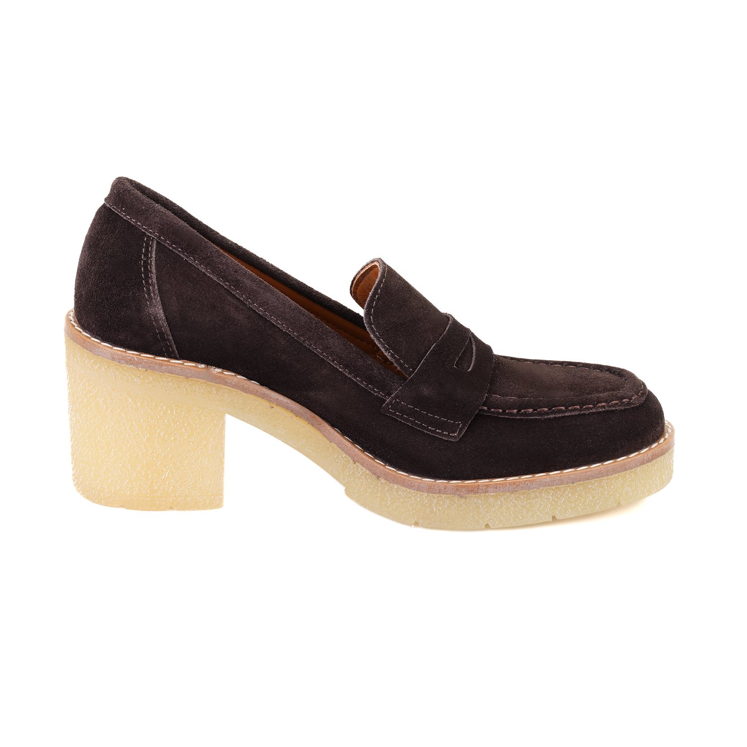 %100 süet deri, deri iç tabanlı, deri astarlı, kauçuk tabanlı, topuklu kadın loafer ayakkabı.