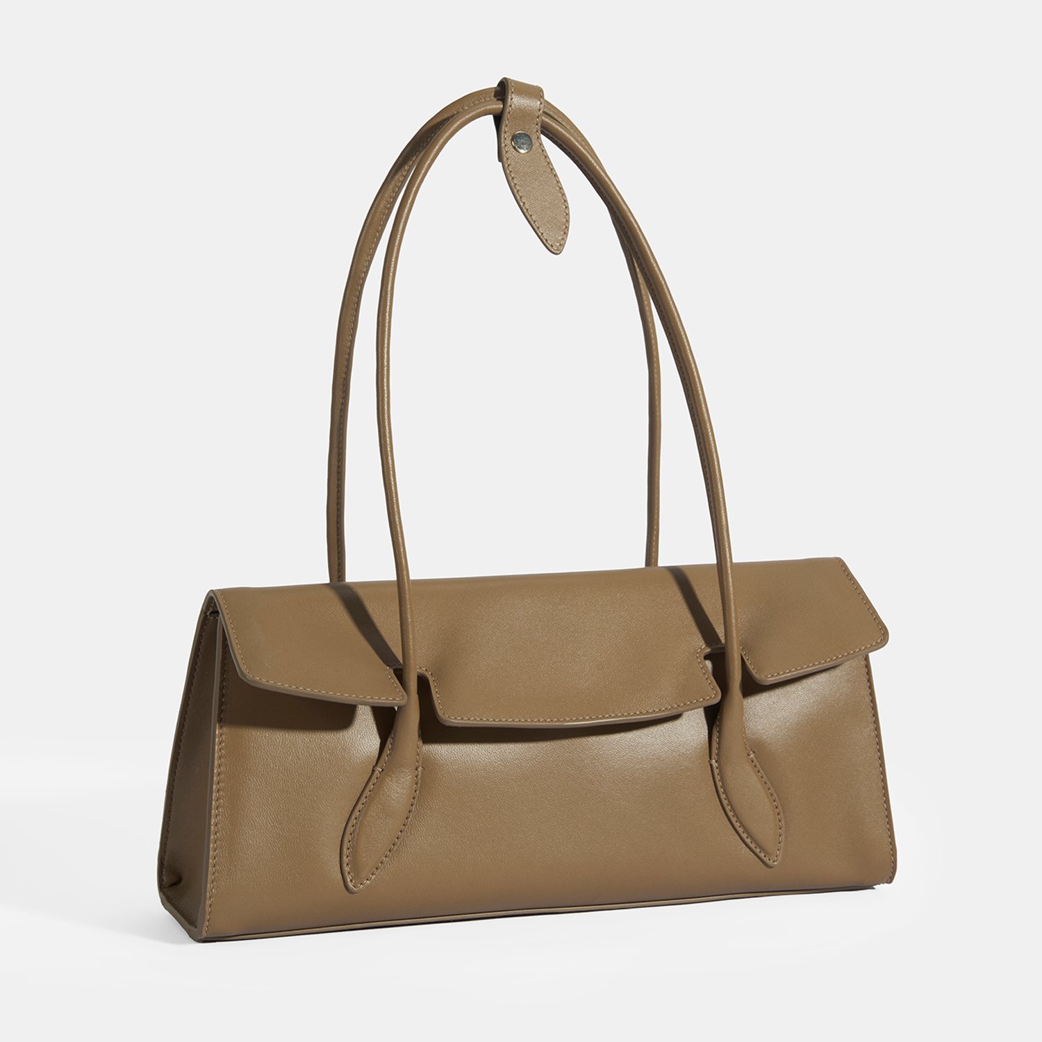 Kadın Kahve Yaprak Detaylı Deri Omuz Çantası