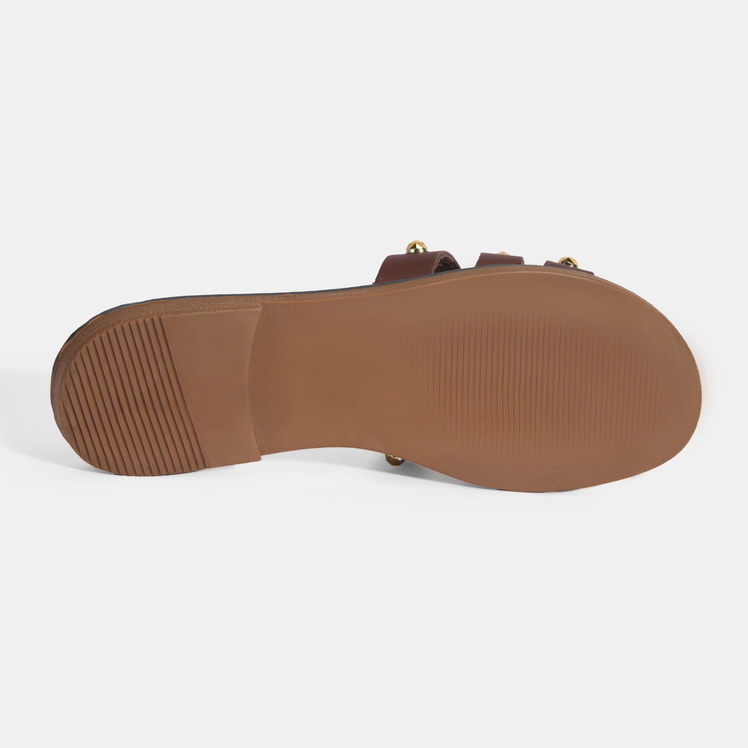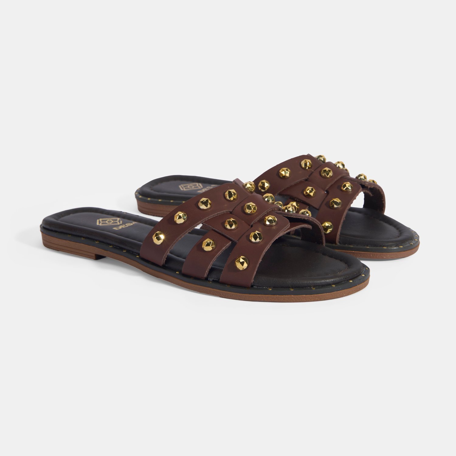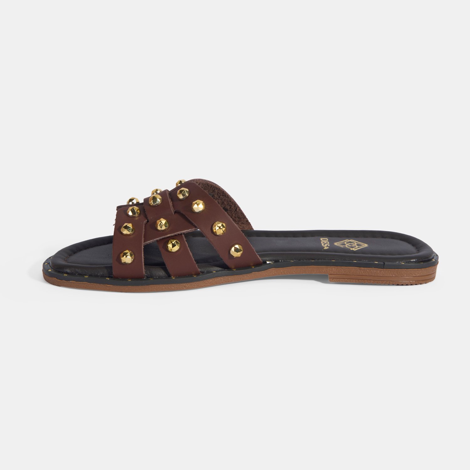 Kadın Kahve Zımba Detaylı Deri Terlik