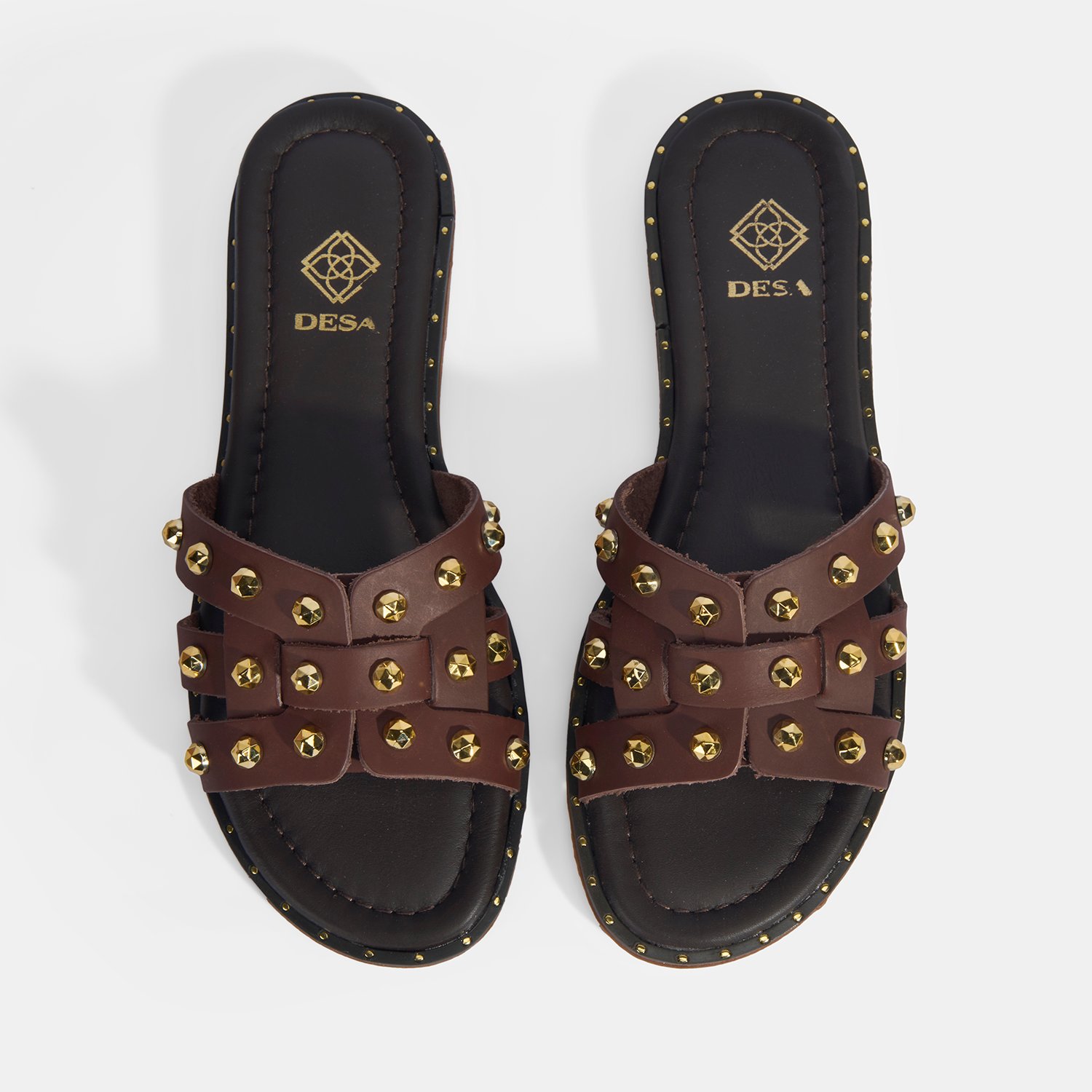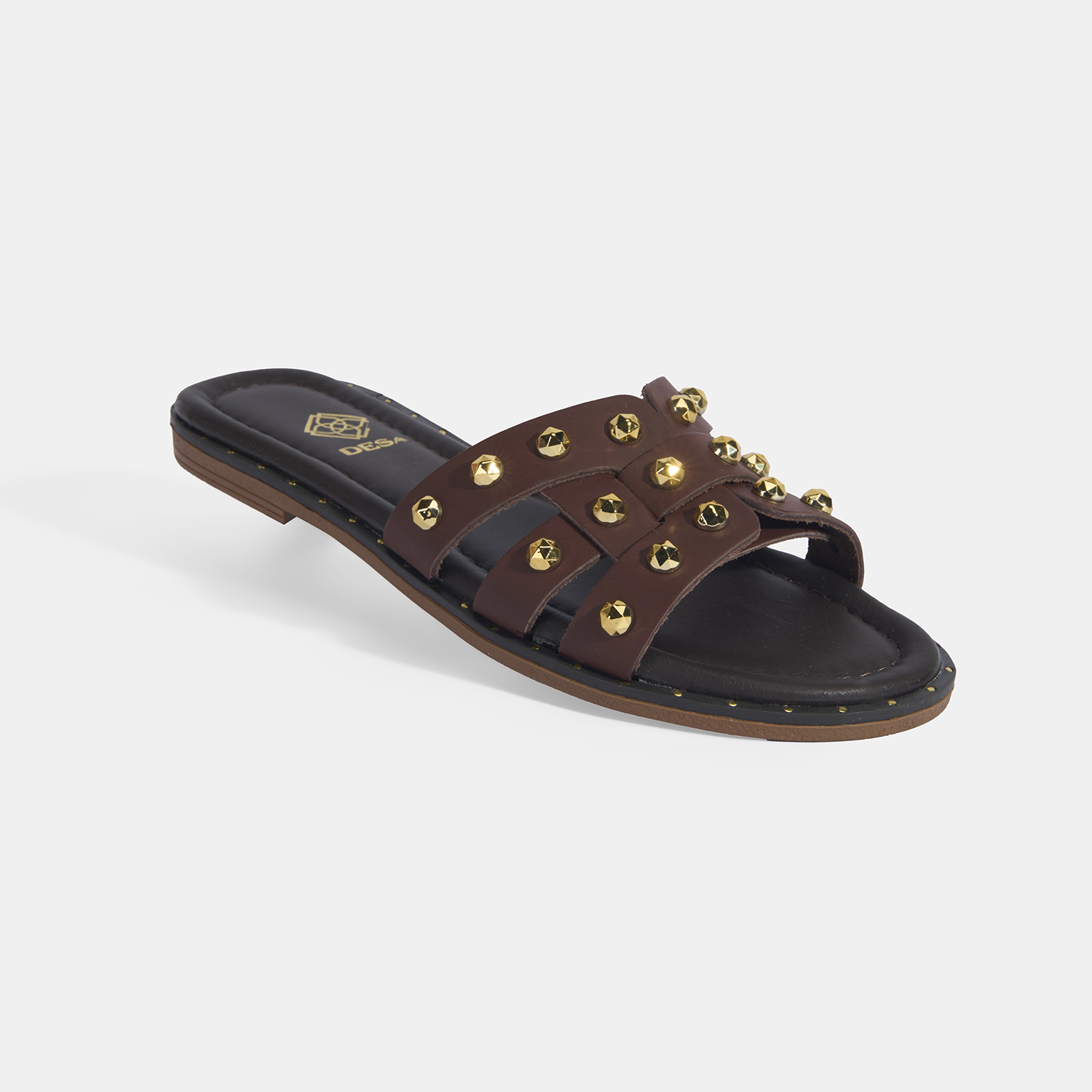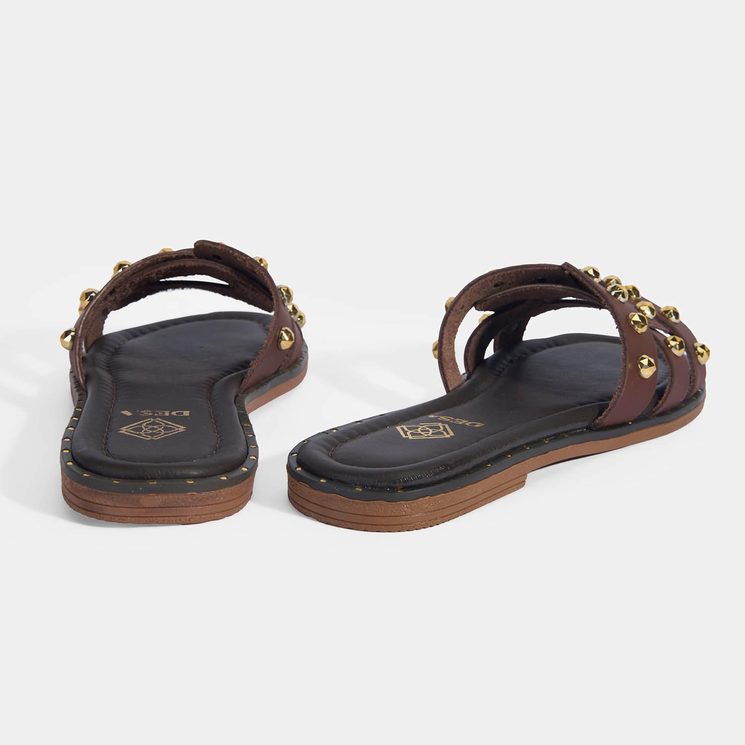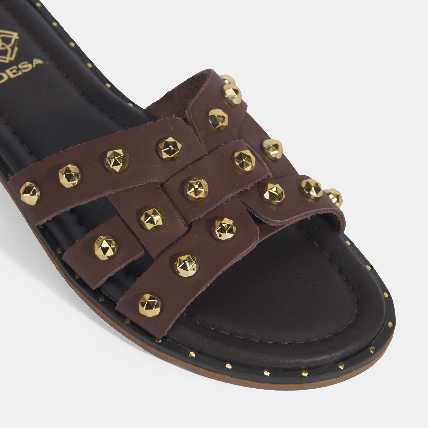 Kadın Kahve Zımba Detaylı Deri Terlik