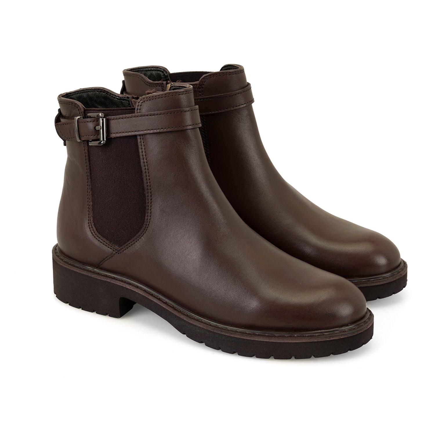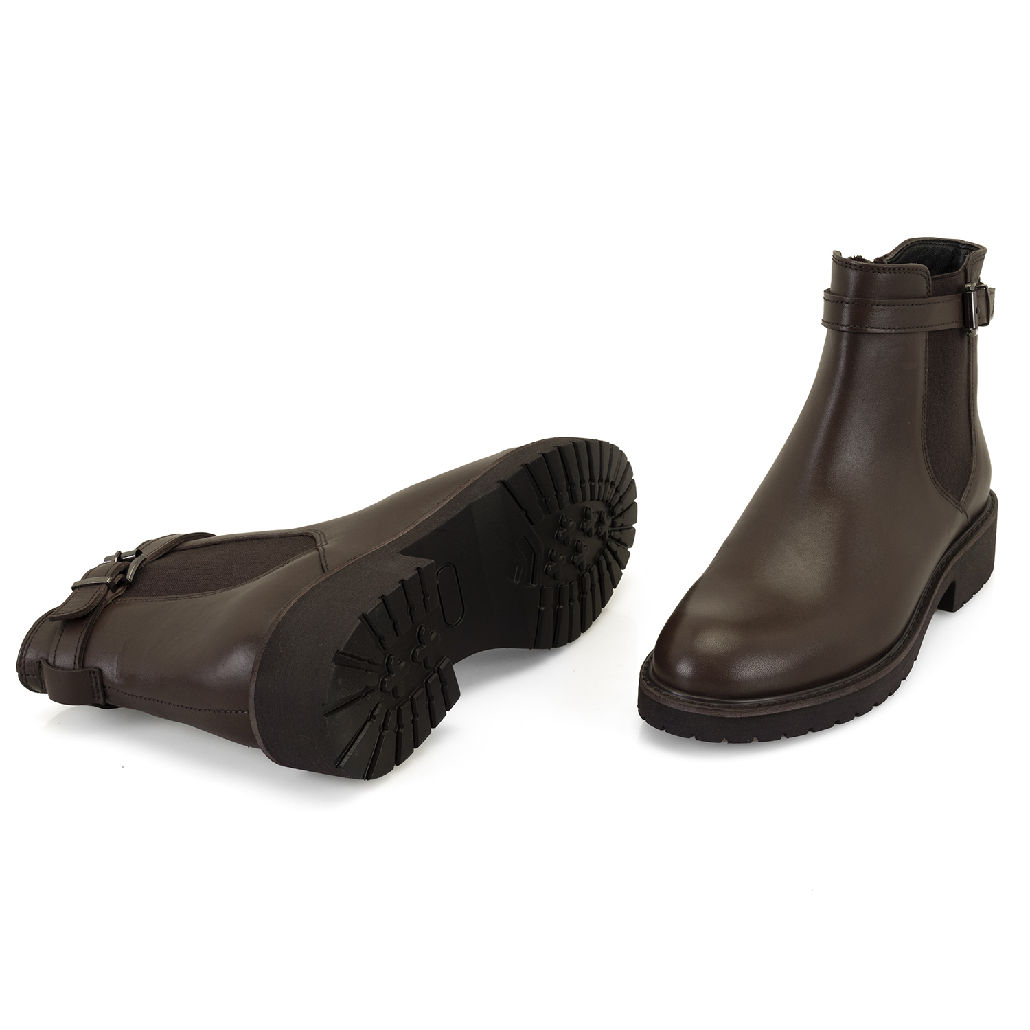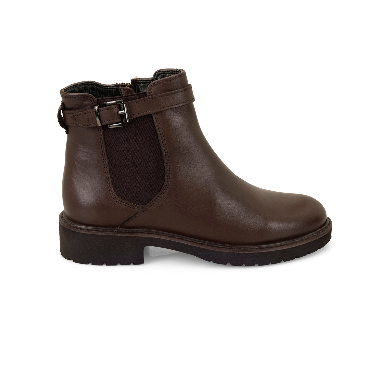 Kadın Kemer Aksesuarlı Kahve Lastikli Deri Chelsea Bot