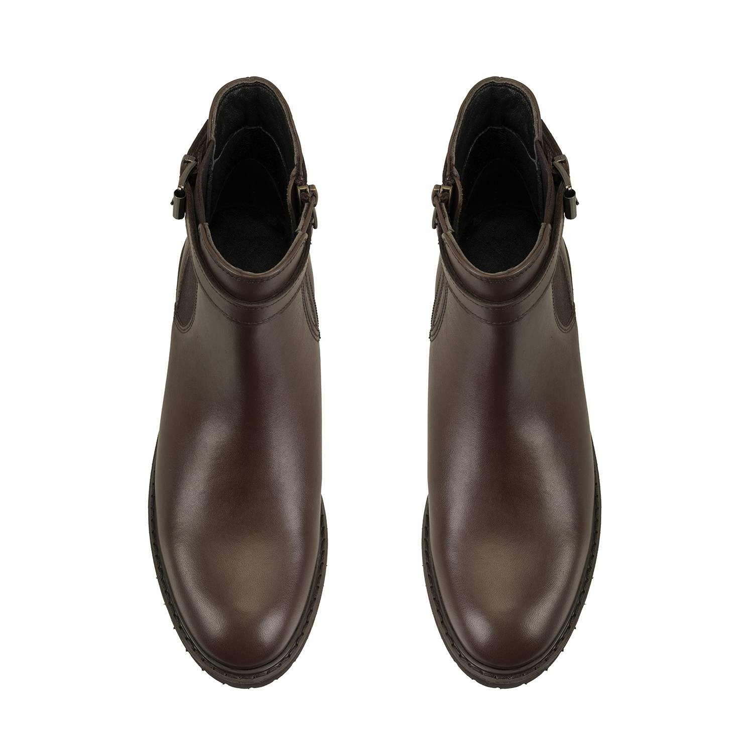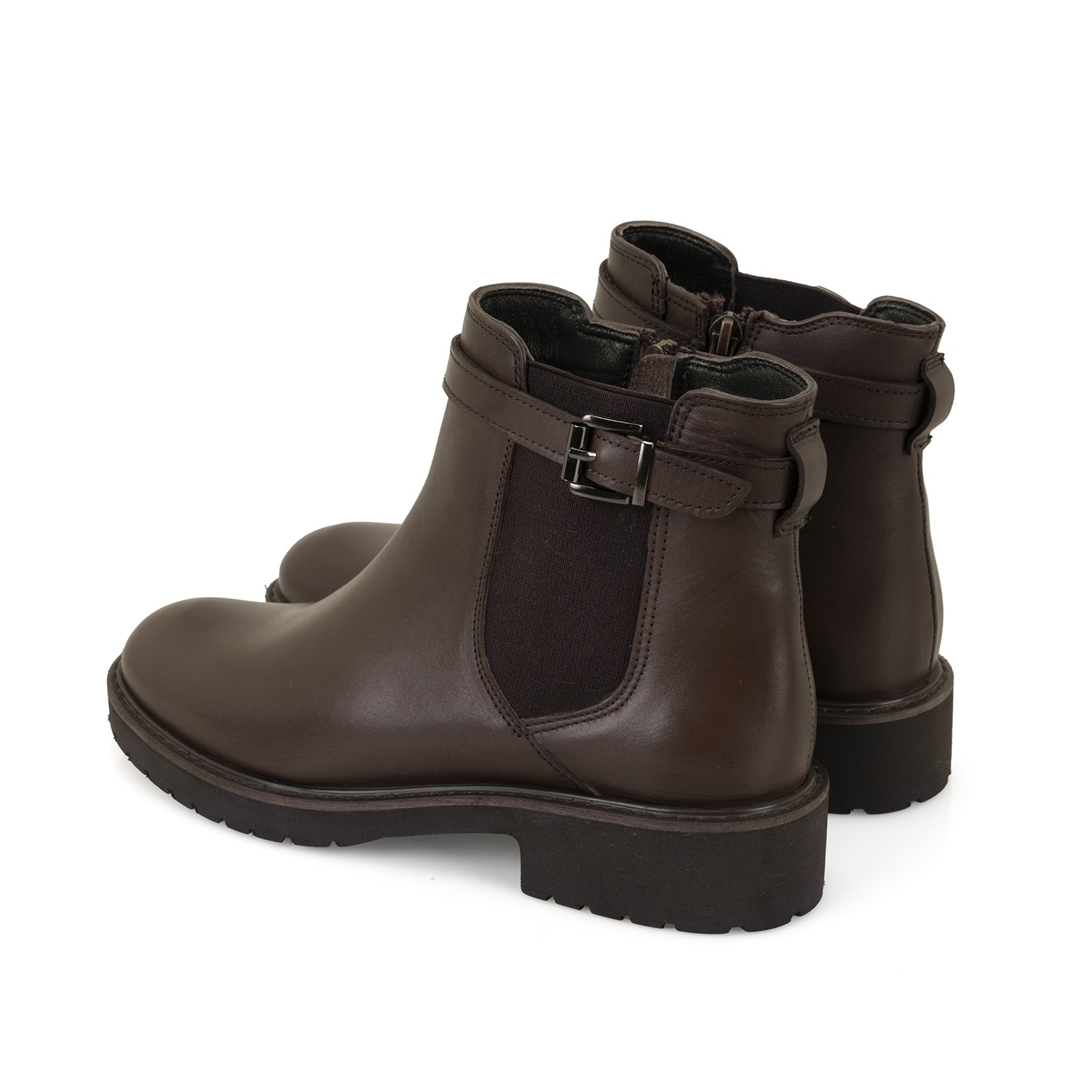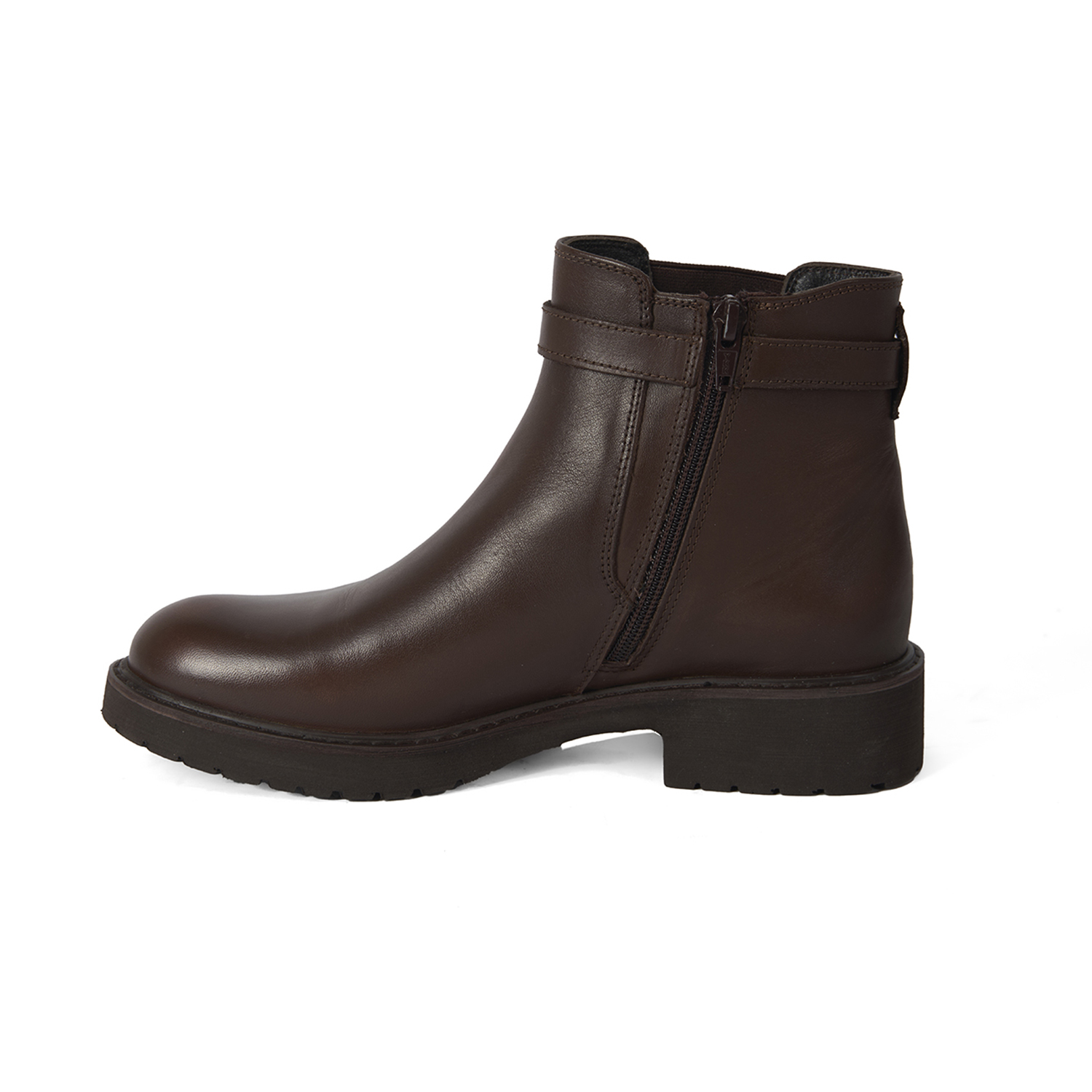 Kadın Kemer Aksesuarlı Kahve Lastikli Deri Chelsea Bot