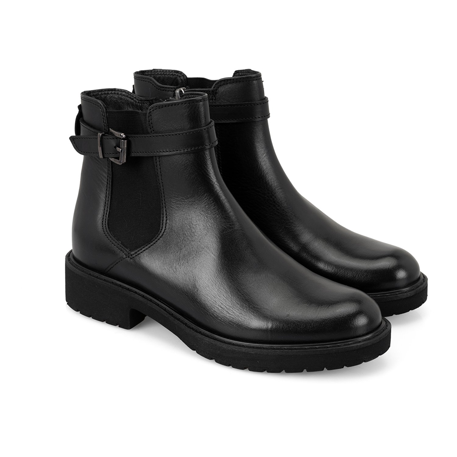 Kadın Kemer Aksesuarlı Siyah Lastikli Deri Chelsea Bot