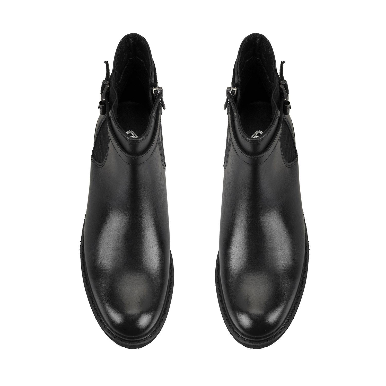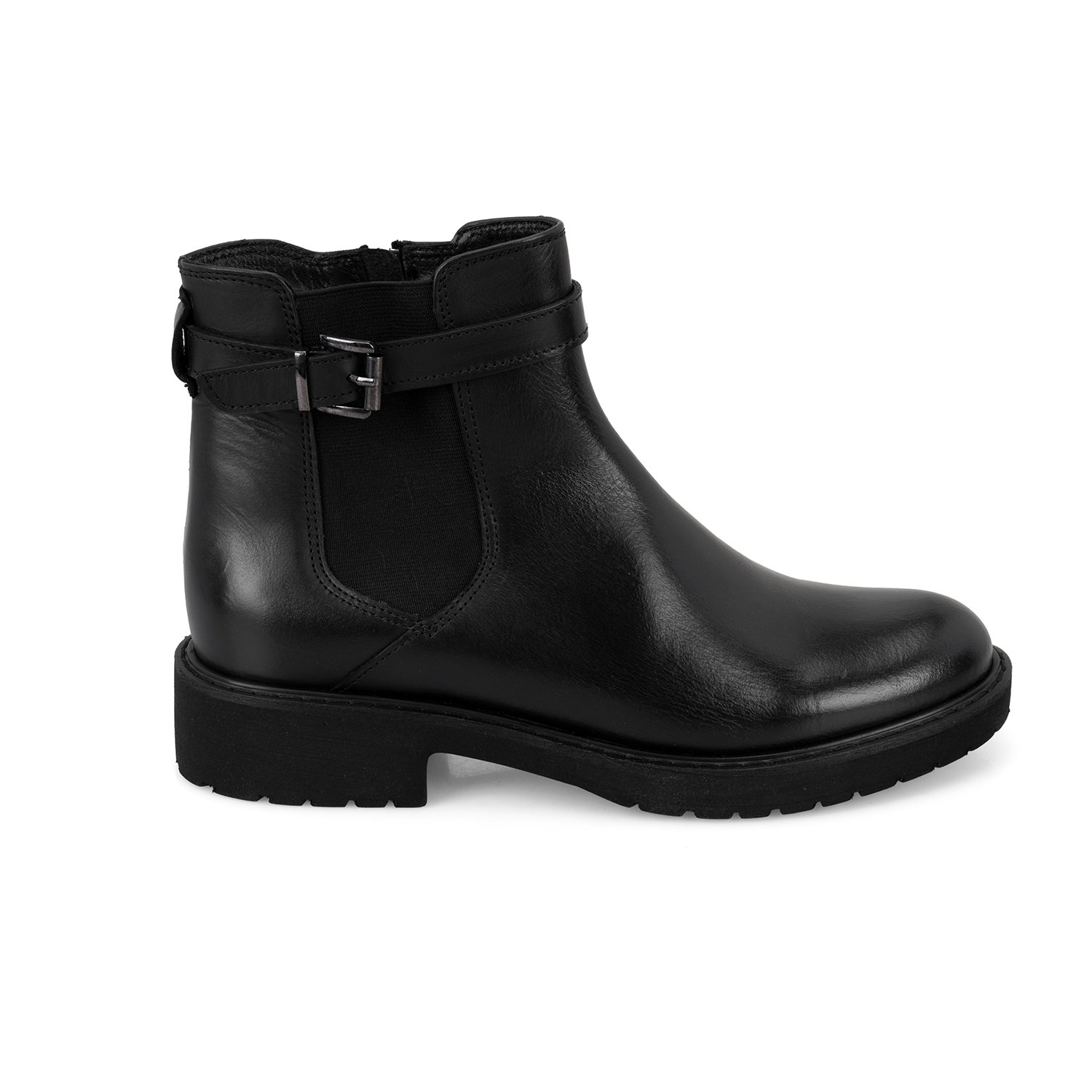 %100 deri, deri iç tabanlı, tekstil astarlı, ayarlanabilir metal tokalı, termo tabanlı, lastik detaylı kadın chelsea bot.
