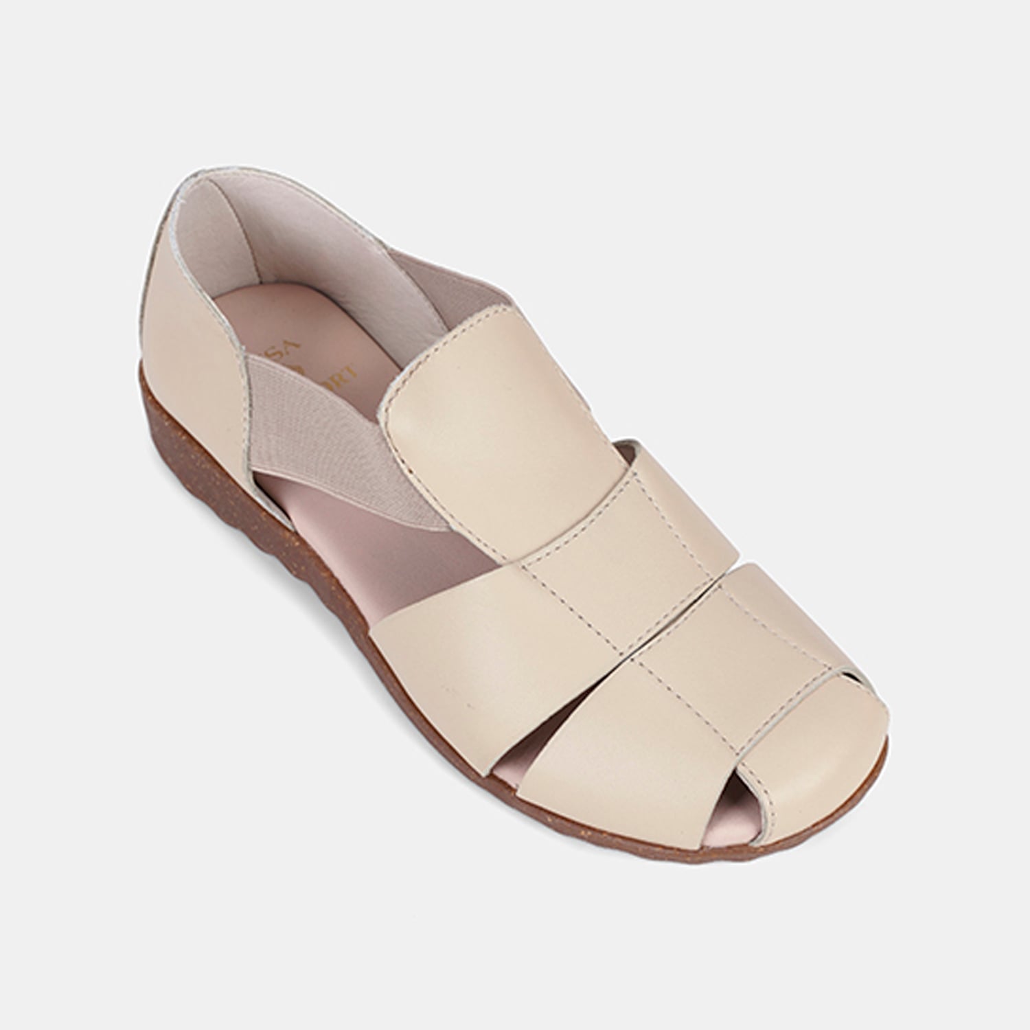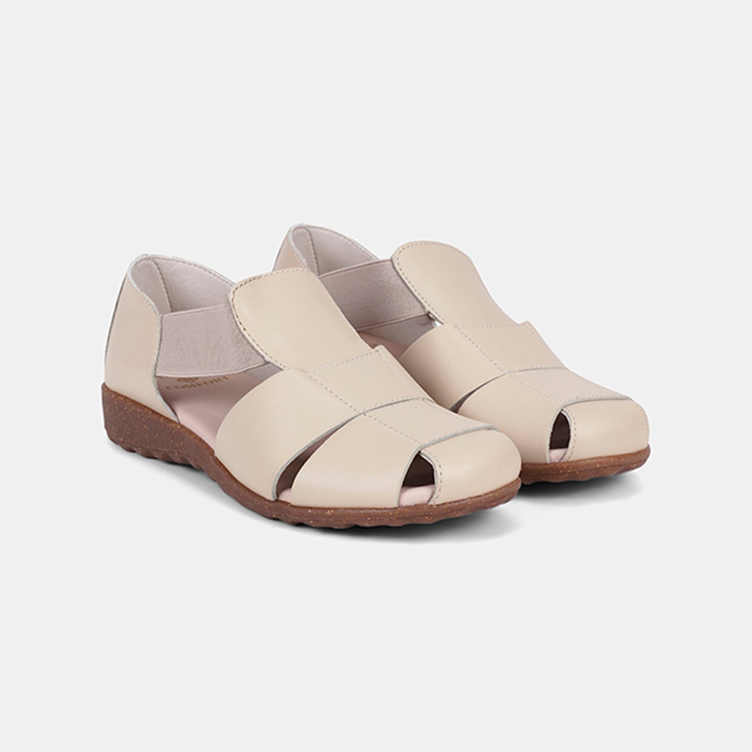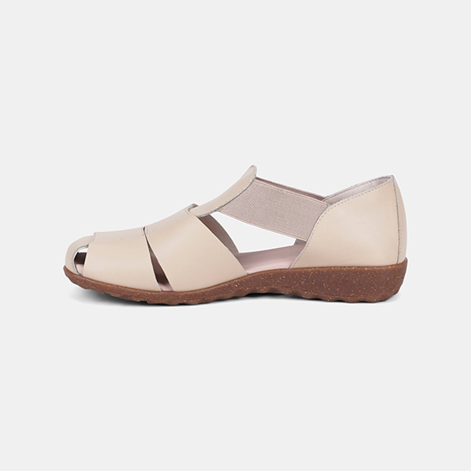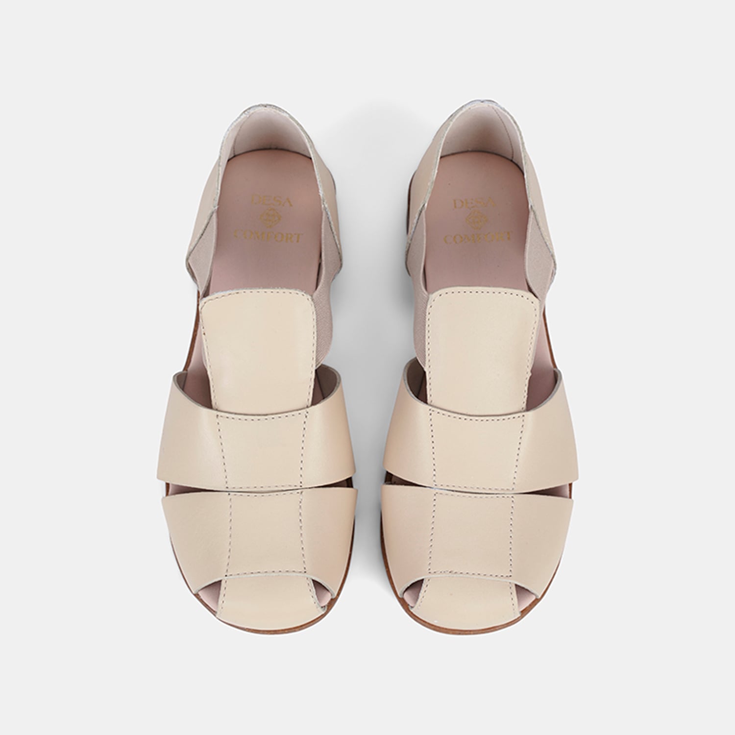 Kadın Kırık Beyaz DesaComfort Lastikli Deri Sandalet