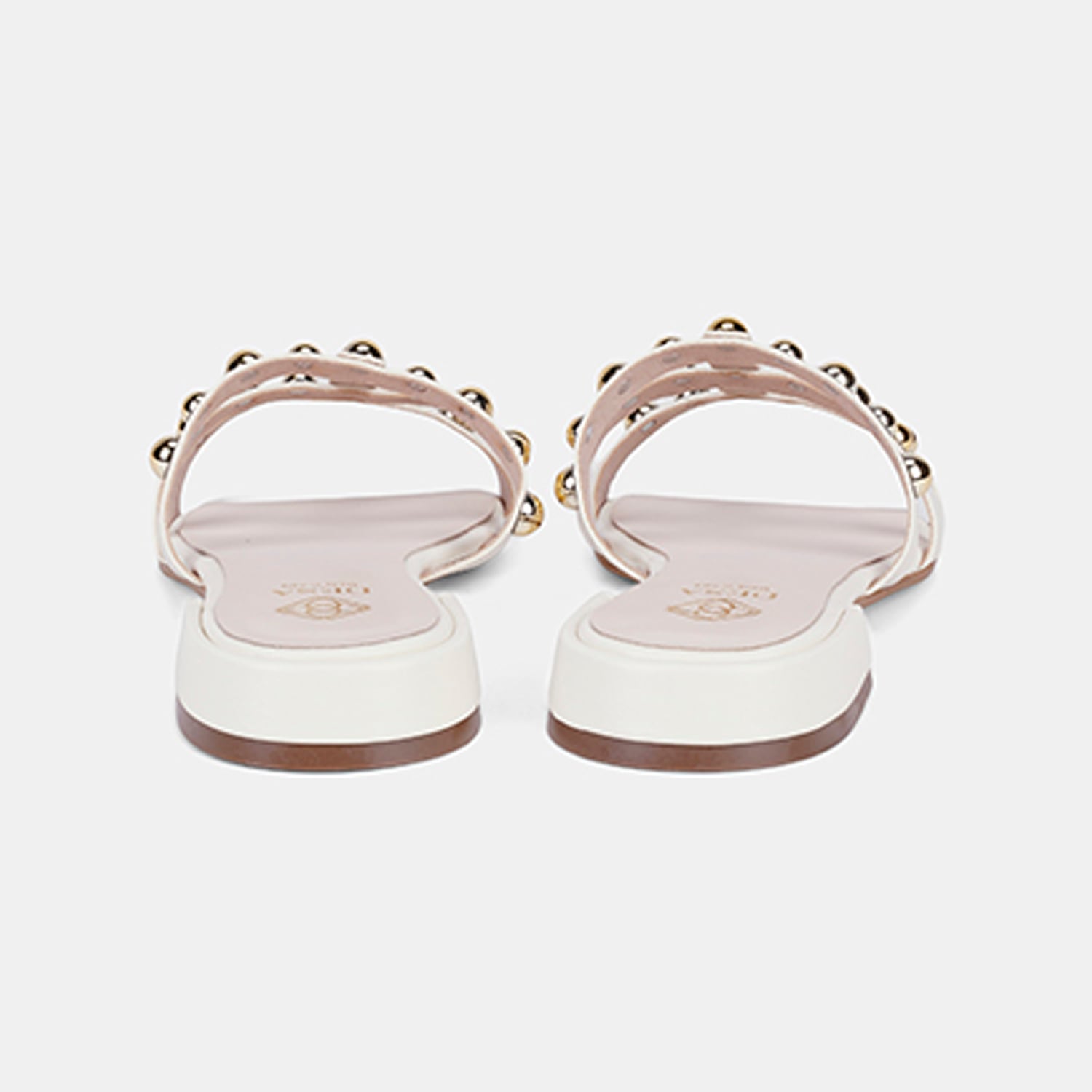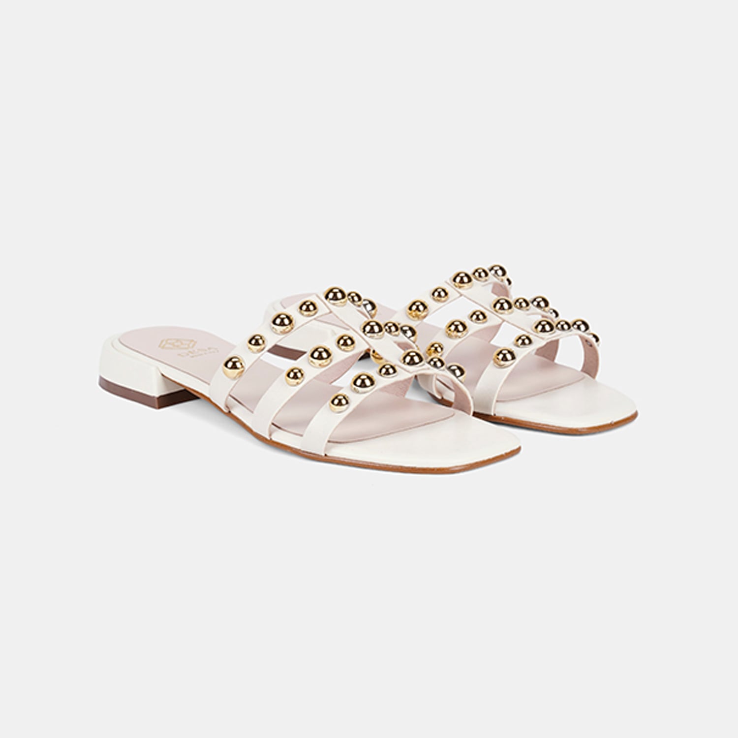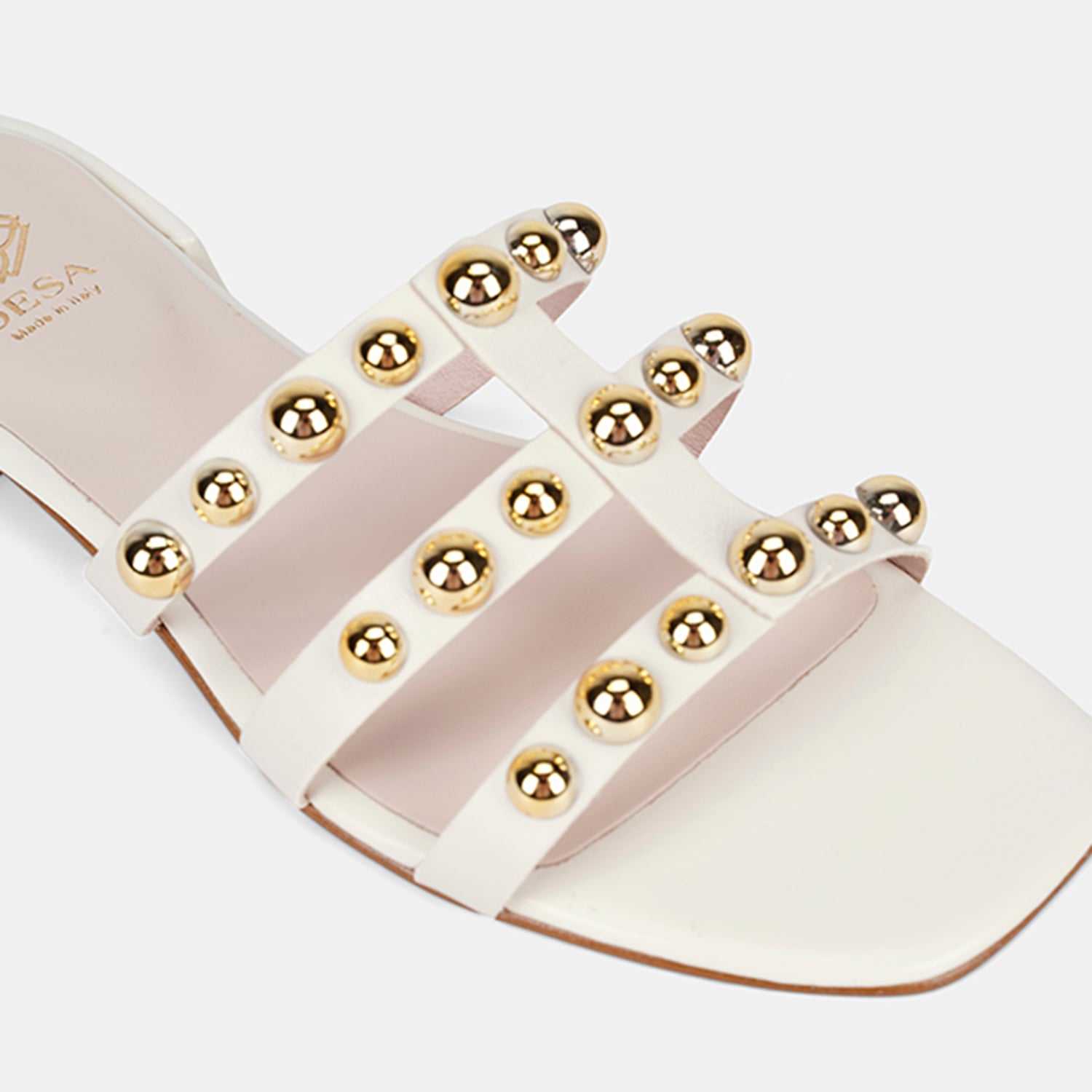 Kadın Kırık Beyaz Gold Zımba Detaylı Deri Terlik