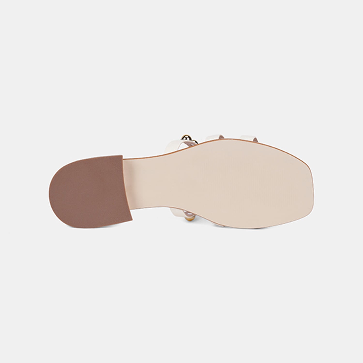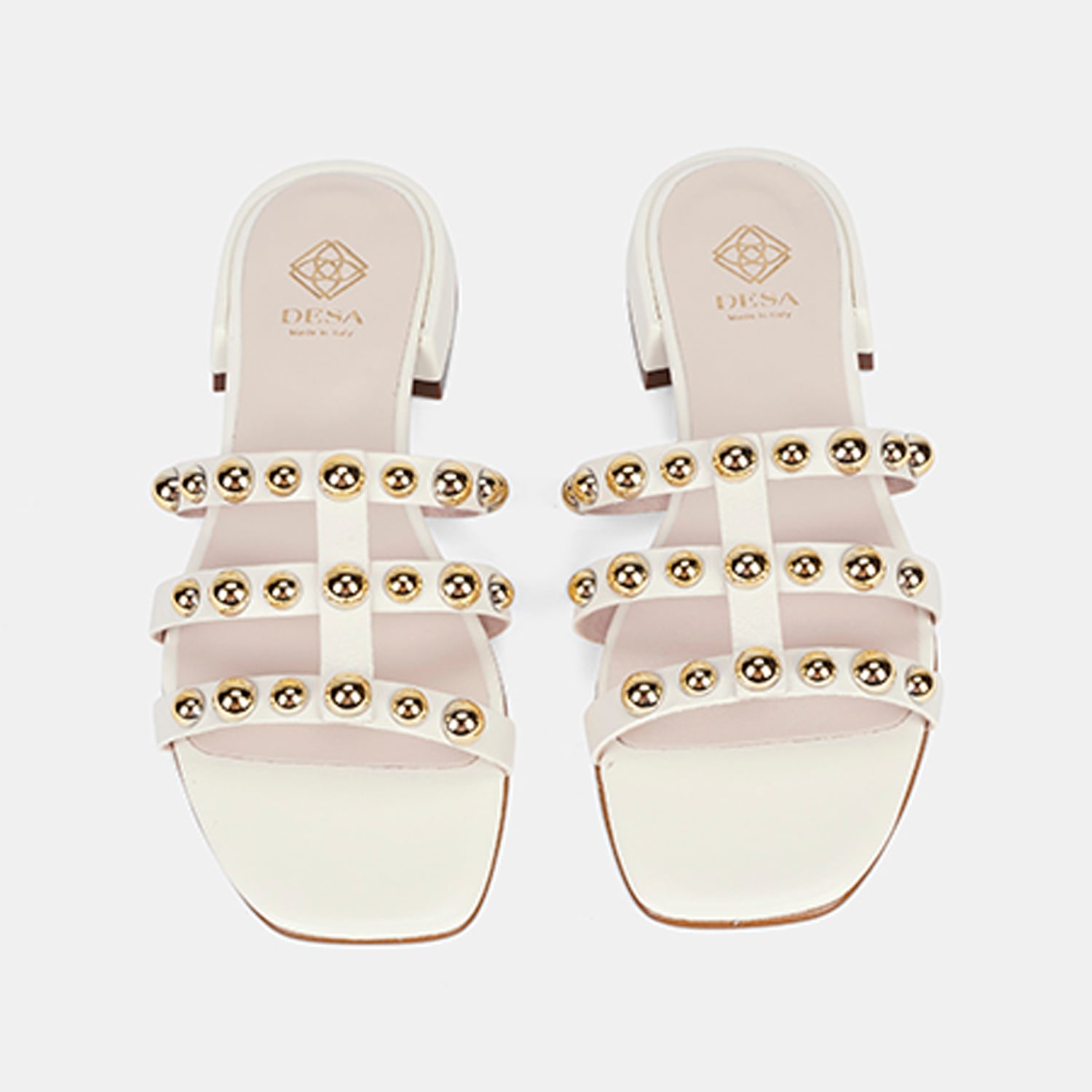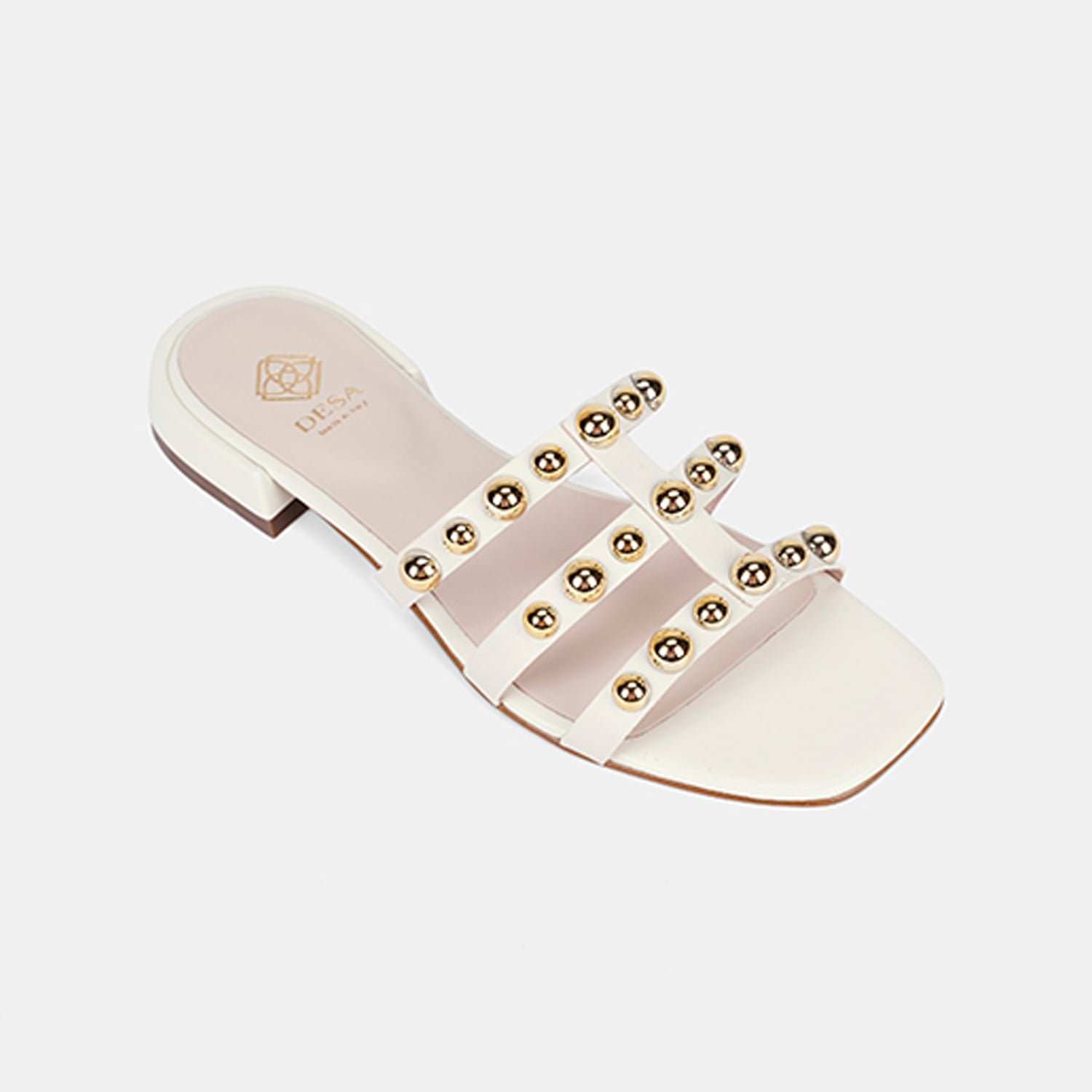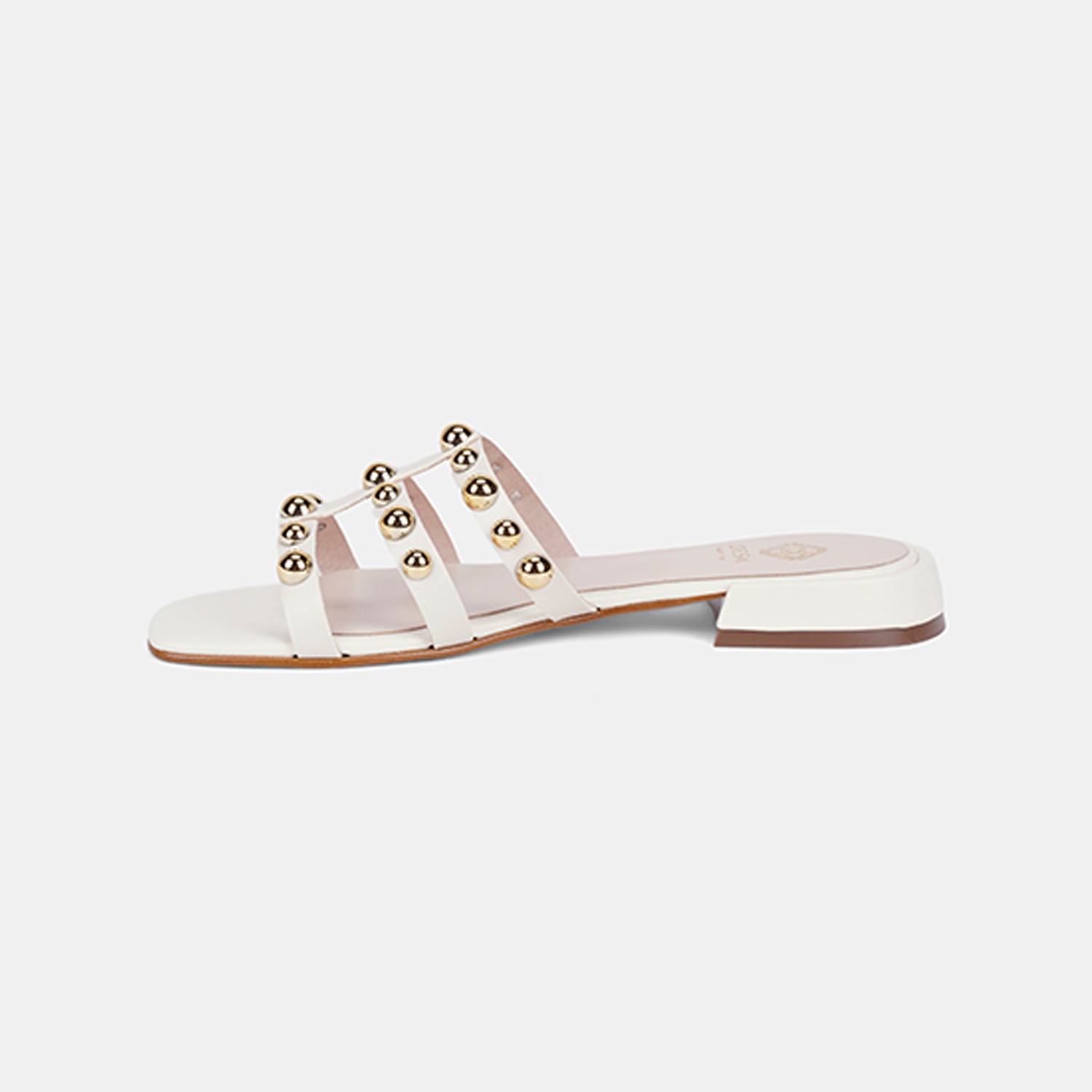 Kadın Kırık Beyaz Gold Zımba Detaylı Deri Terlik