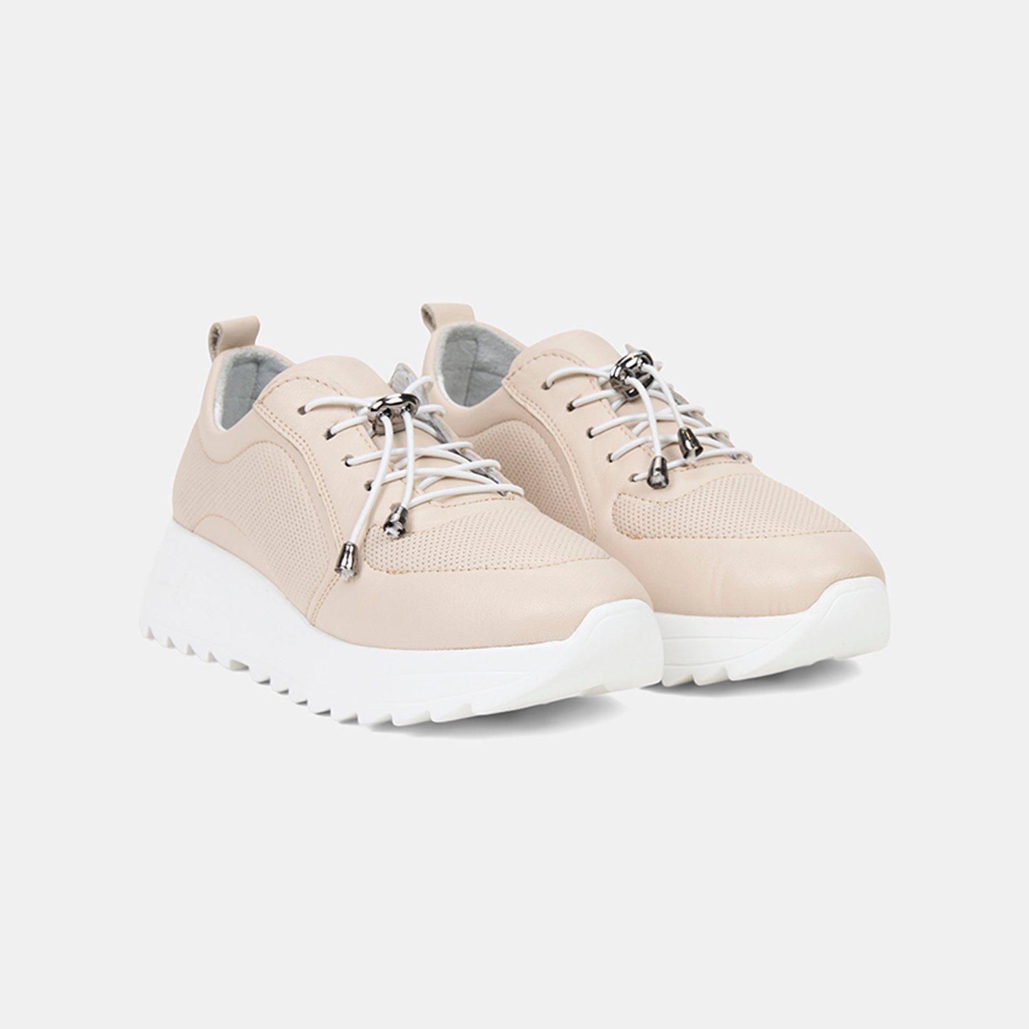 Kadın Kırık Beyaz Lastik Bağcıklı Dolgu Topuklu Deri Sneaker